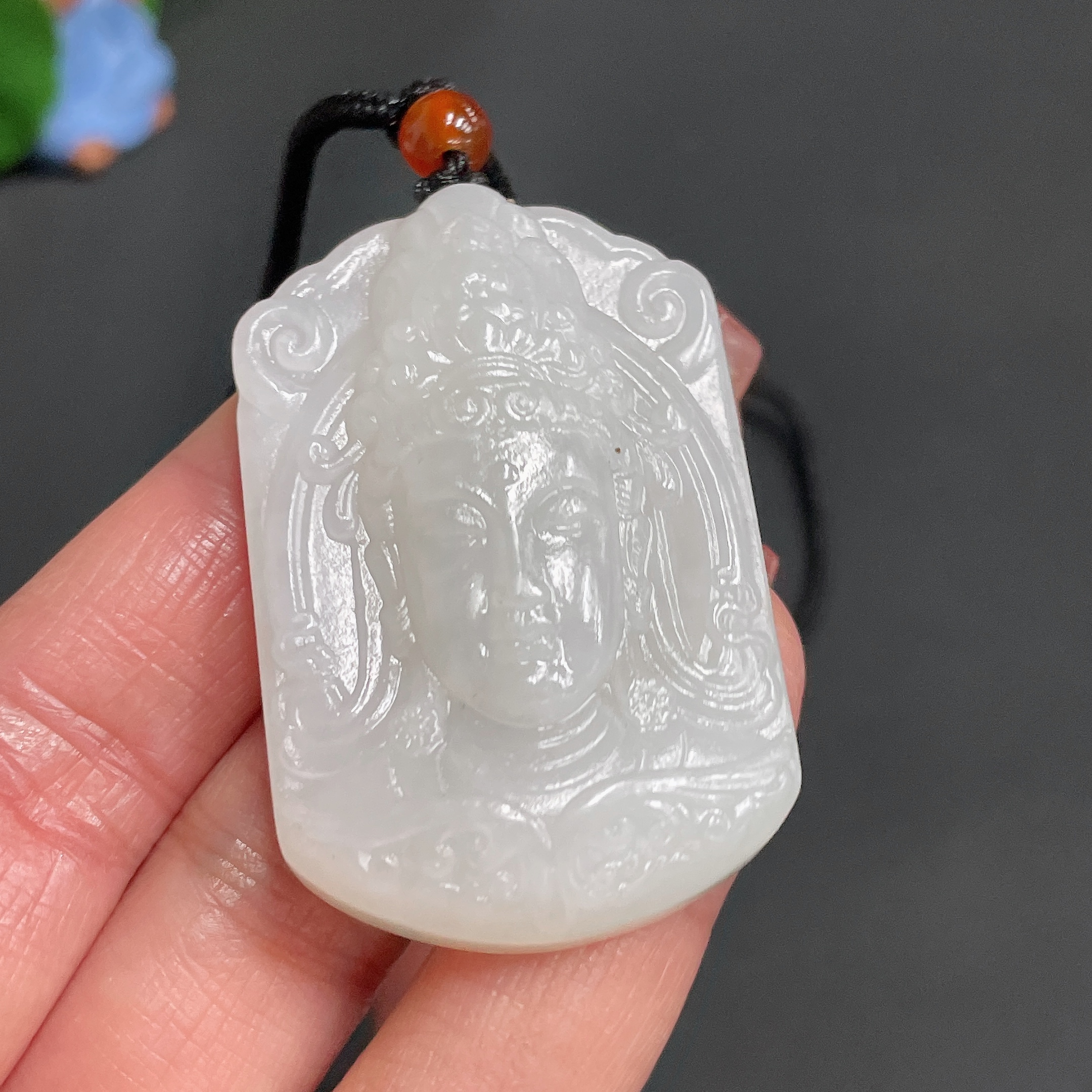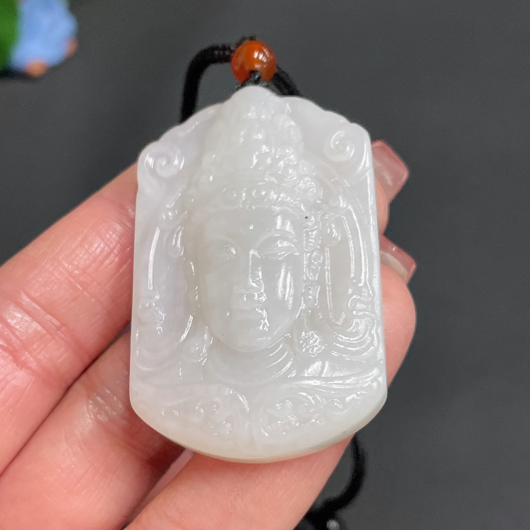 Hetian Jade Pendant Guanyin Total Weight Approx. [with rope]35.2g Matching Beads Not Hetian Jade
