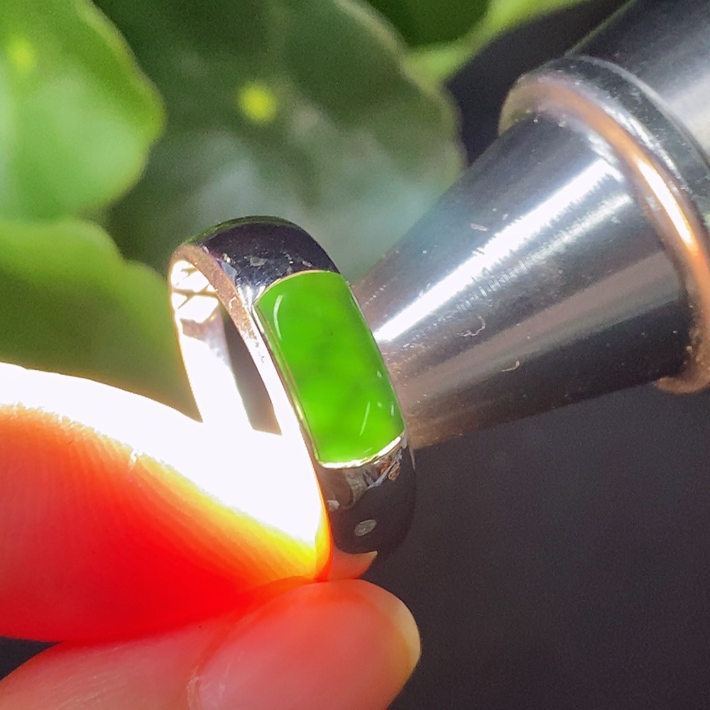 Jadeite Inlaid Ring 18k Gold Inlaid Total Weight Approx. 2.19g Size 17