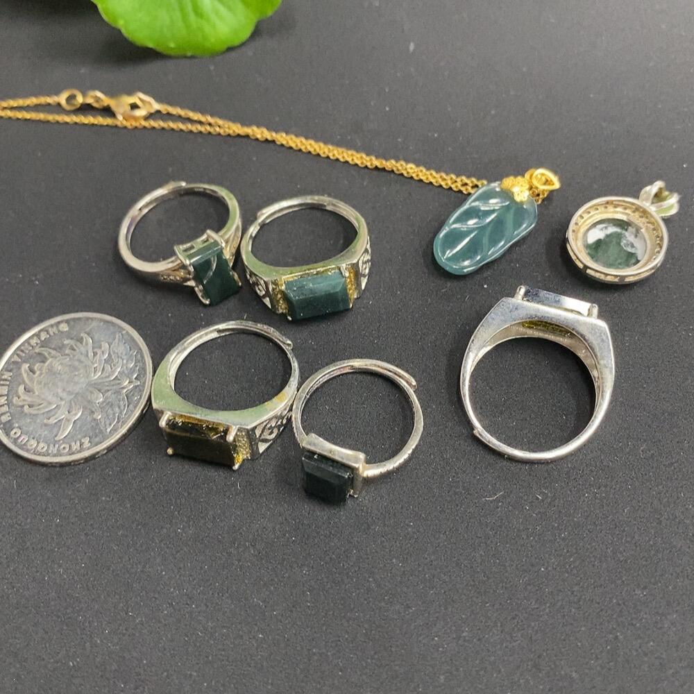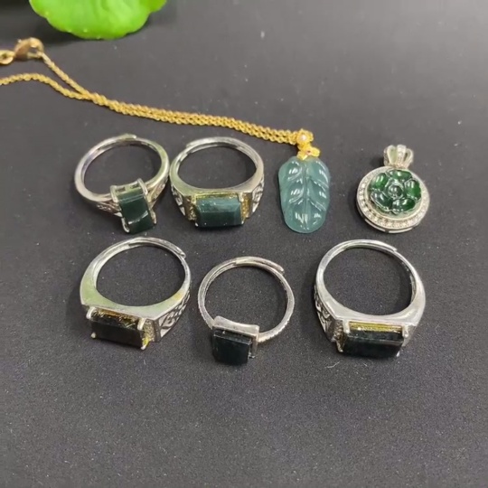 Jadeite Inlaid Piece (Individual with Veins/Cracks, Non-Gold Inlaid, Adjustable Ring Size)