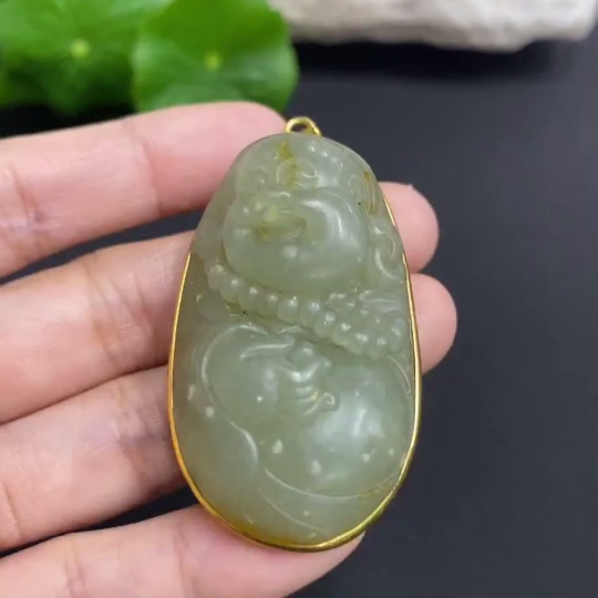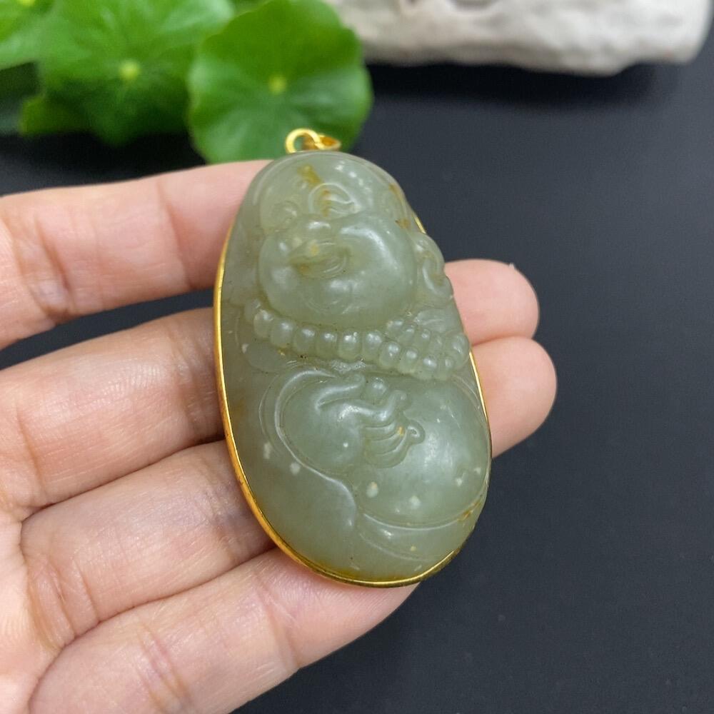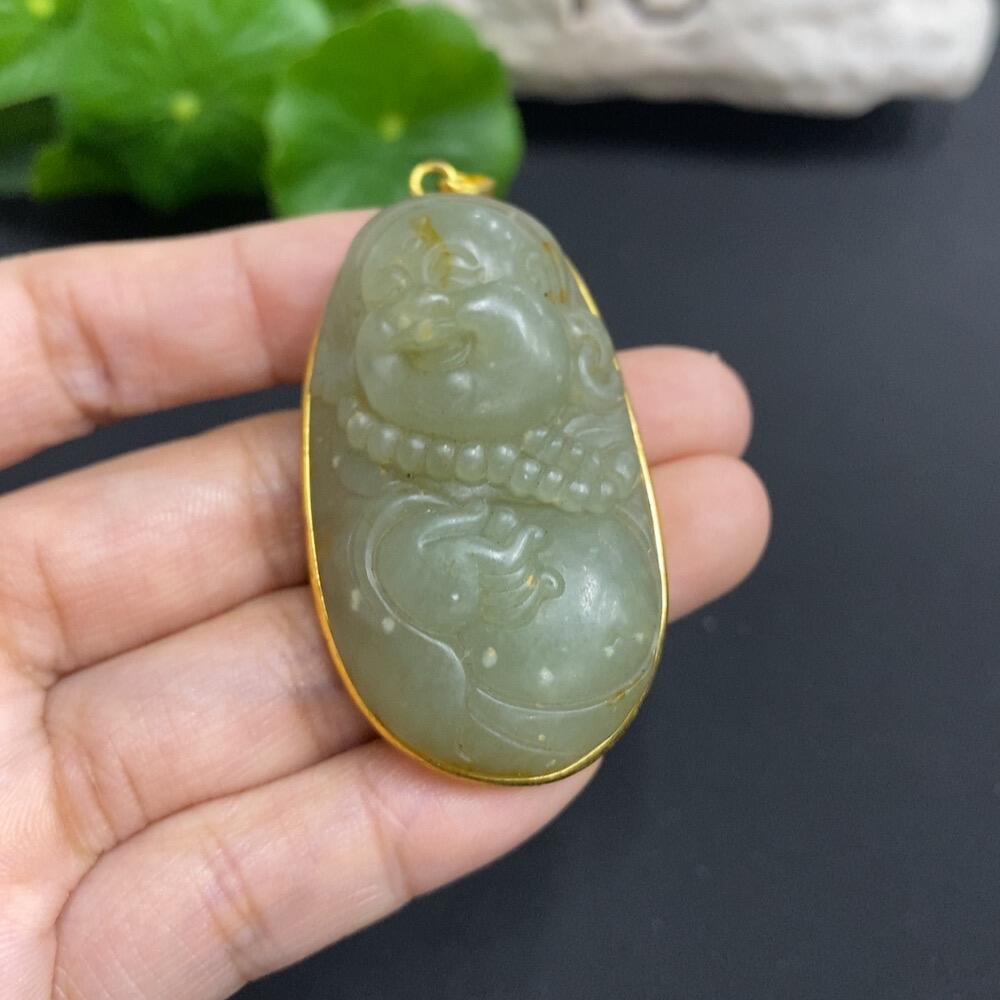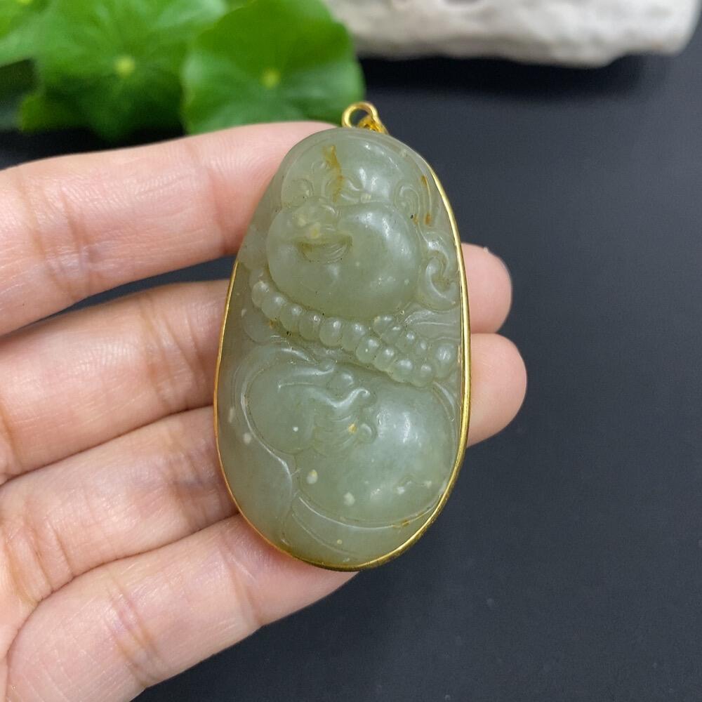 Hetian Jade Pendant with Cracks, Total Weight 25.5g, Non-Gold-Inlaid