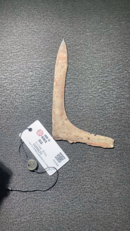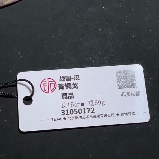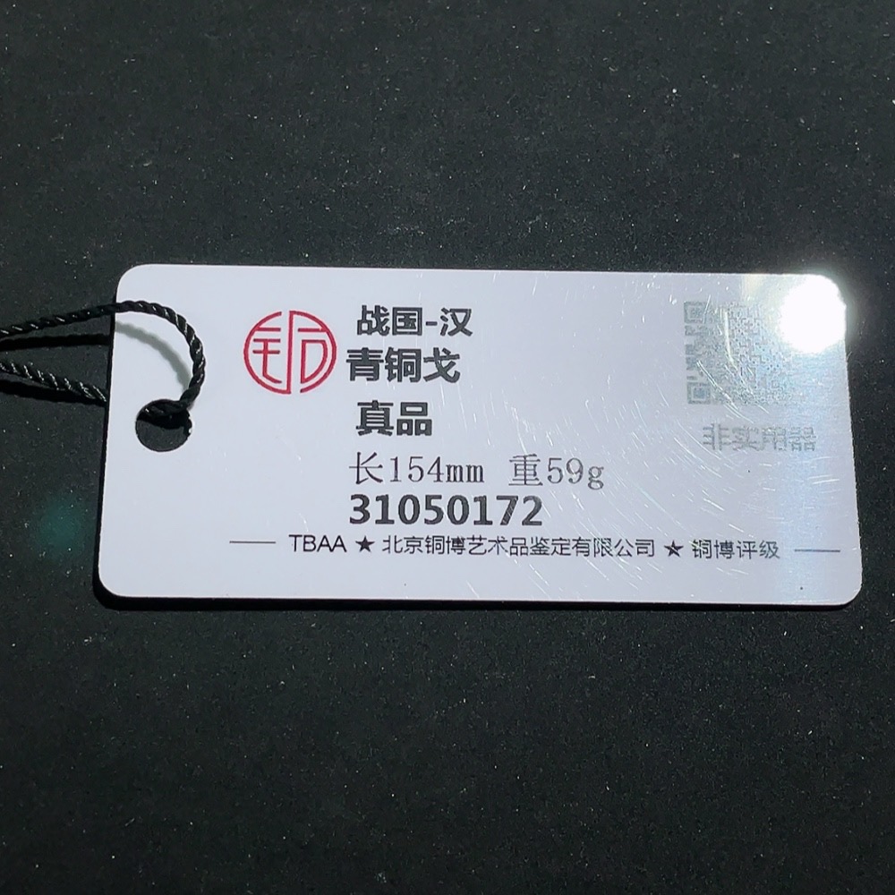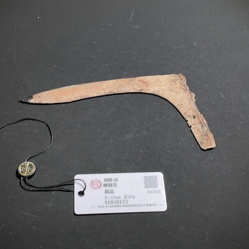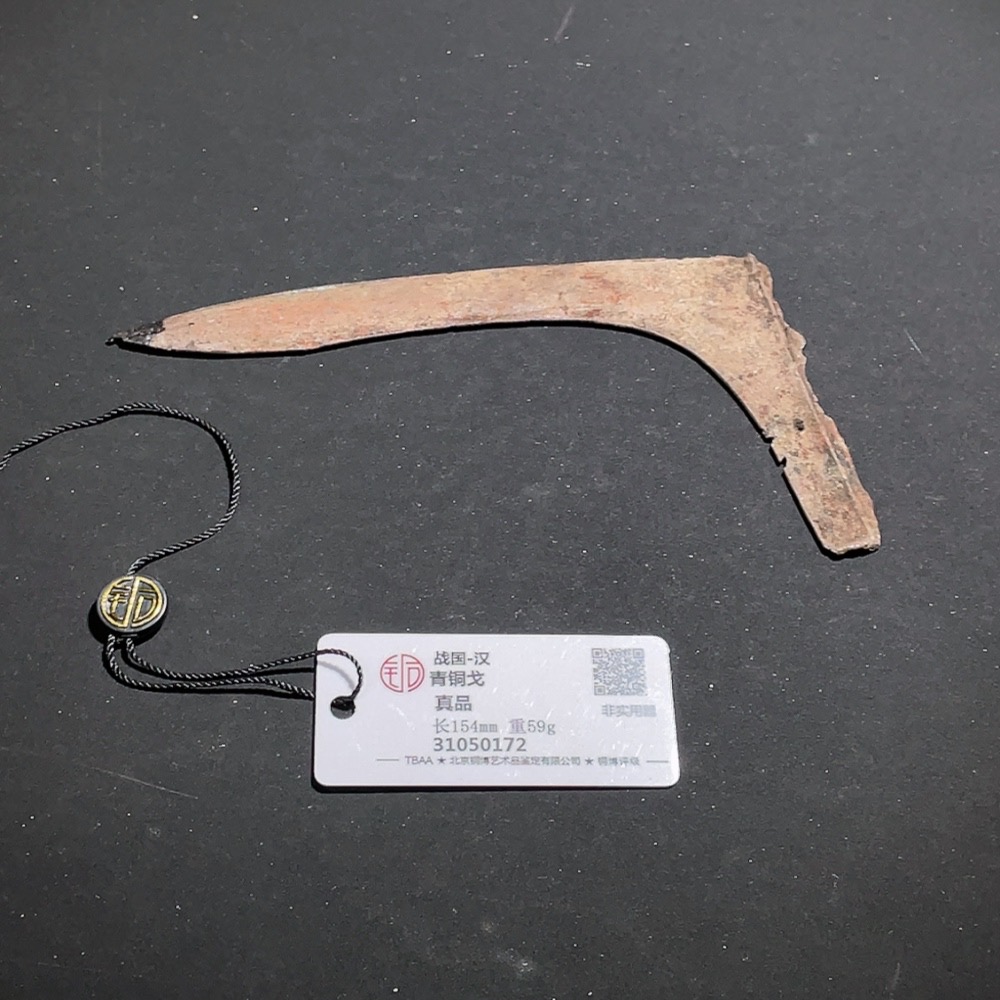 Miscellaneous Warring States and Han Dynasty Bronze Dagger-Axe with GBCA Certification Label