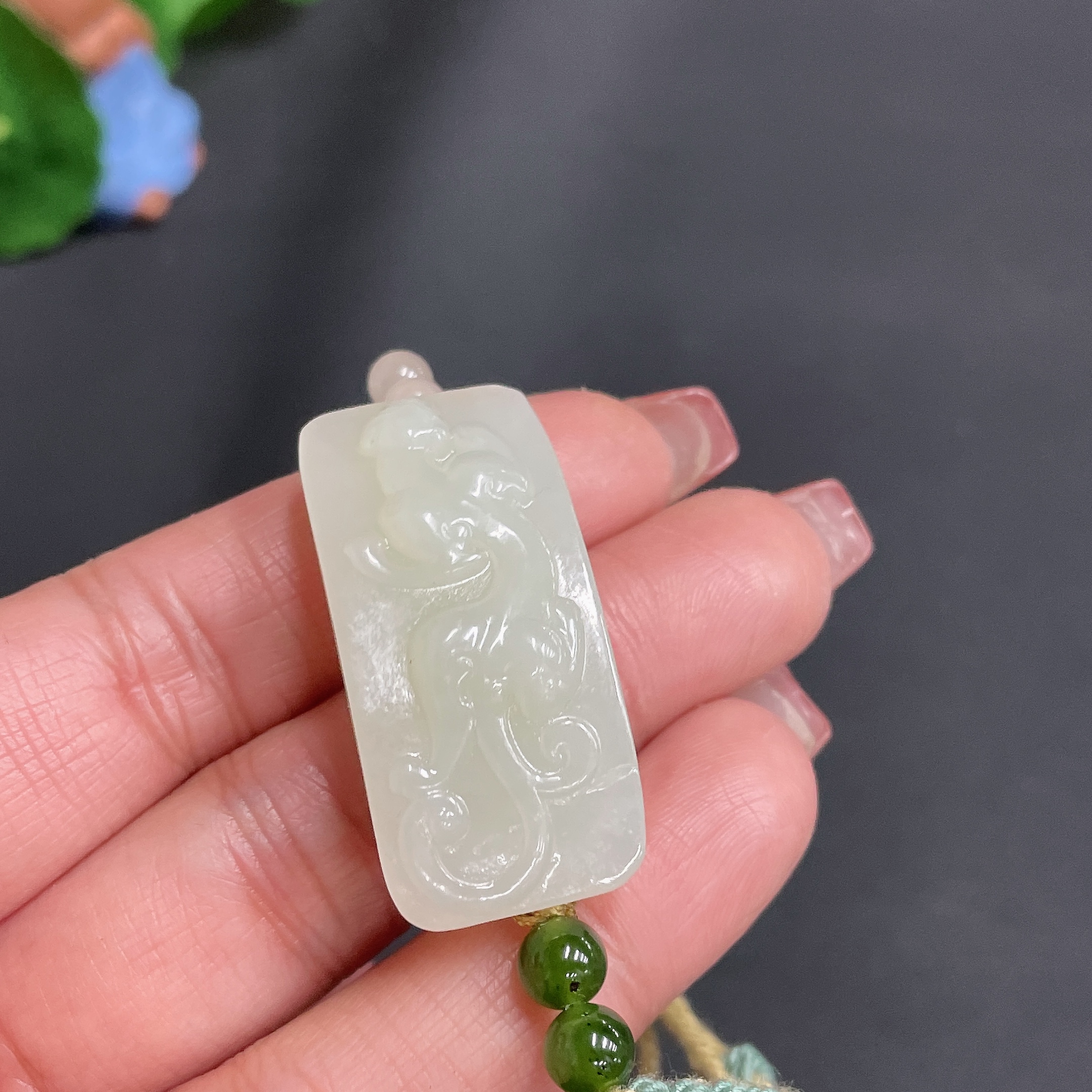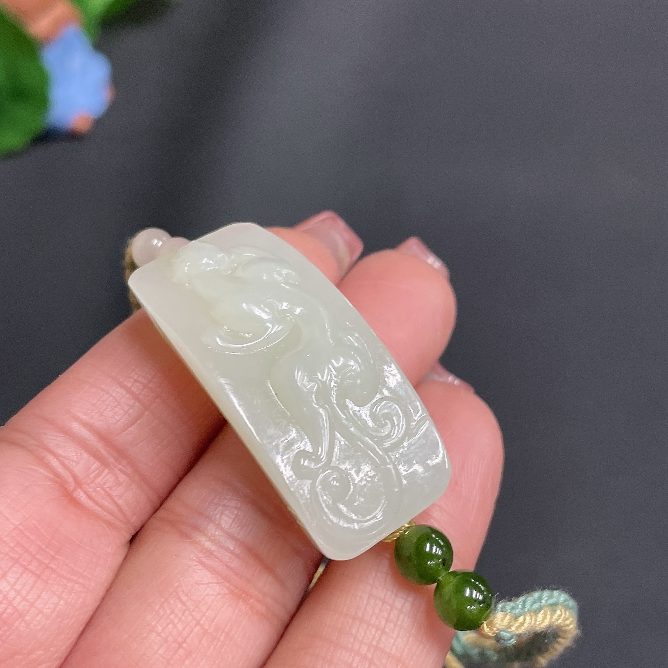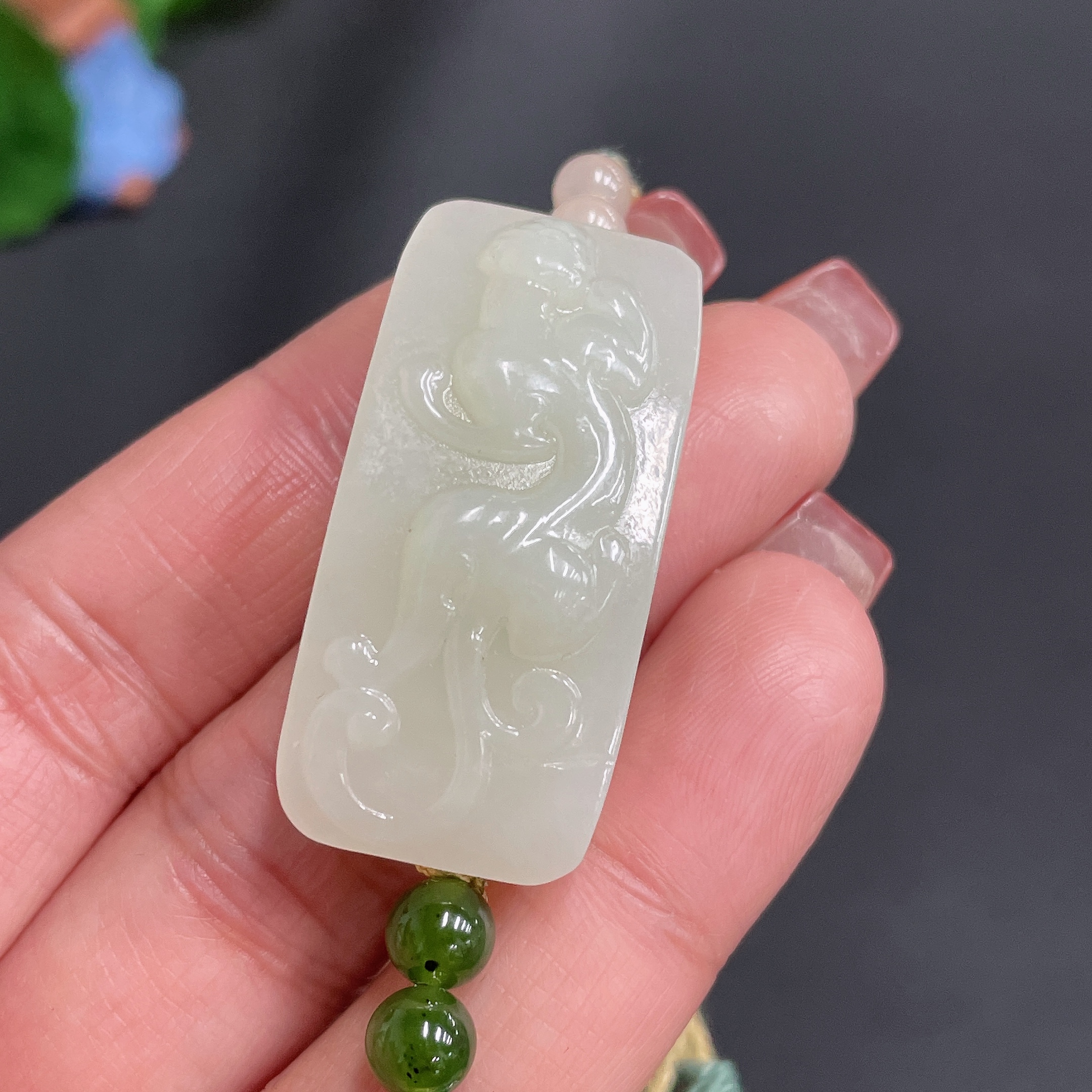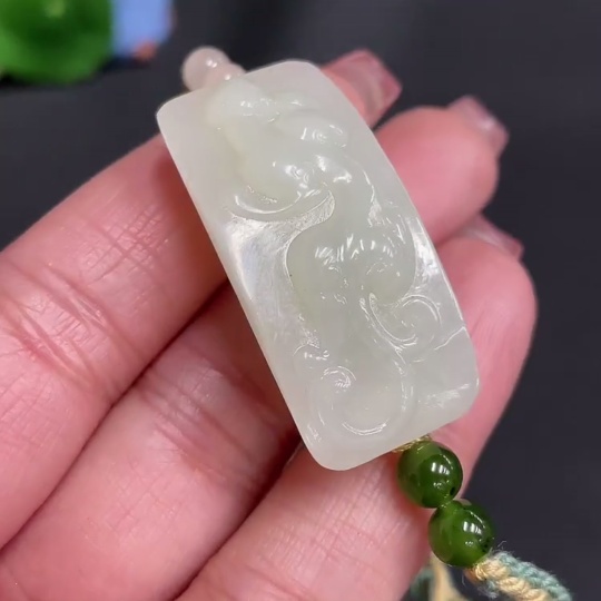 Hetian Jade Hand Plaque, Auspicious Beast, Total Weight Approx. [Including Rope] 17.3g