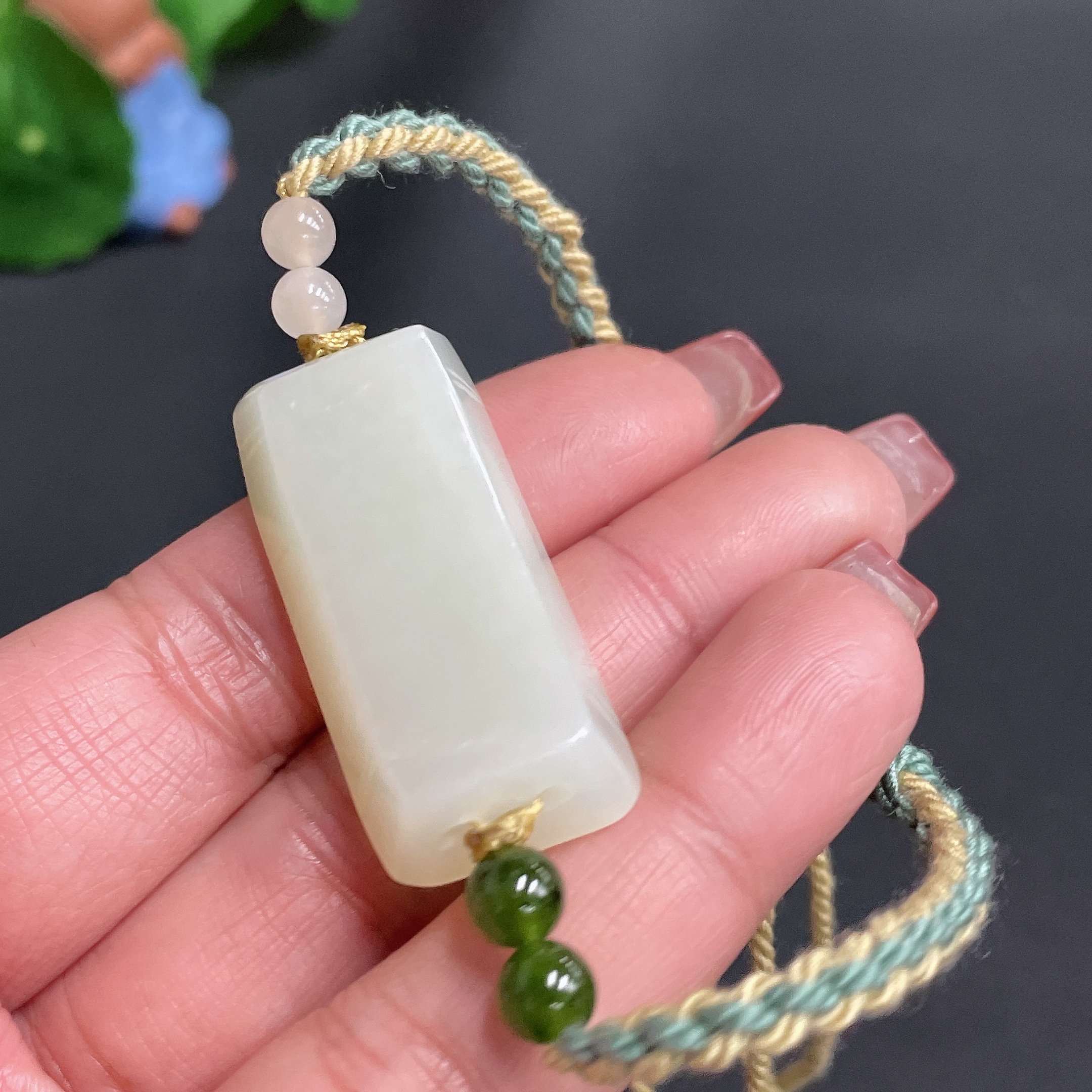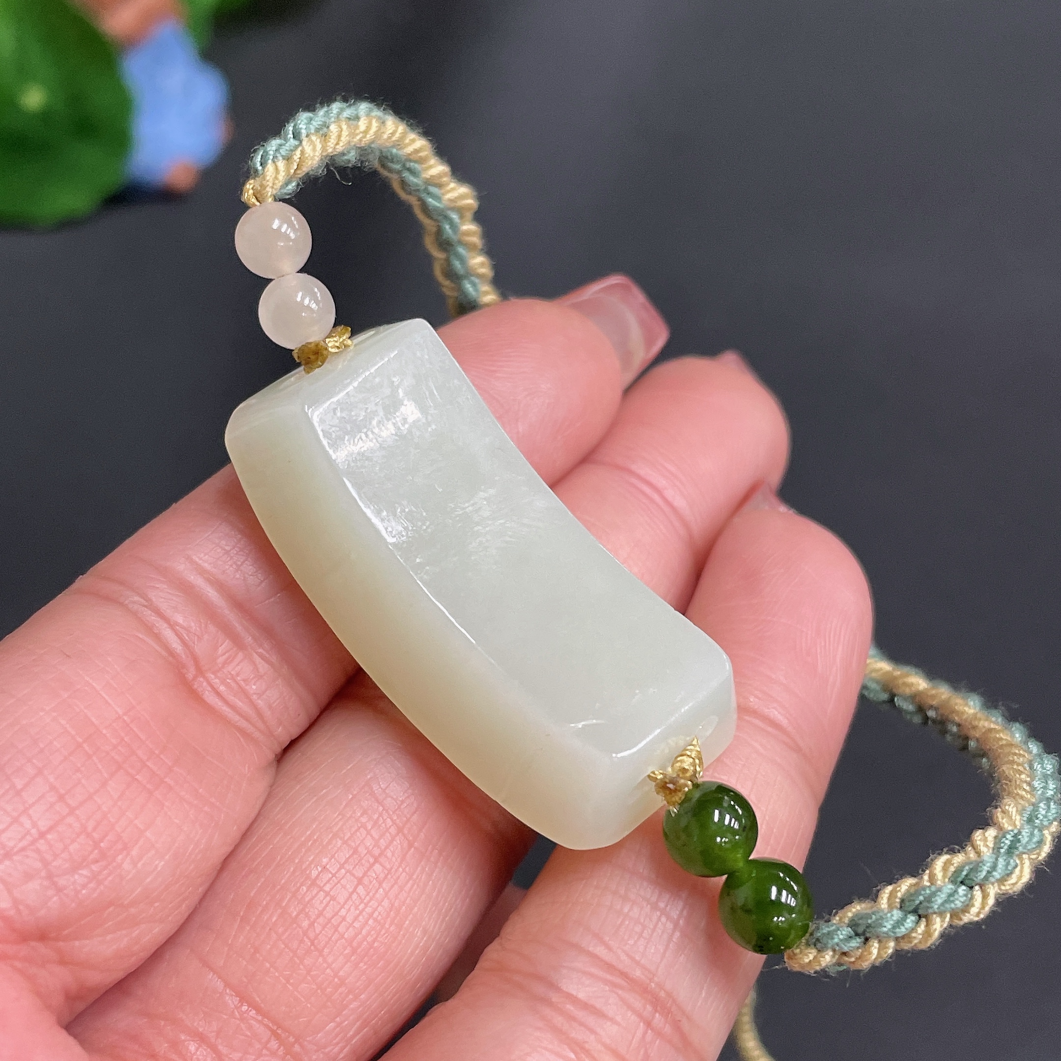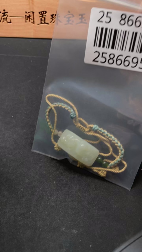 Hetian Jade Hand Plaque, Auspicious Beast, Total Weight Approx. [Including Rope] 17.3g