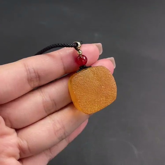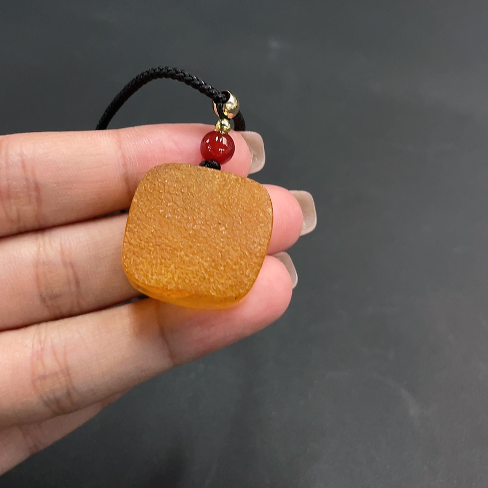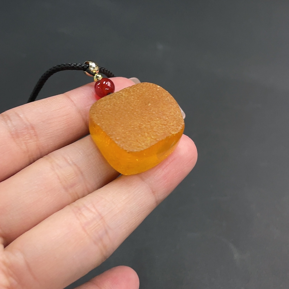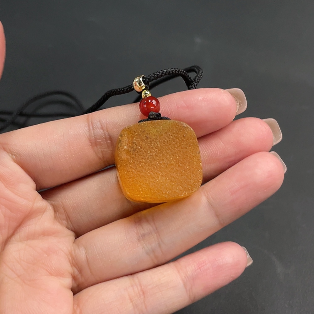 Amber Beeswax Pendant with Non-Natural Inlaid Stones, Non-Gold Setting, Total Weight Approx. 9.14g