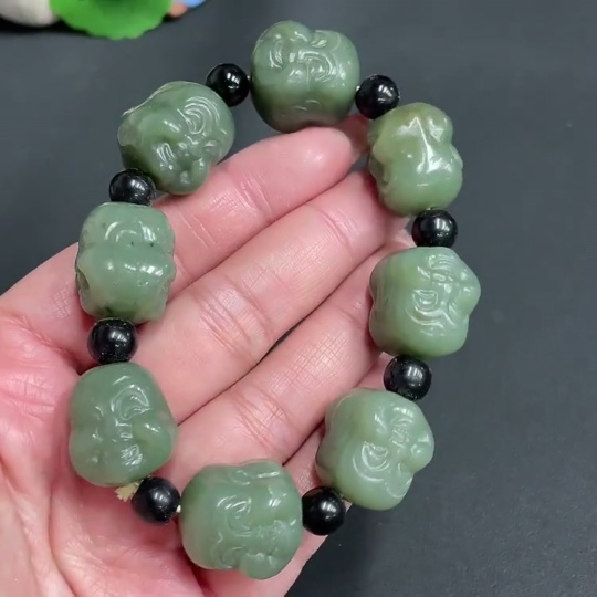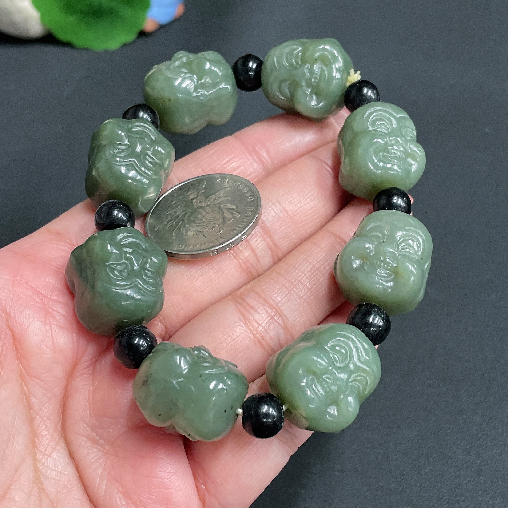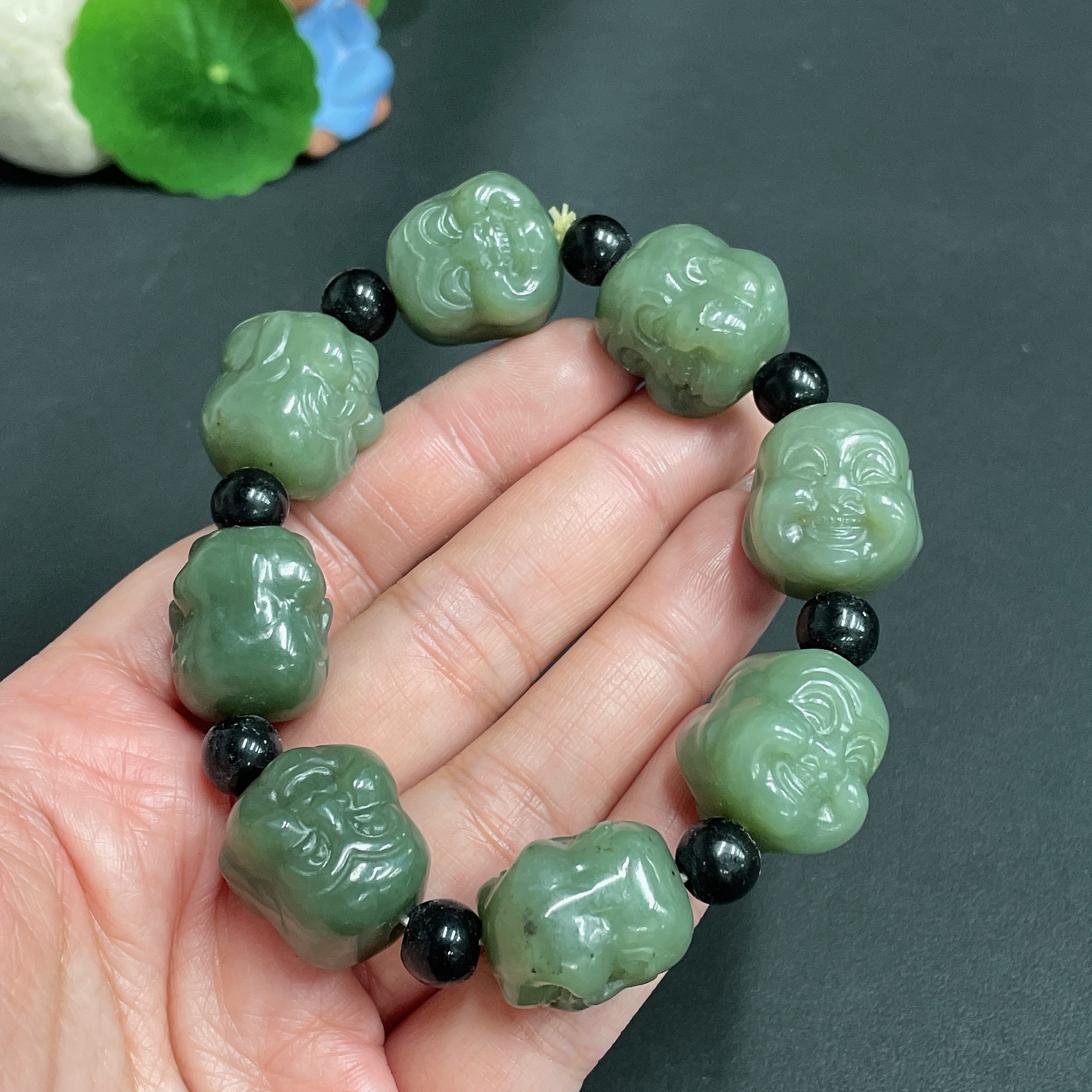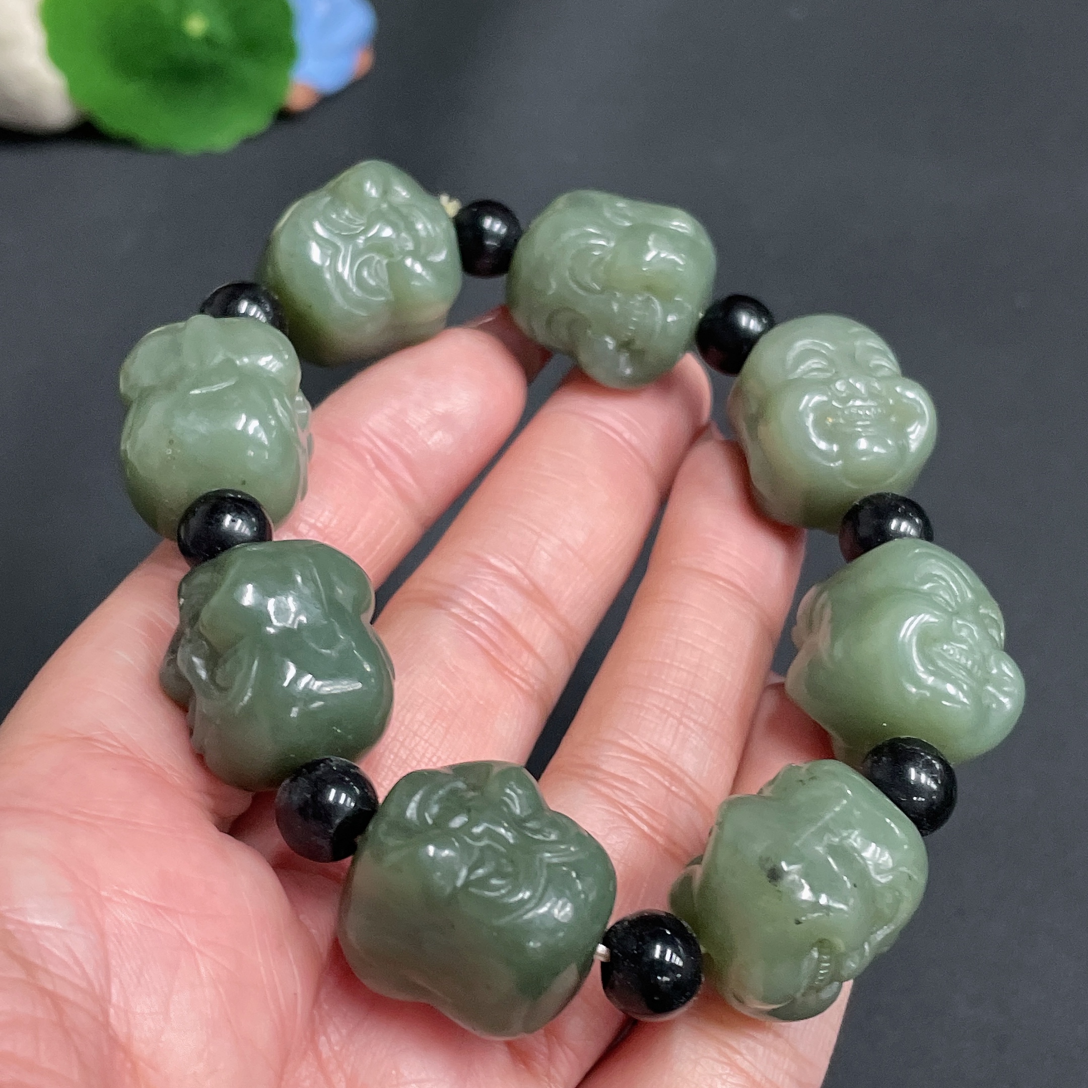 Hetian Jade Buddha Bracelet (Beads Not Hetian Jade, Total Weight Approx. 88.7g)
