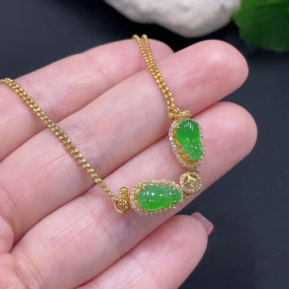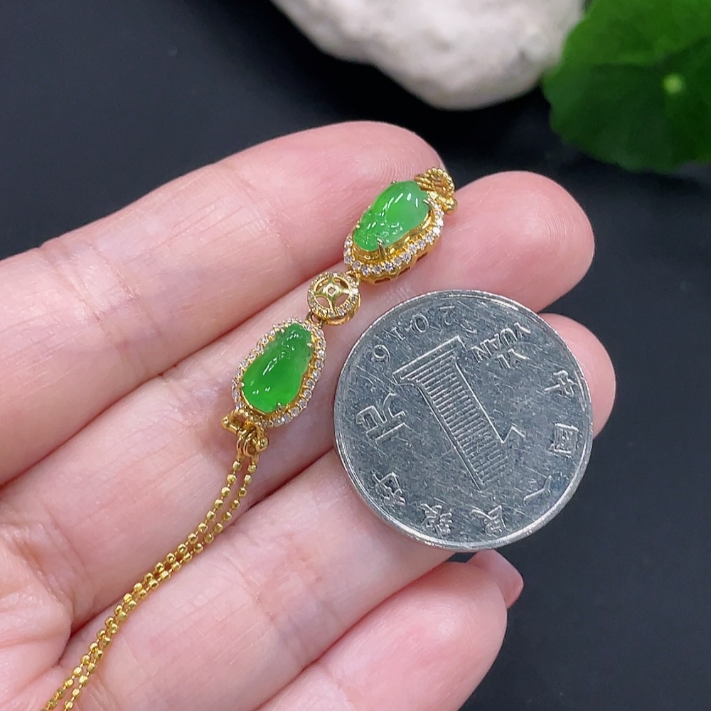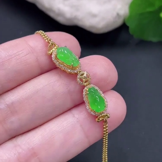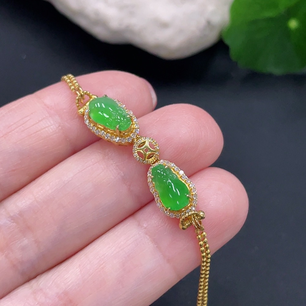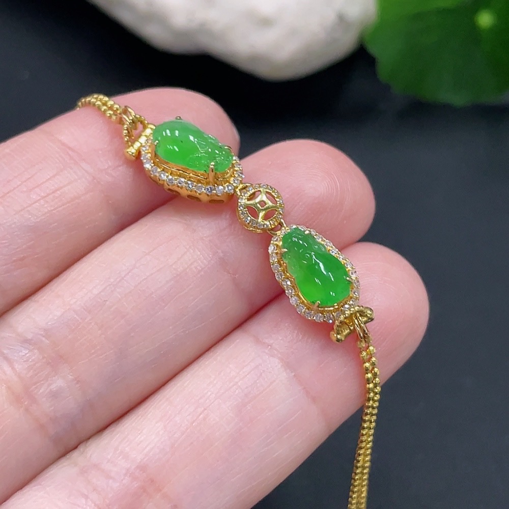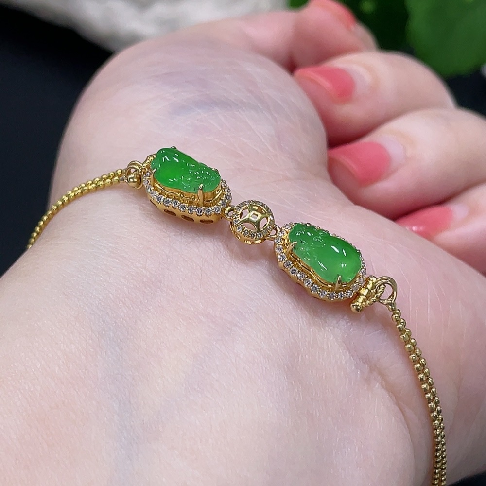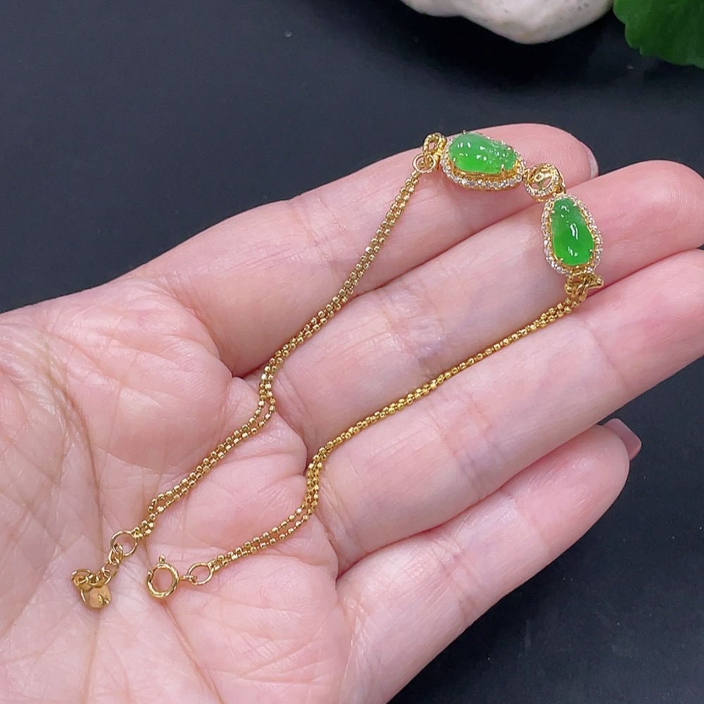 Jadeite Inlaid Bracelet 18k Gold Total Weight Approx. 3.48g