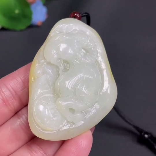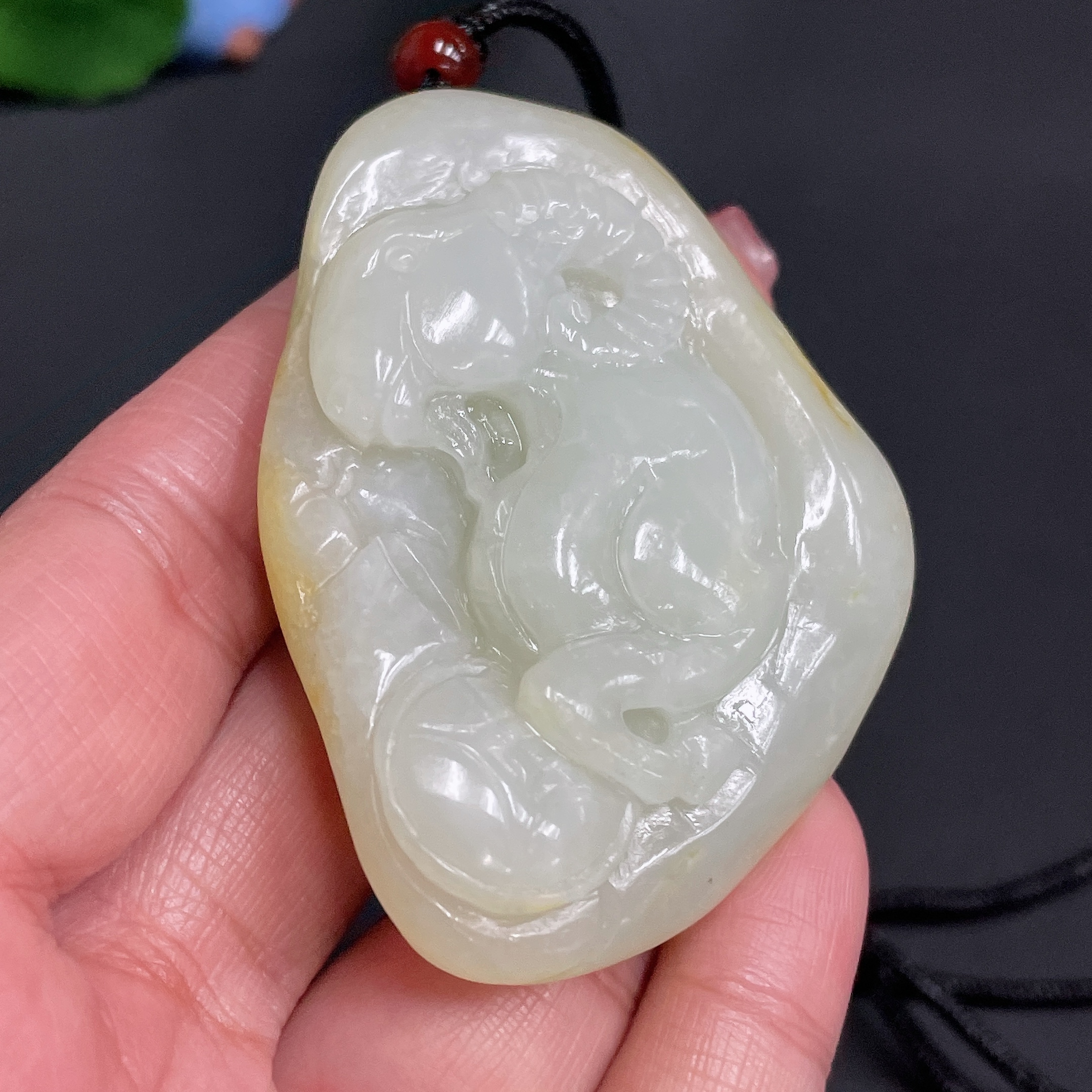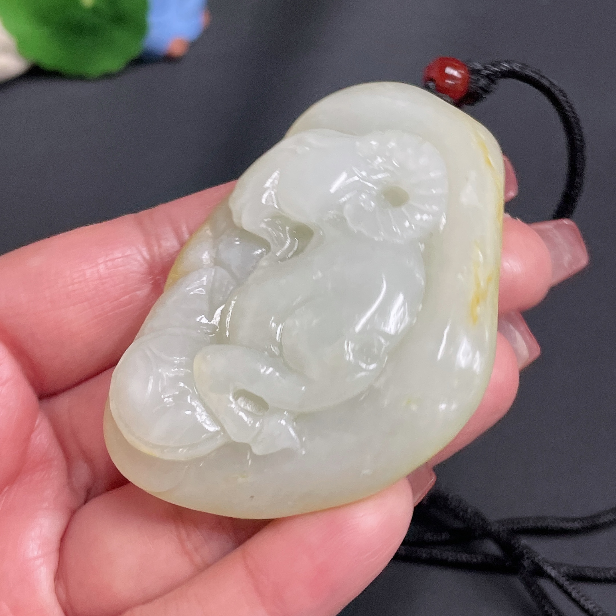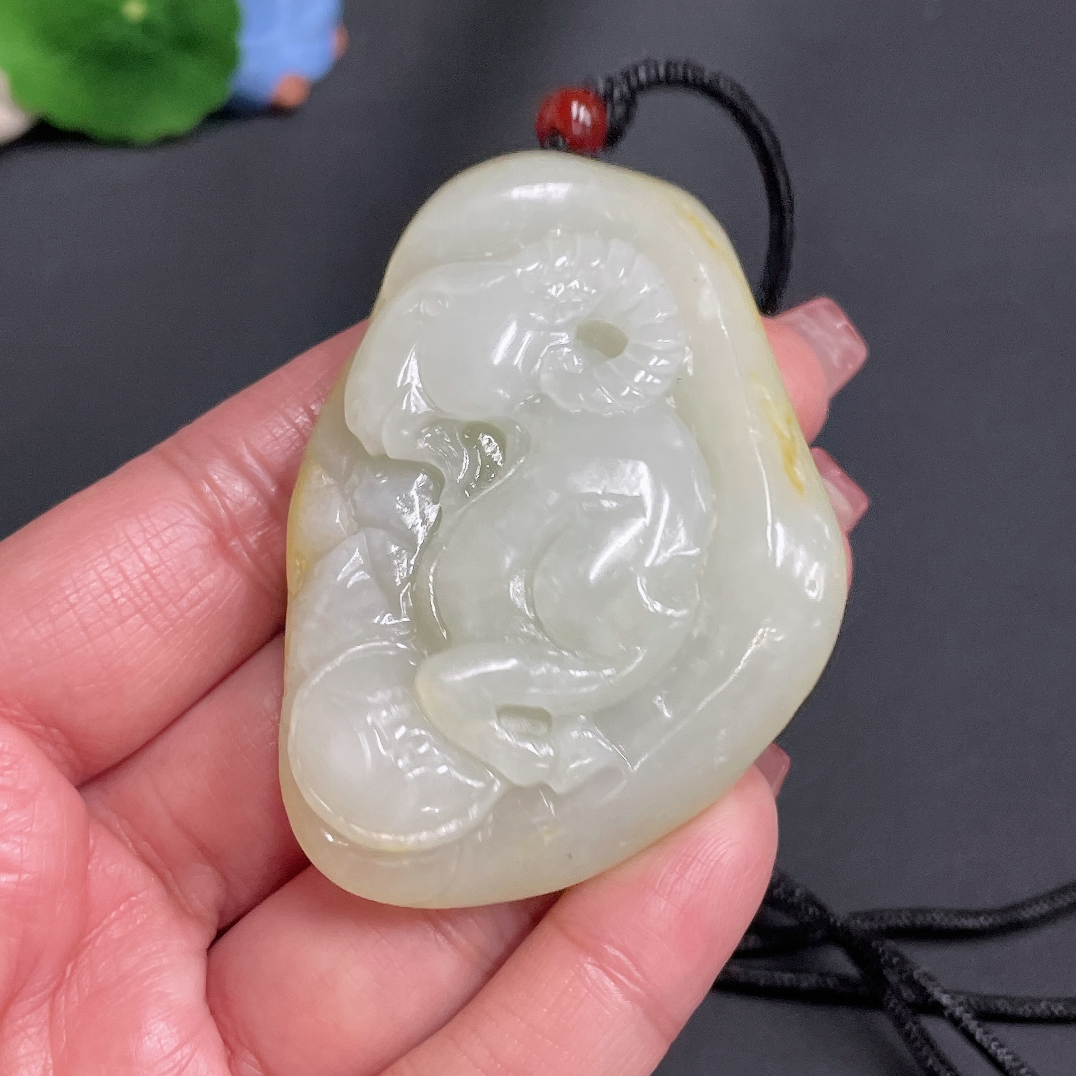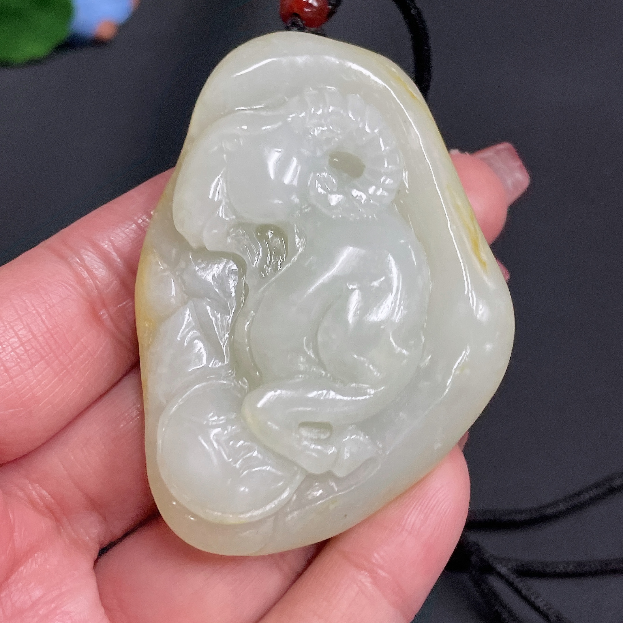 Hetian Jade Pendant - Auspicious Ram (Undetermined Skin Color Origin) Total Weight Approx. [with cord] 69.2g