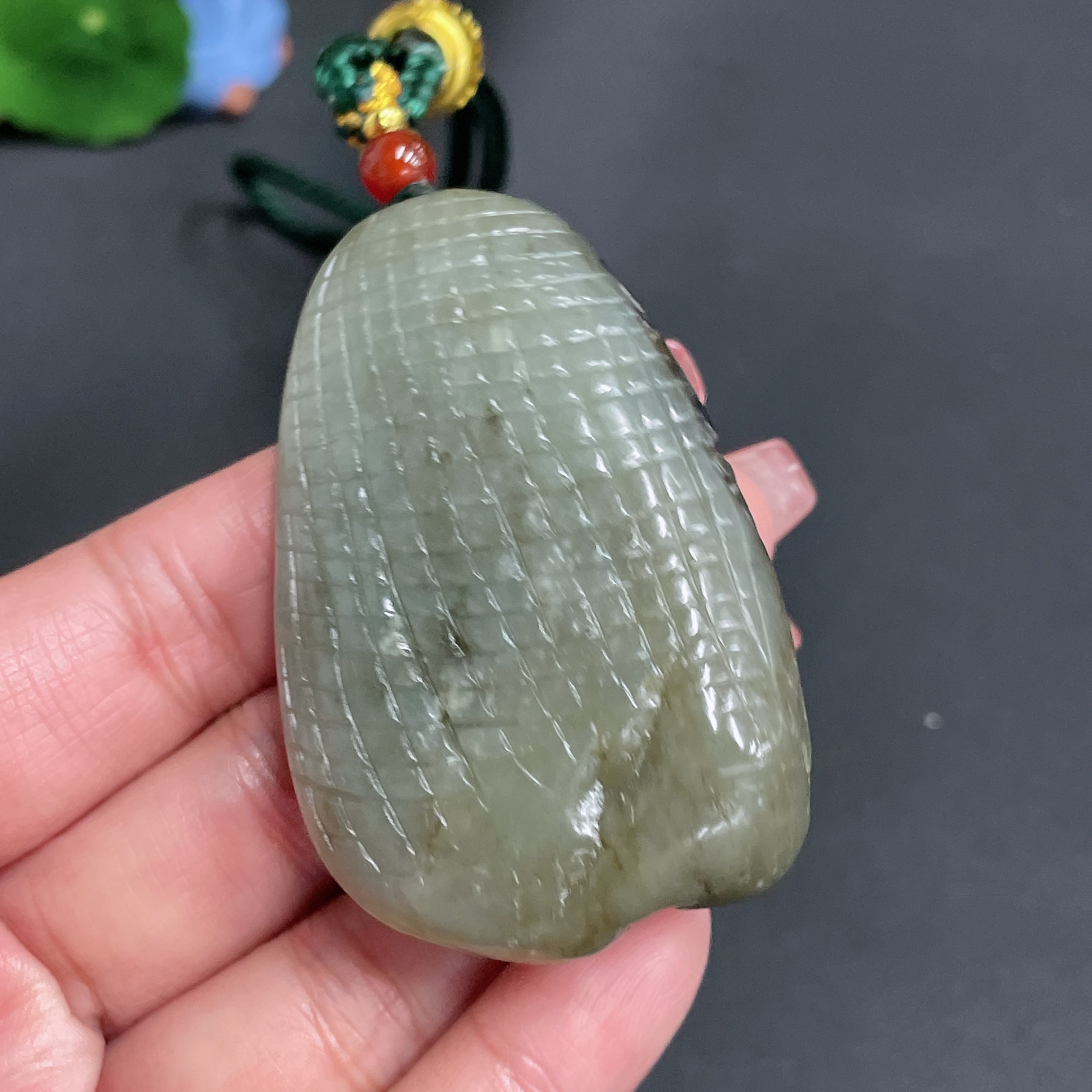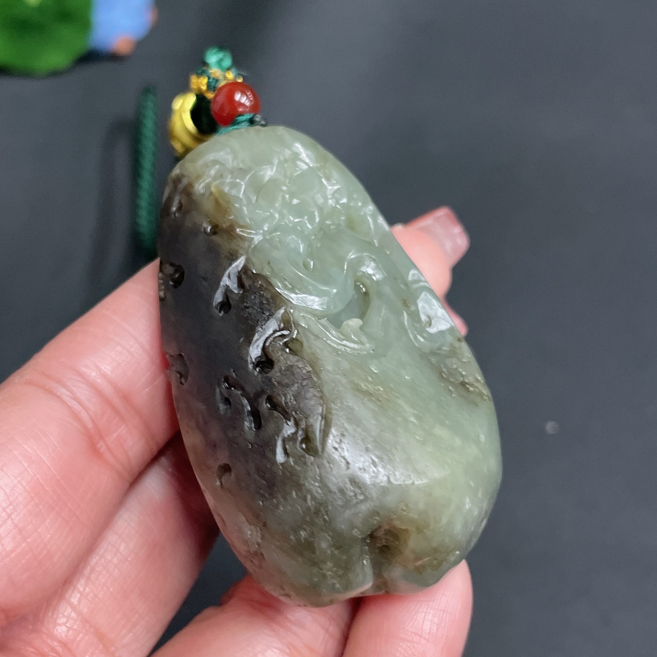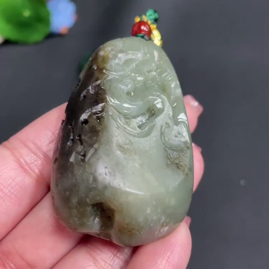 Hetian Jade Handheld Carving Antique Style Undetermined Skin Color Origin Total Weight Approx. [Including Cord] 78.4g