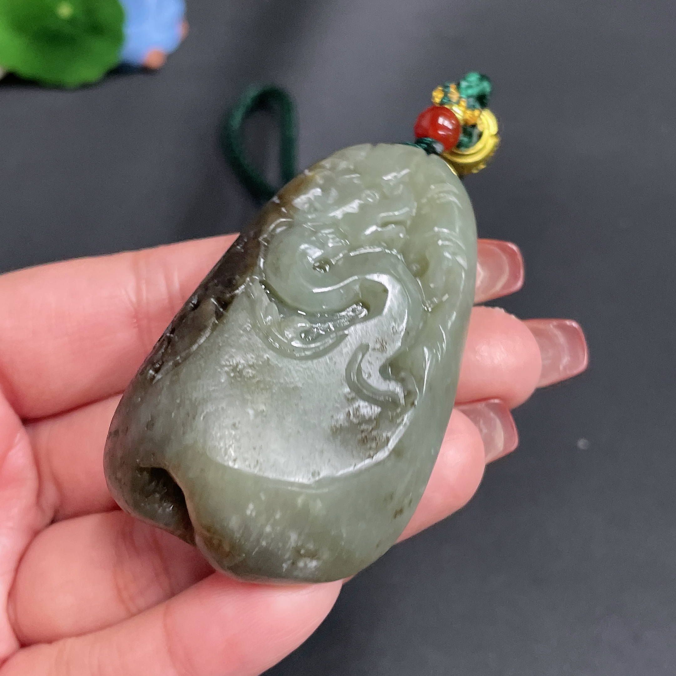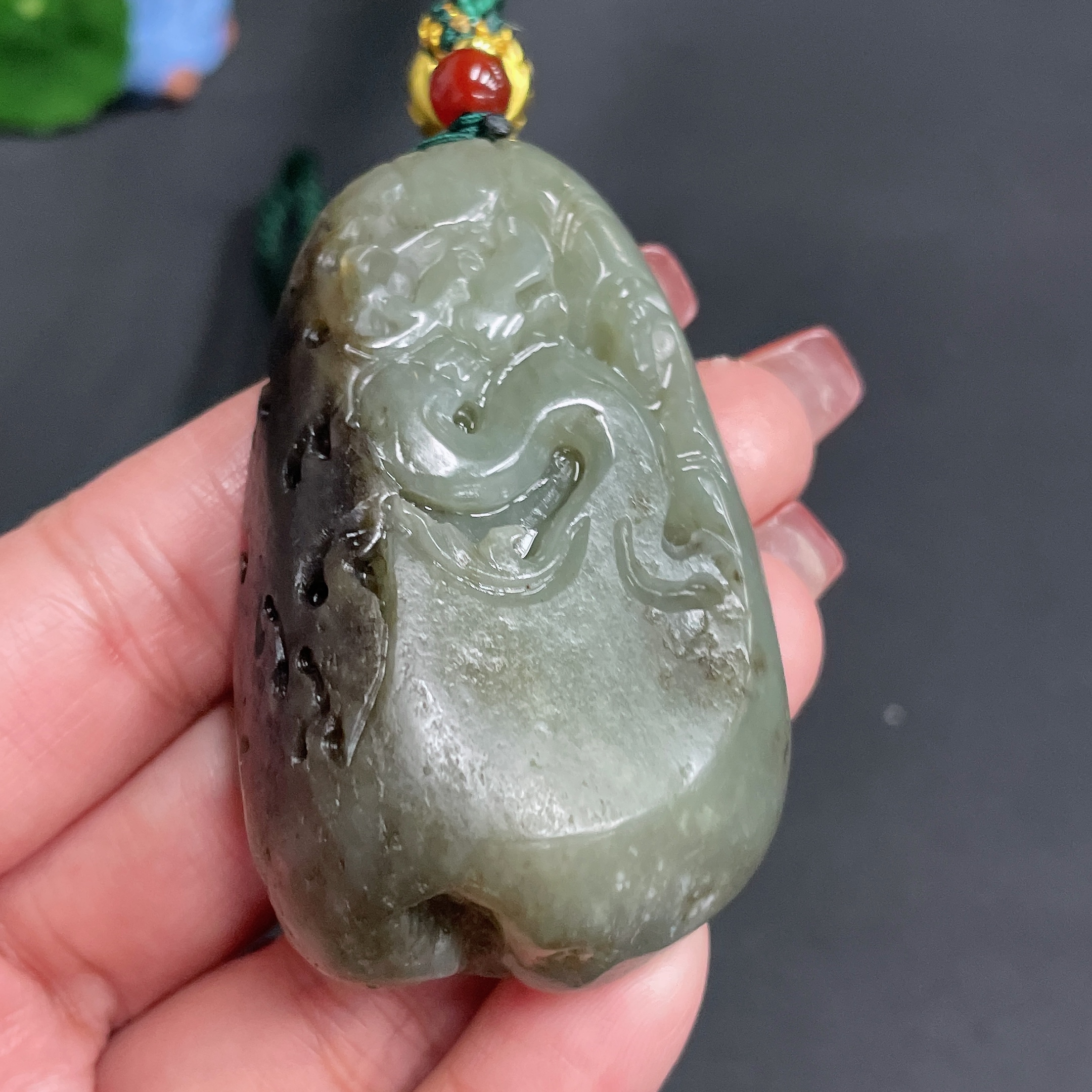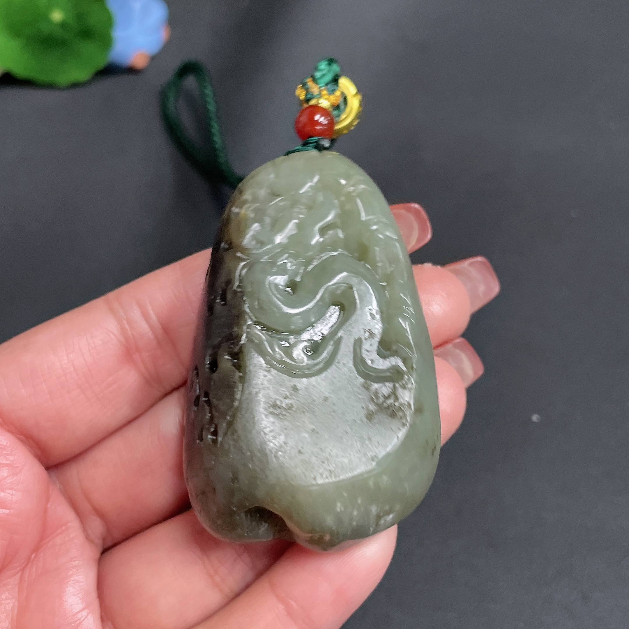 Hetian Jade Handheld Carving Antique Style Undetermined Skin Color Origin Total Weight Approx. [Including Cord] 78.4g