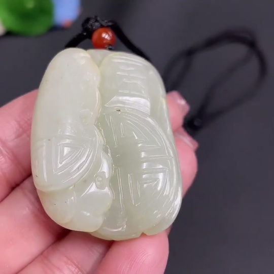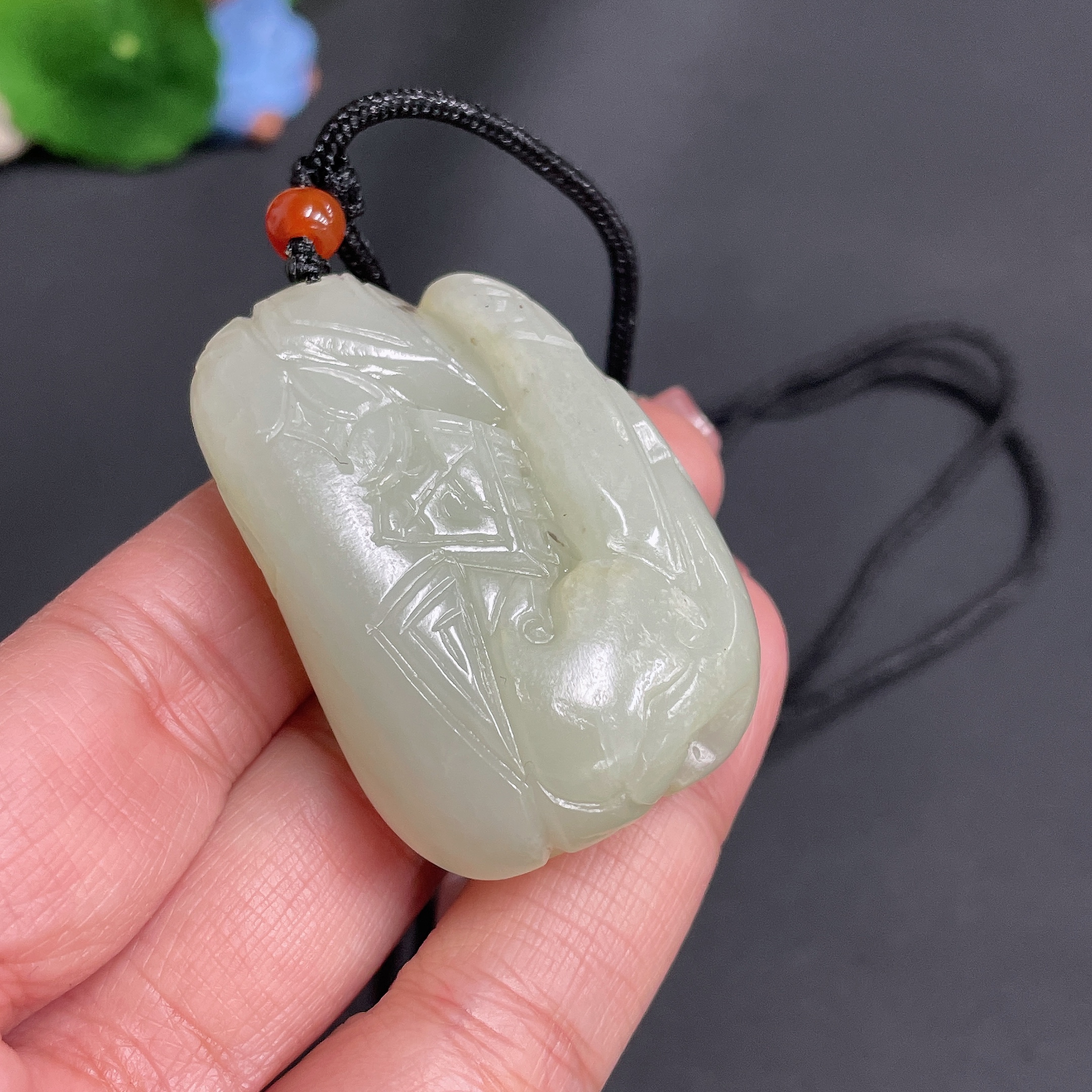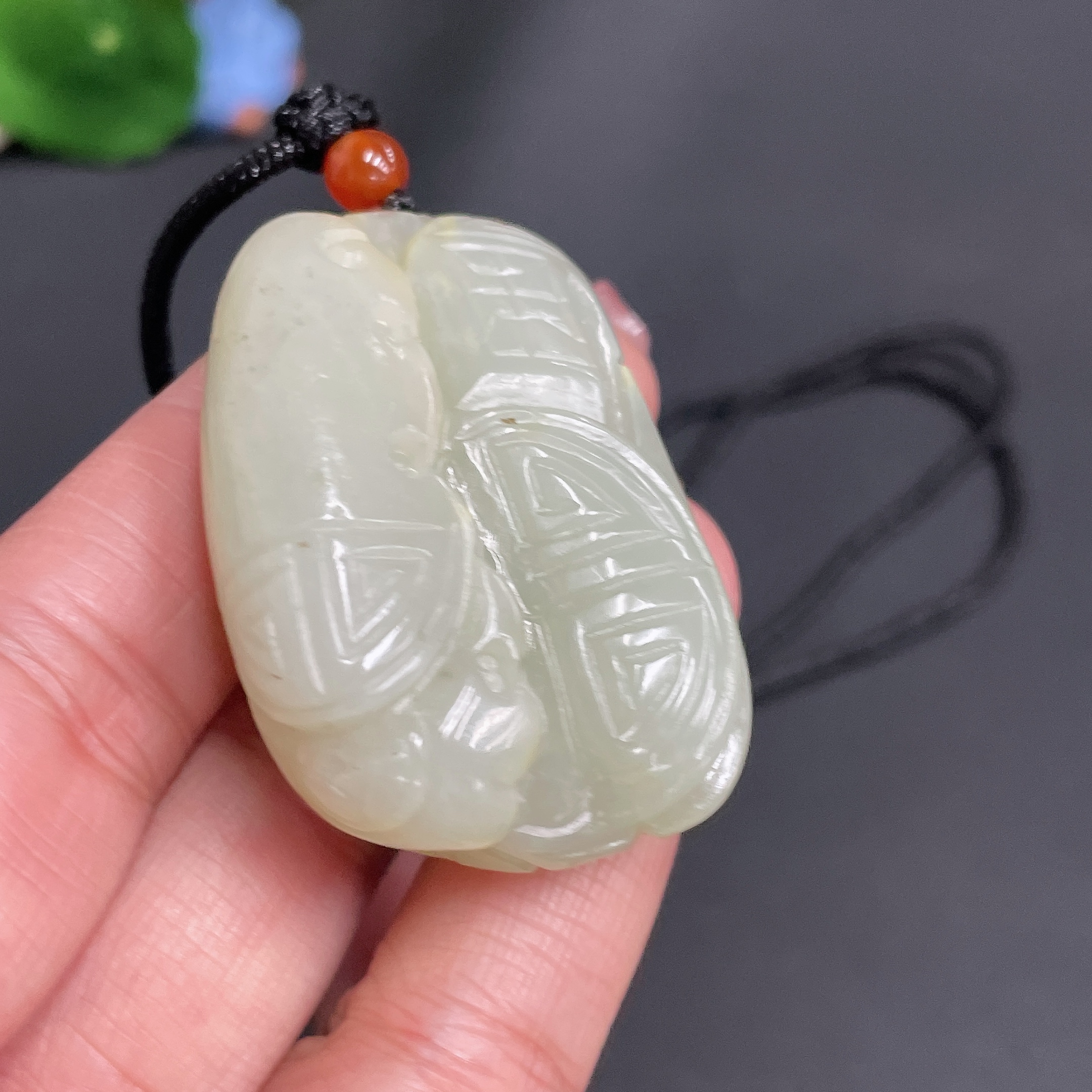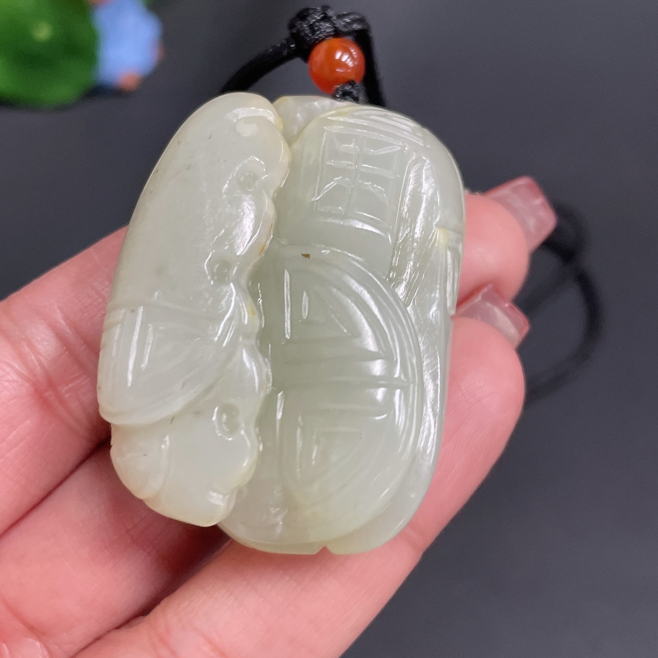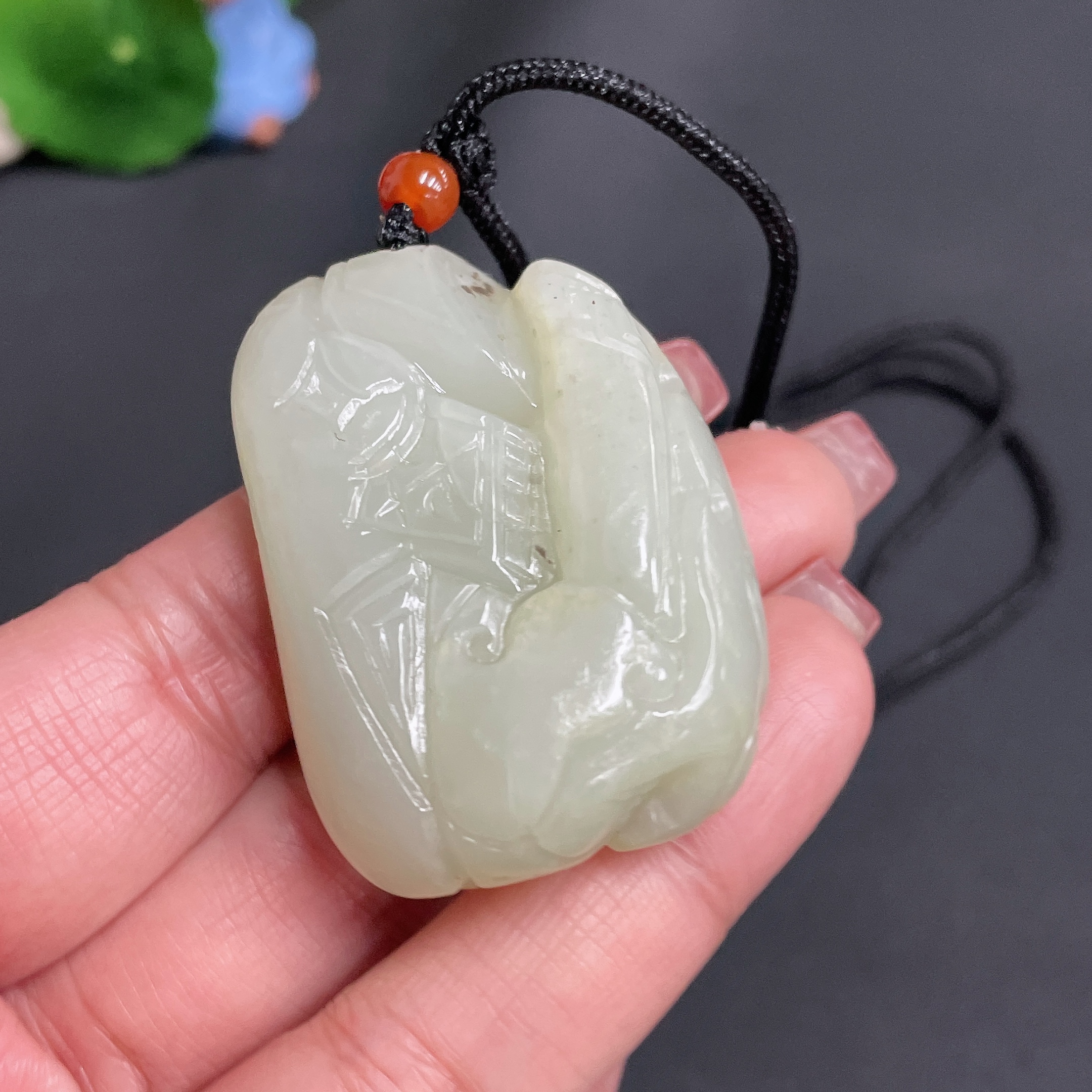 Hetian Jade Pendant, Antique Style, Undetermined Skin Color Origin, Total Weight Approx. [with Rope] 52.3g