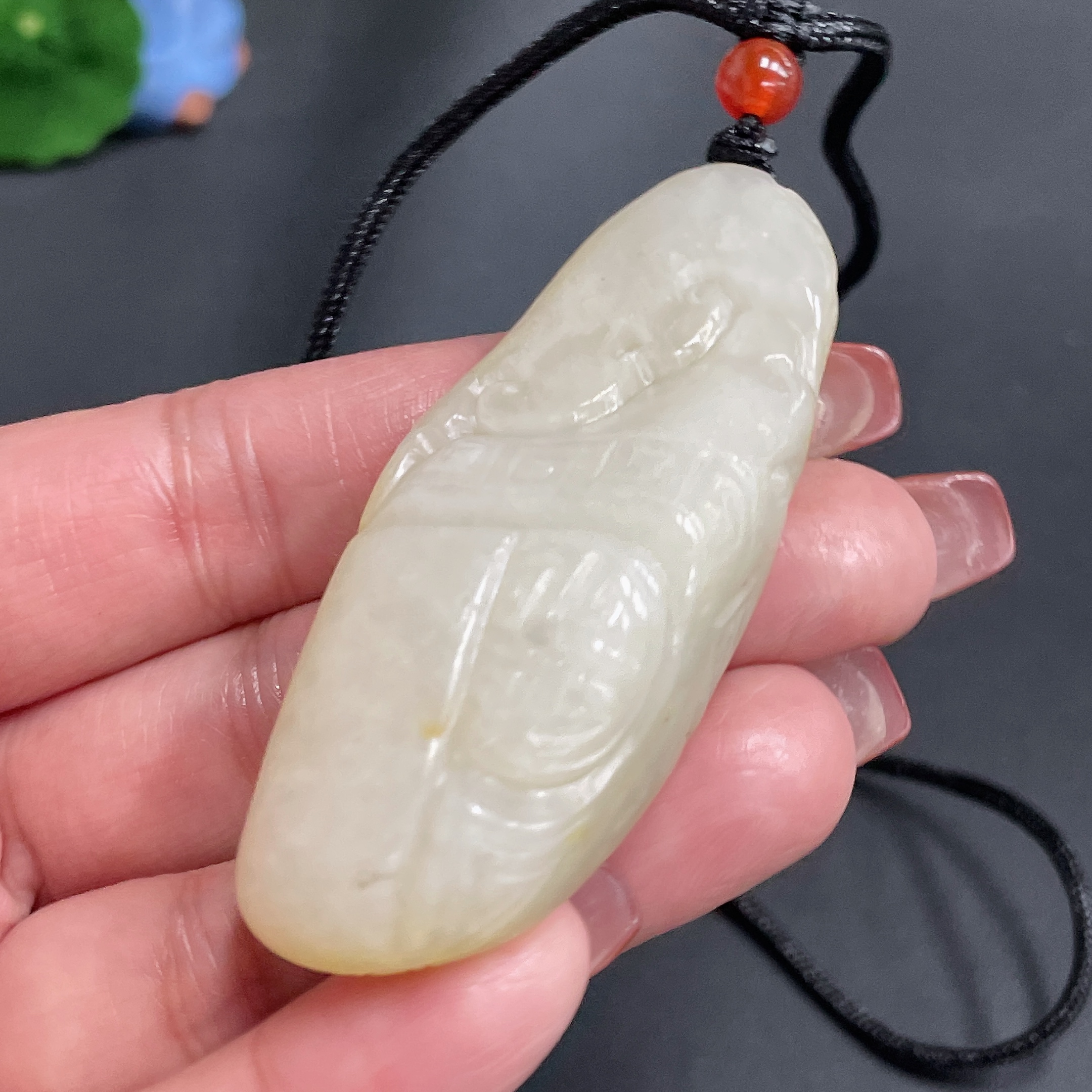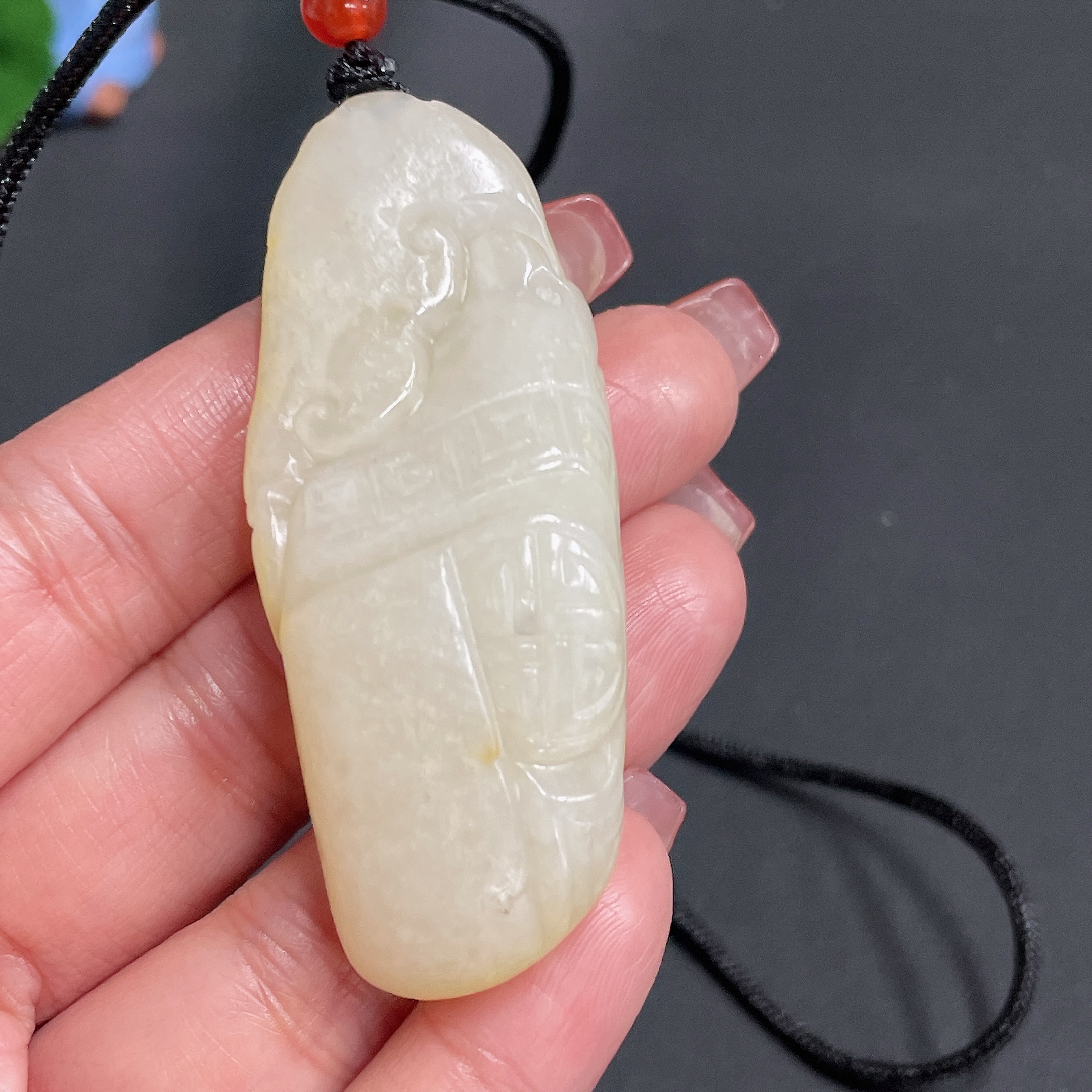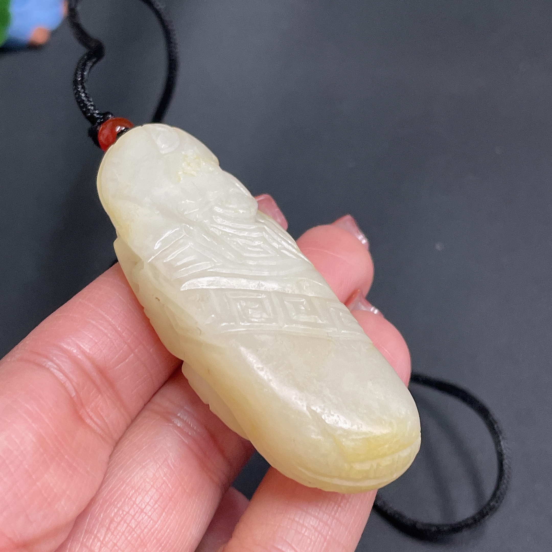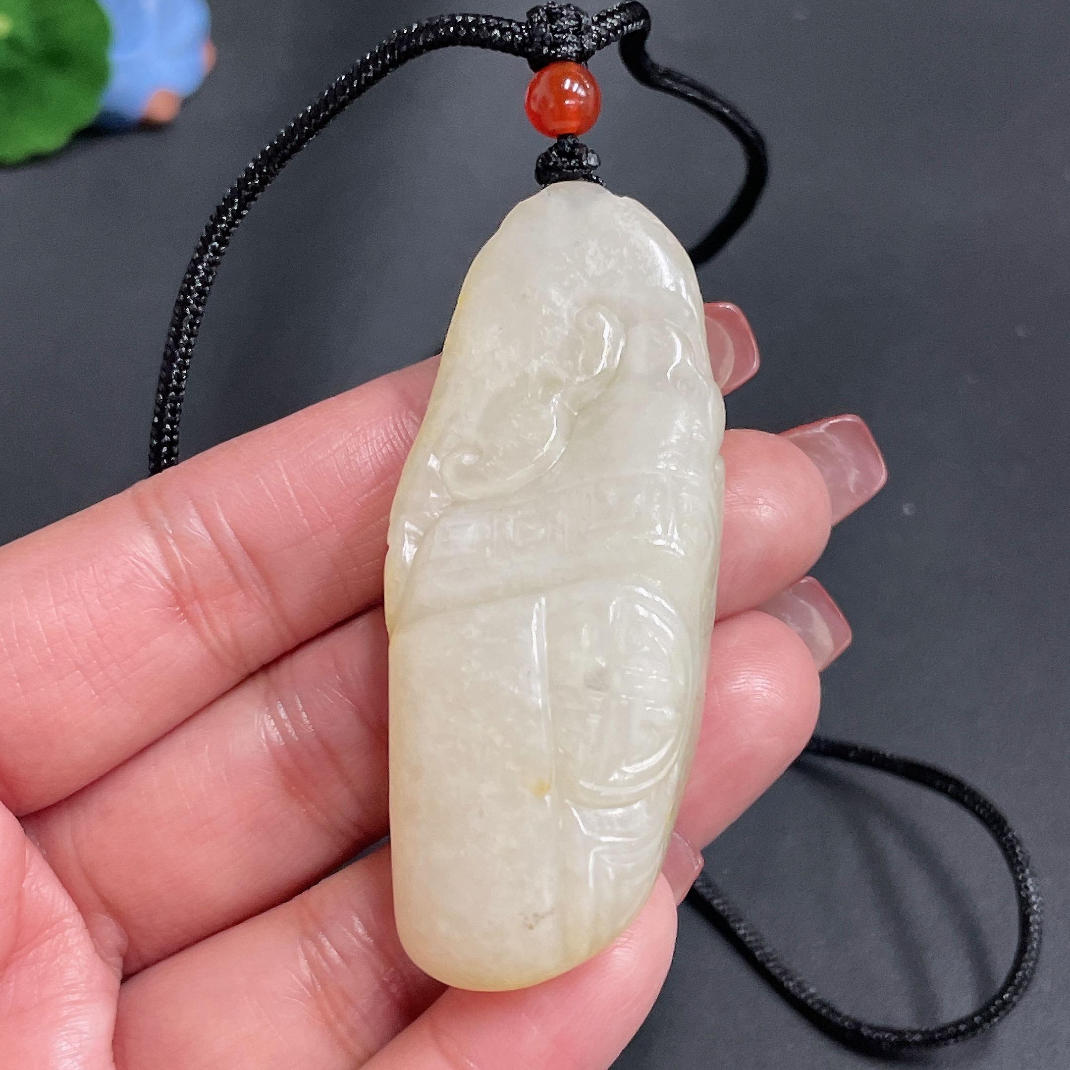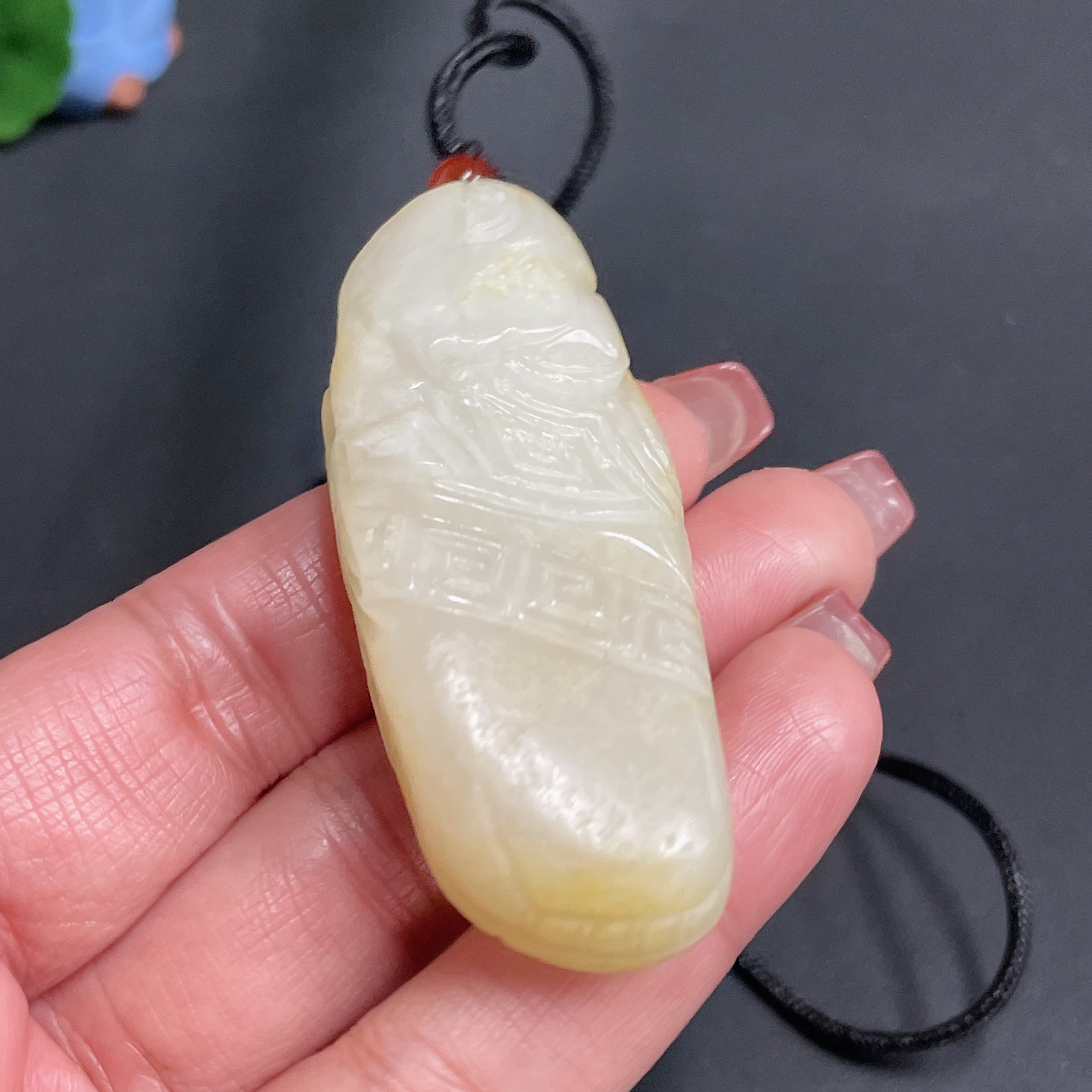 Hetian Jade Pendant, Antique-style Piece, Undetermined Skin Color Origin, Total Weight Approx. [Including Rope] 43g