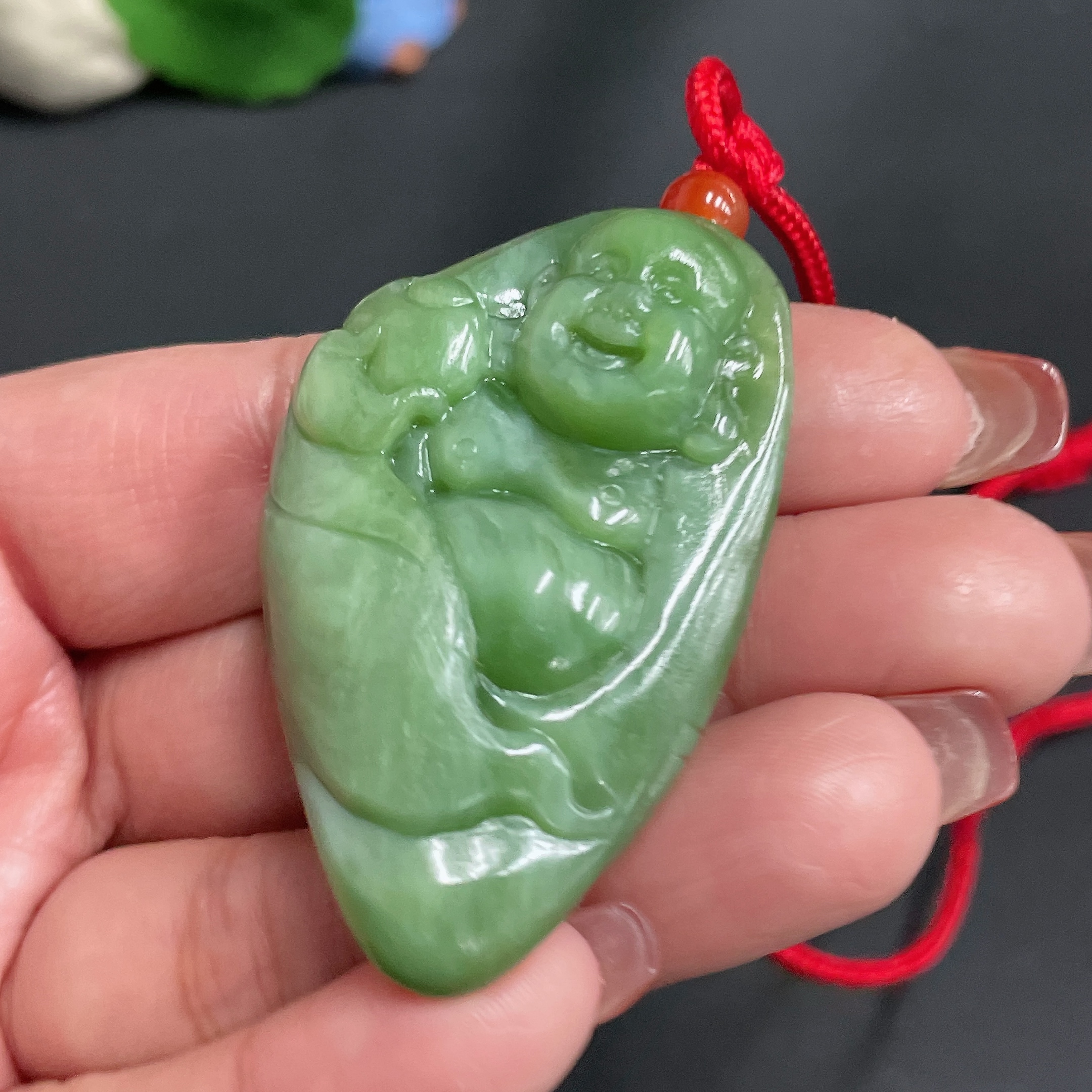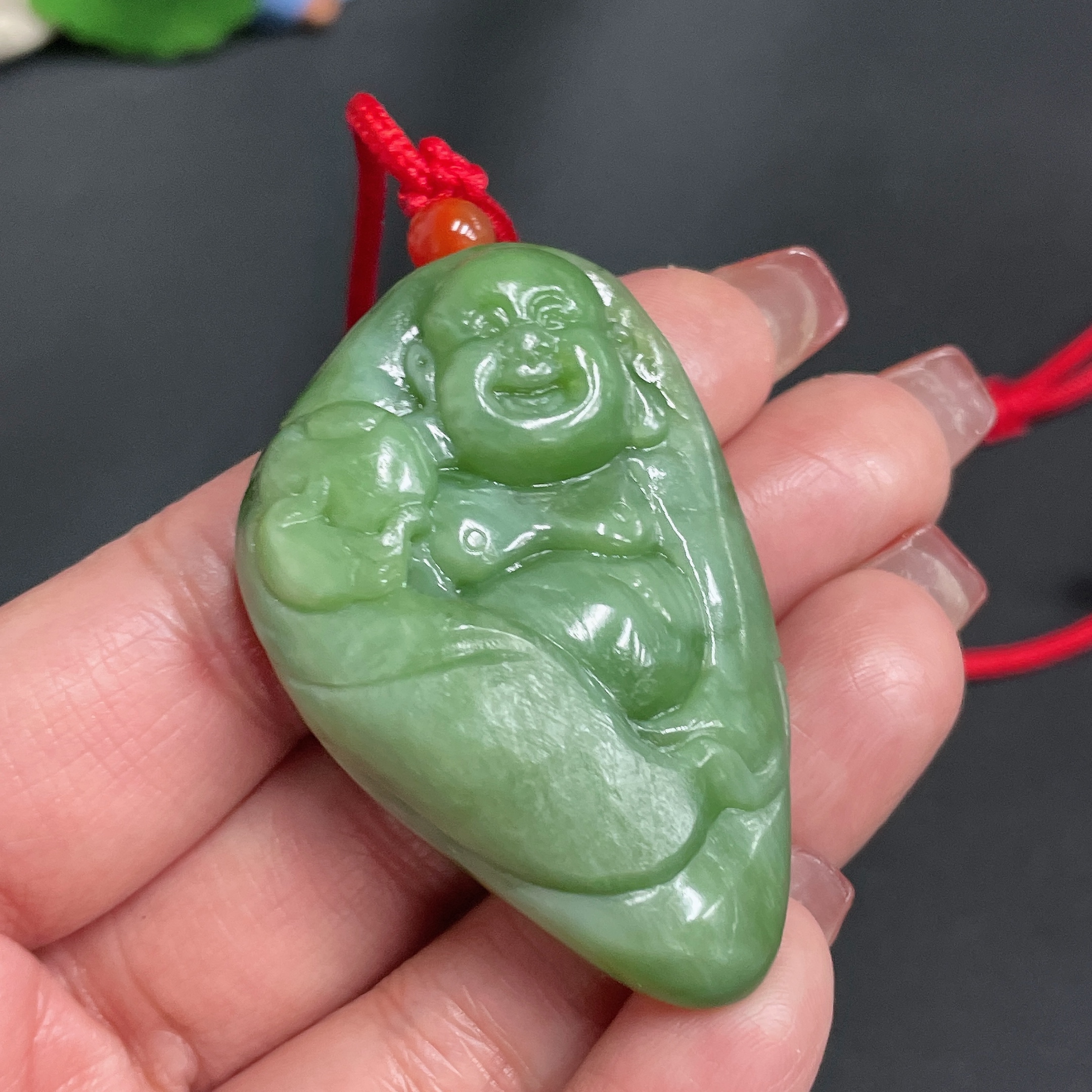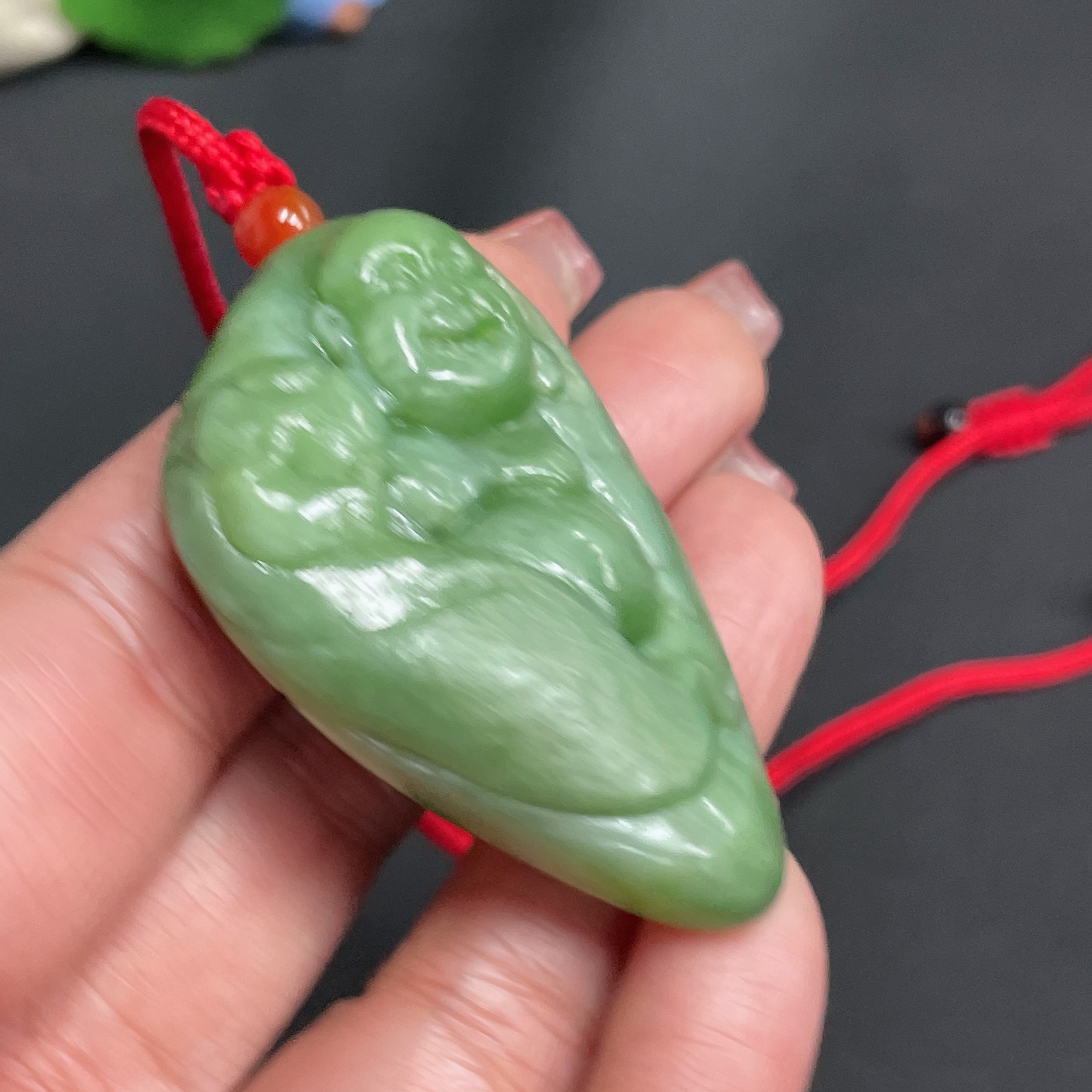 Hetian Jade Pendant - Buddha - Undetermined Skin Color Origin - Total Weight Approx. [Including Rope] 33.7g