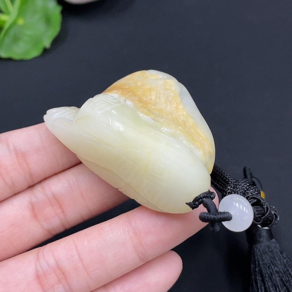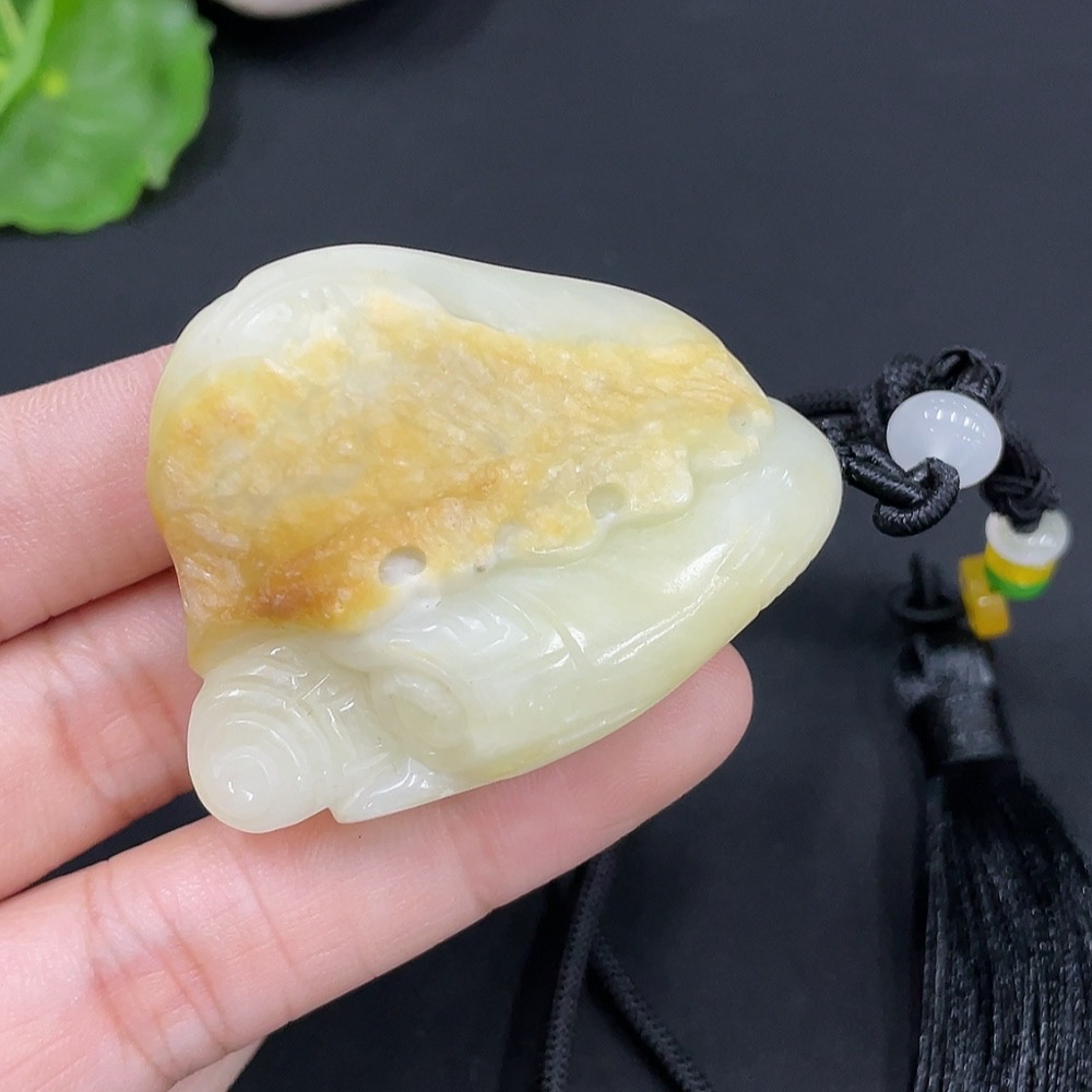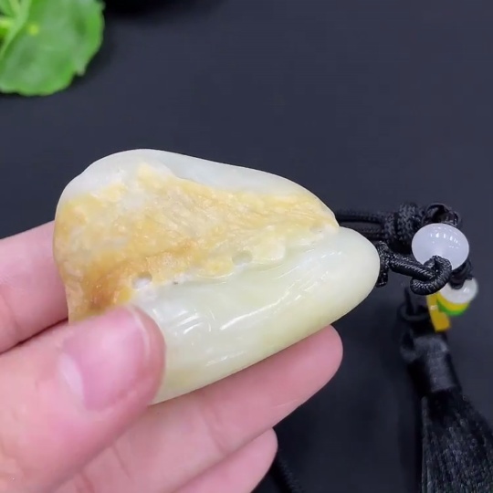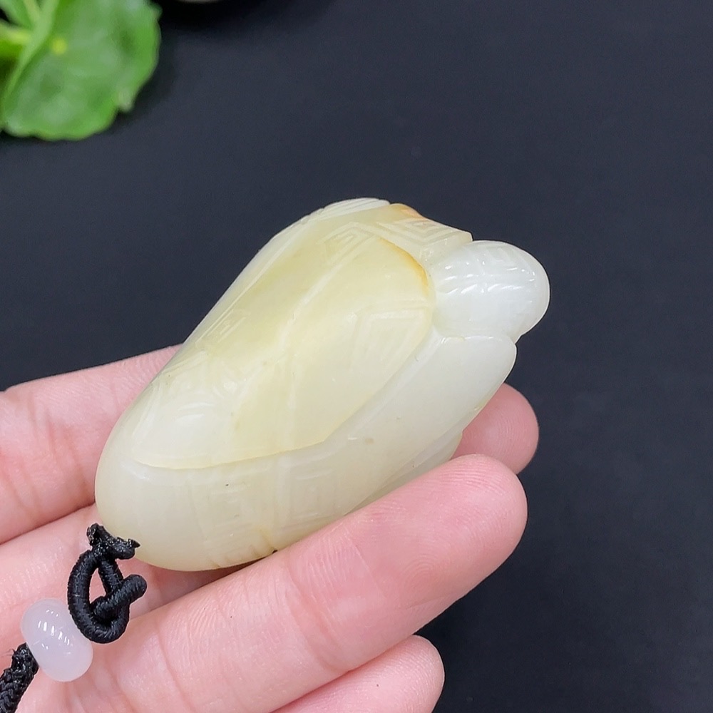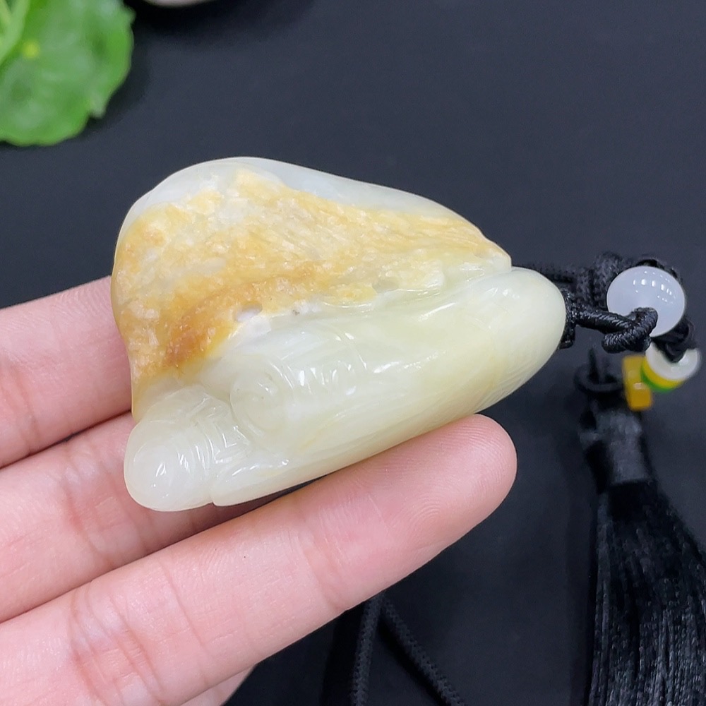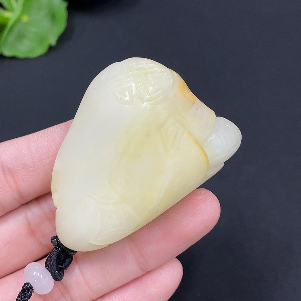 Hetian Jade Pendant, Antique Style, Undetermined Skin Color Origin, Total Weight (with Rope) Approx. 59.2g