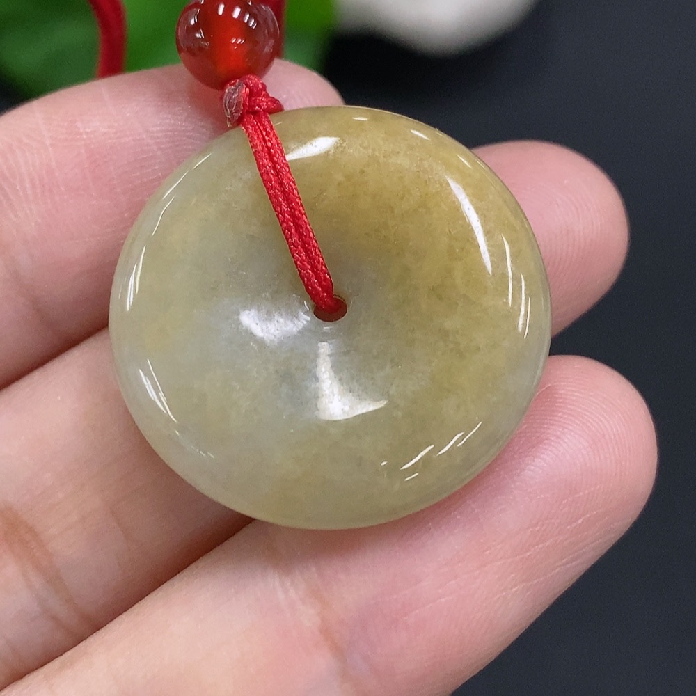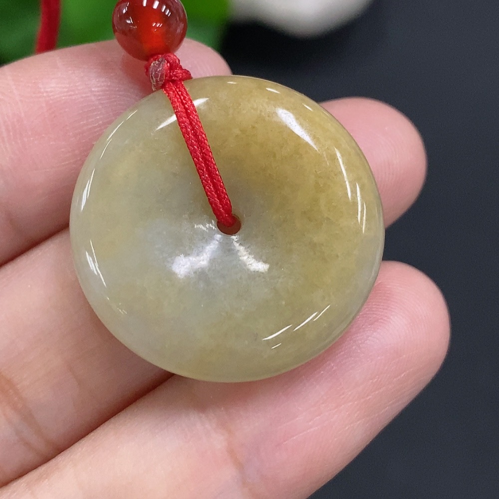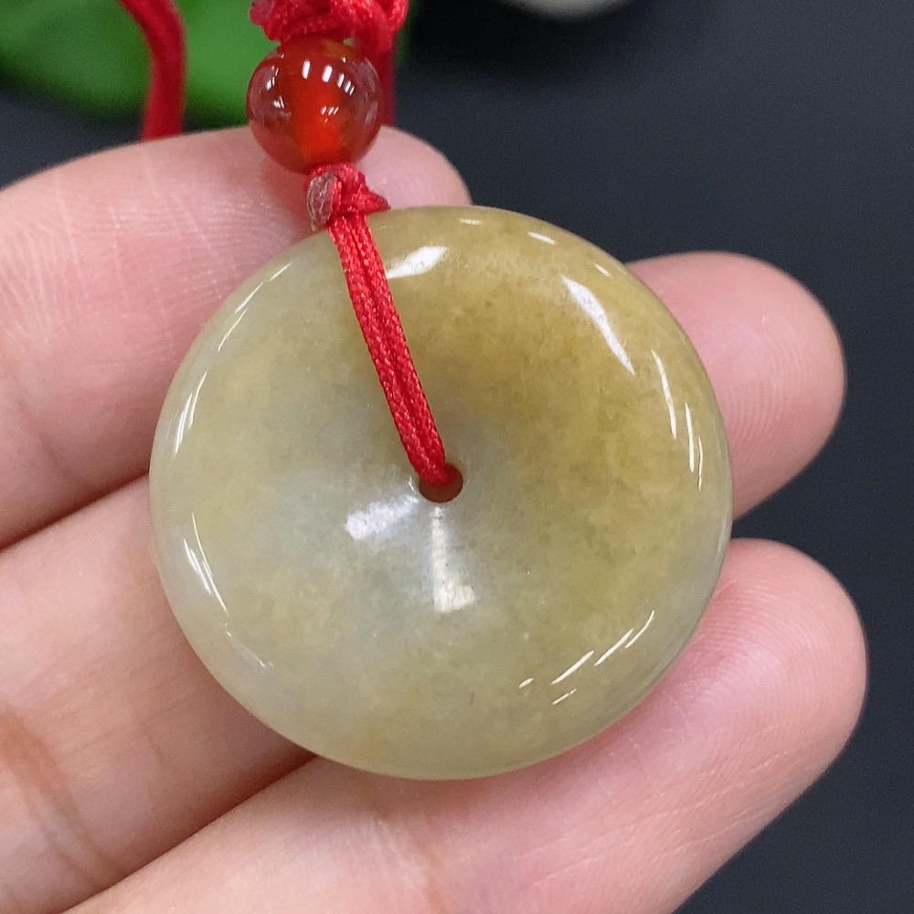 Jadeite Safety Pendant total weight with string approx. 10.9g (color origin undetermined)