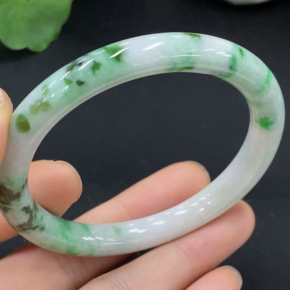 Jadeite Round Bangle Size 53.6 Total Weight Approx. 32.46g with Other Mineral Components