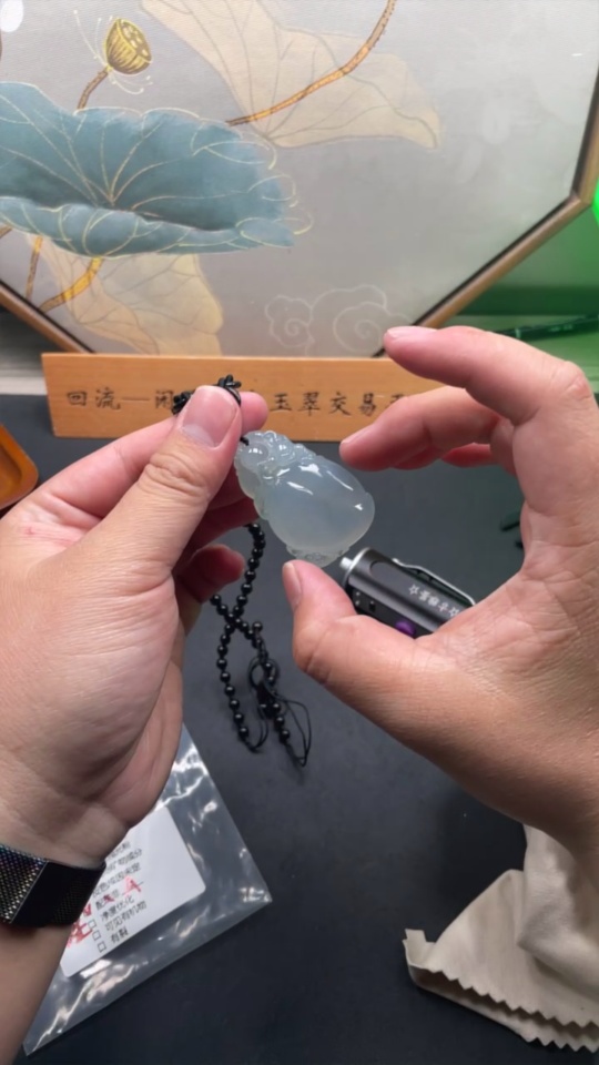 Jadeite Pendant "Fu Gua" with total weight approx. 48.93g including chain (non-A grade)
