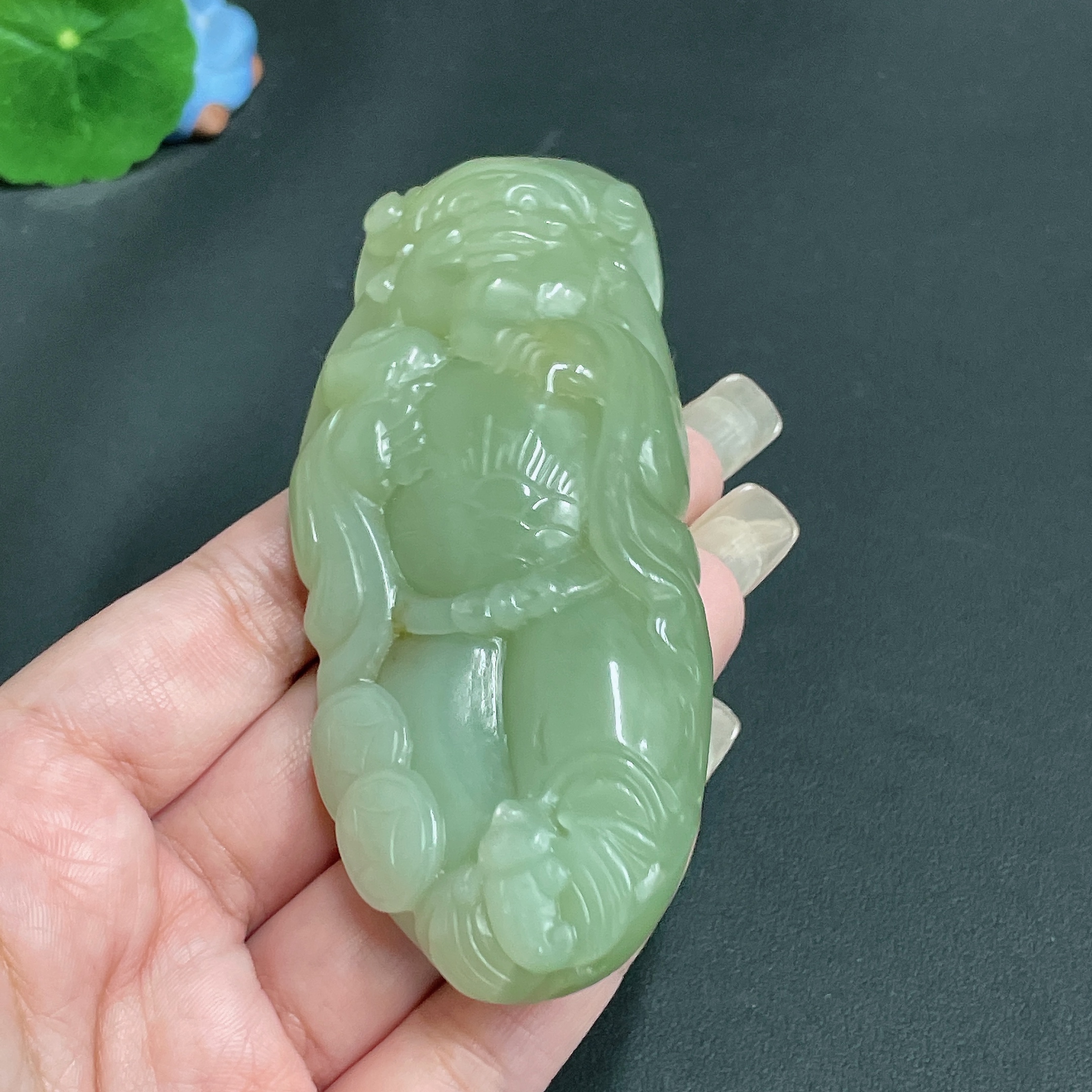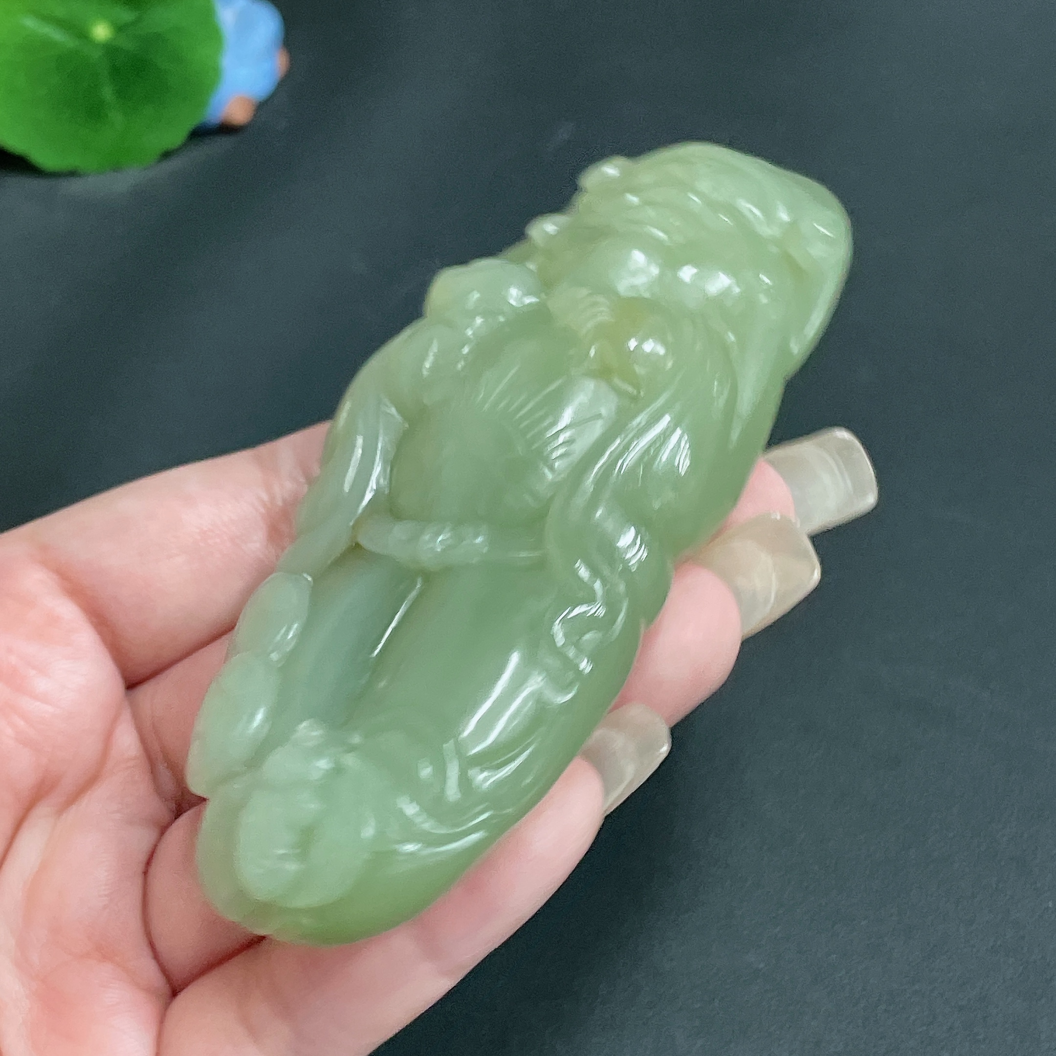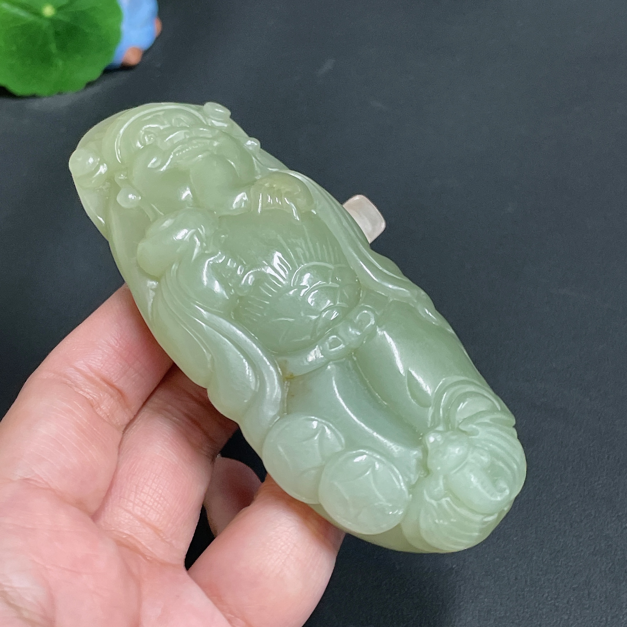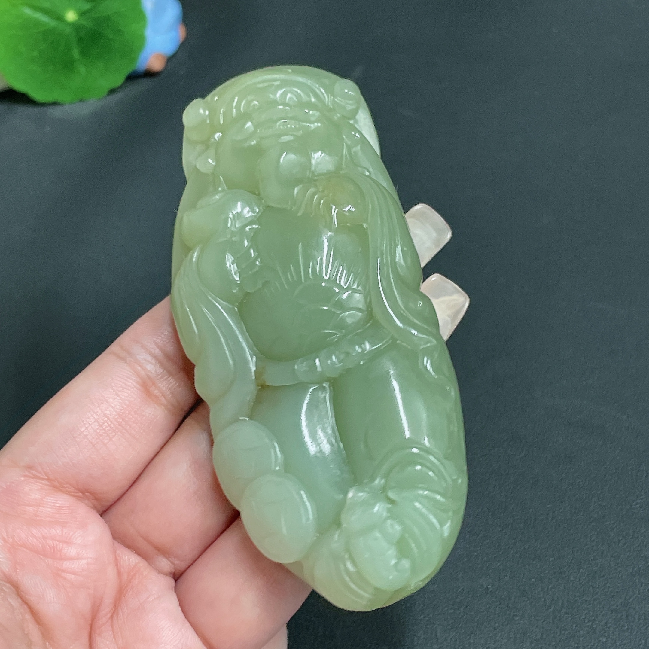 Hetian Jade Handheld Piece, God of Wealth, Total Weight Approx. 143.7g