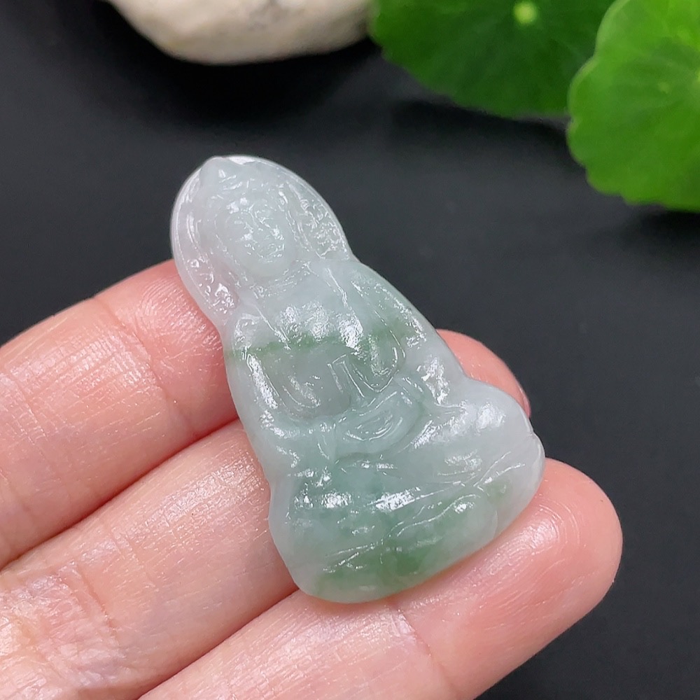 Jadeite Rough Guanyin Pendant, Total Weight Approximately 8g