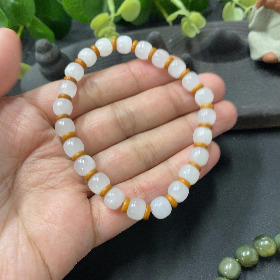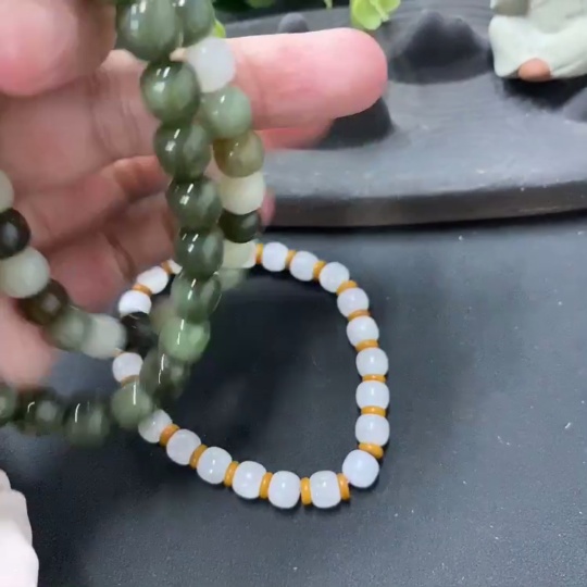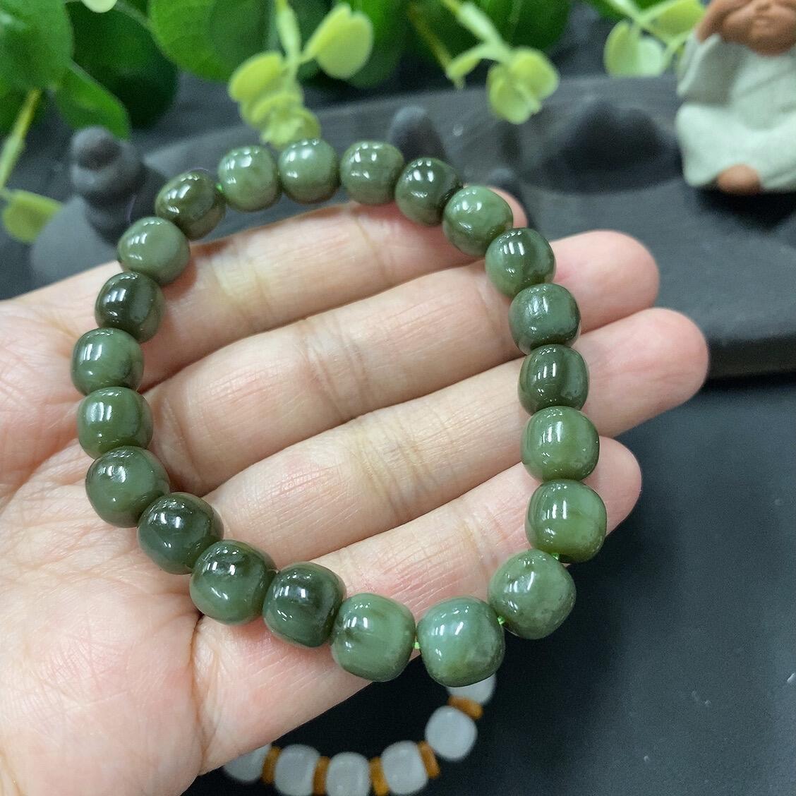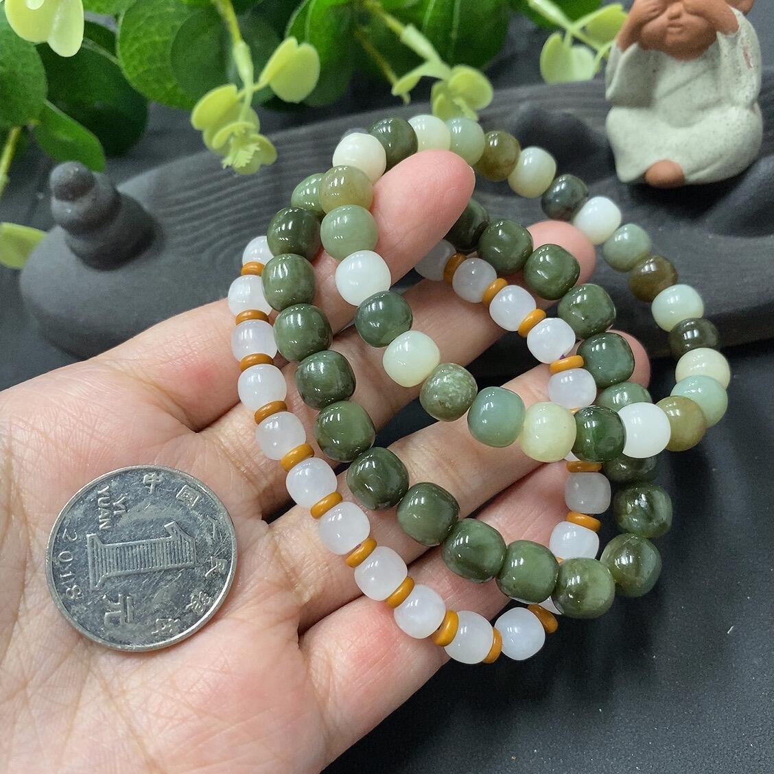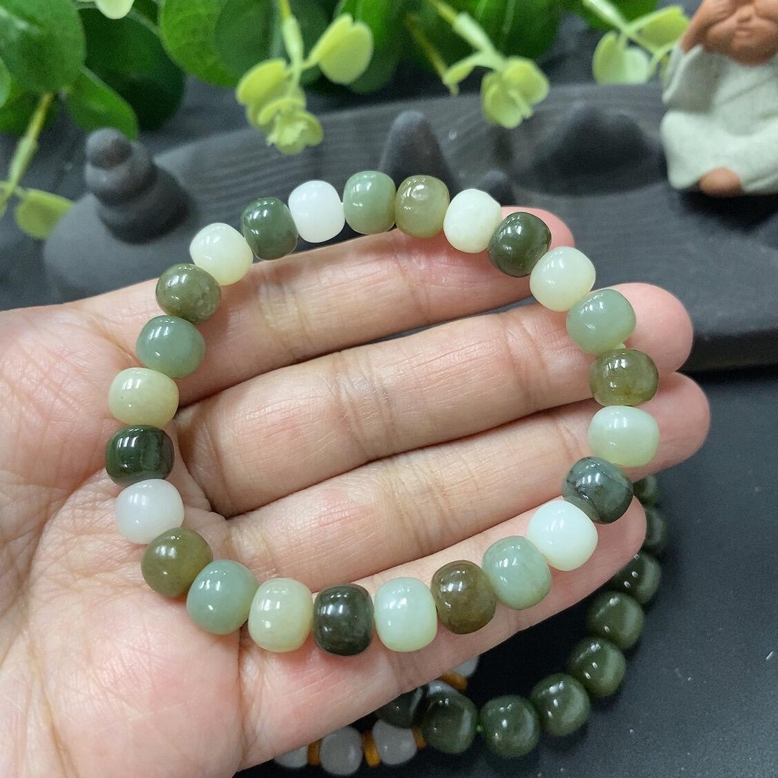 Hetian Jade Bead Necklace (Three Strands) with Individual Cracks, Size 6.8/8/8.2mm, Total Weight 55.5g