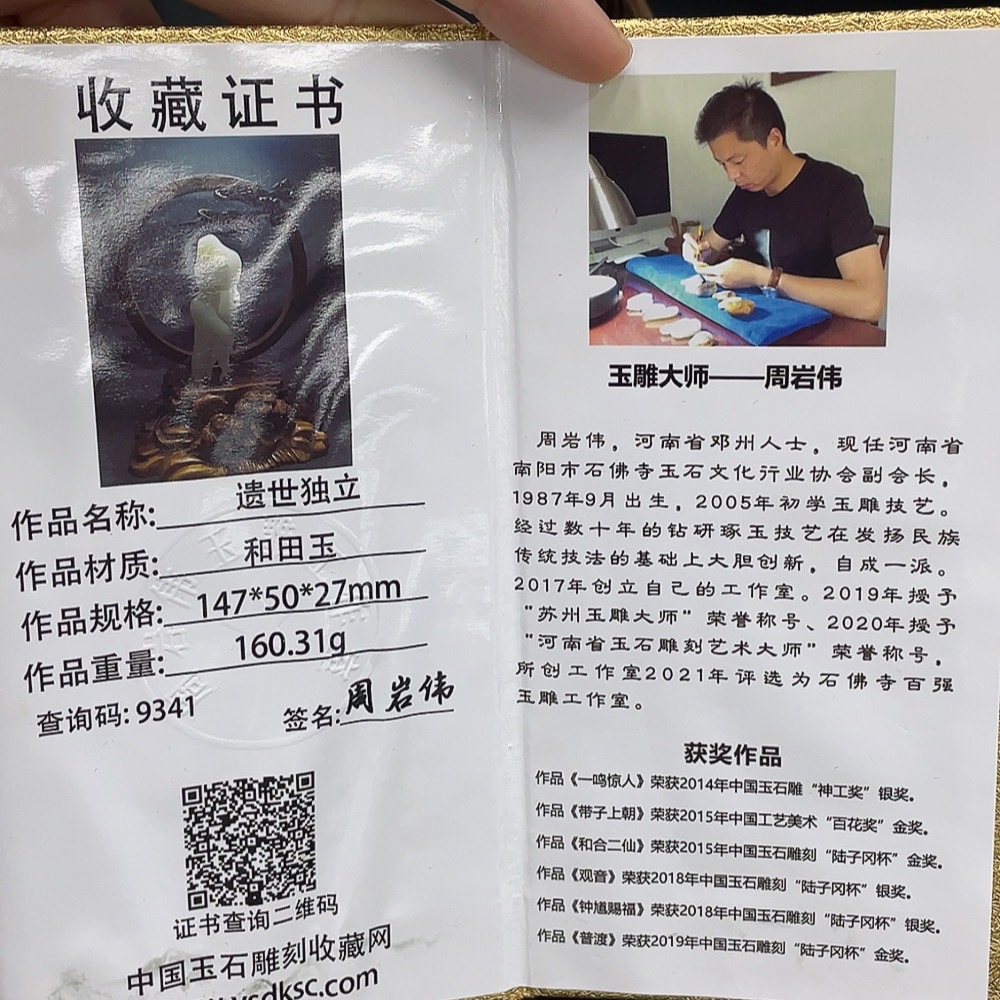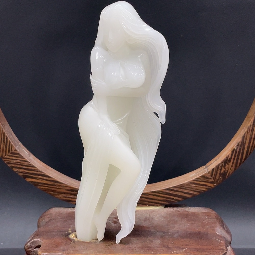 Hetian Jade Ornament - National Beauty and Heavenly Fragrance, Collection Certificate, Undetermined Skin Color Origin, Total Weight Approx. 160.2g