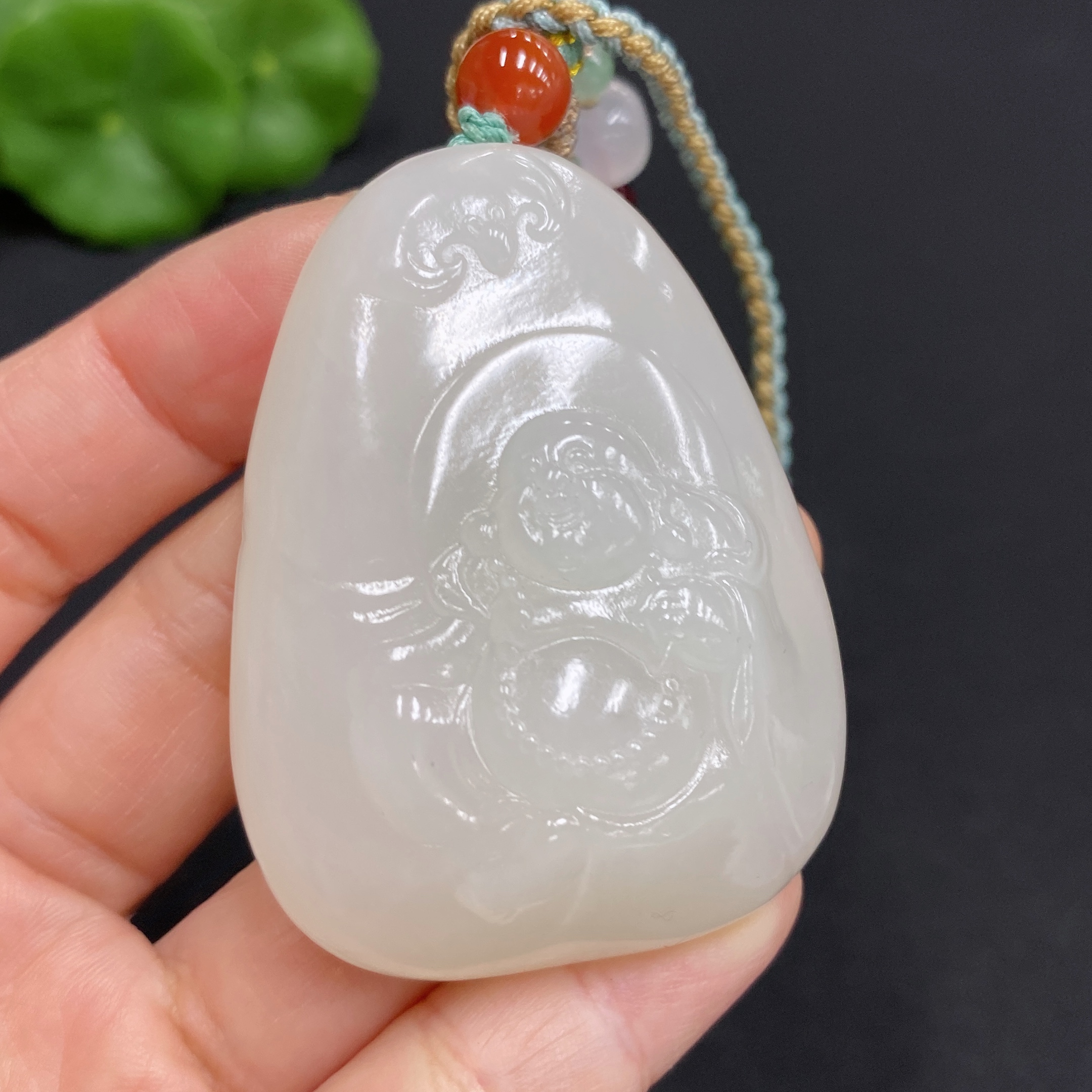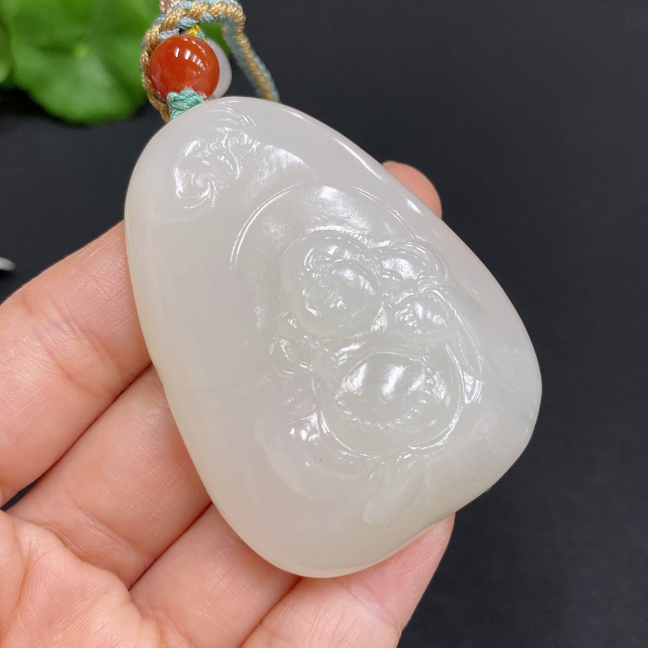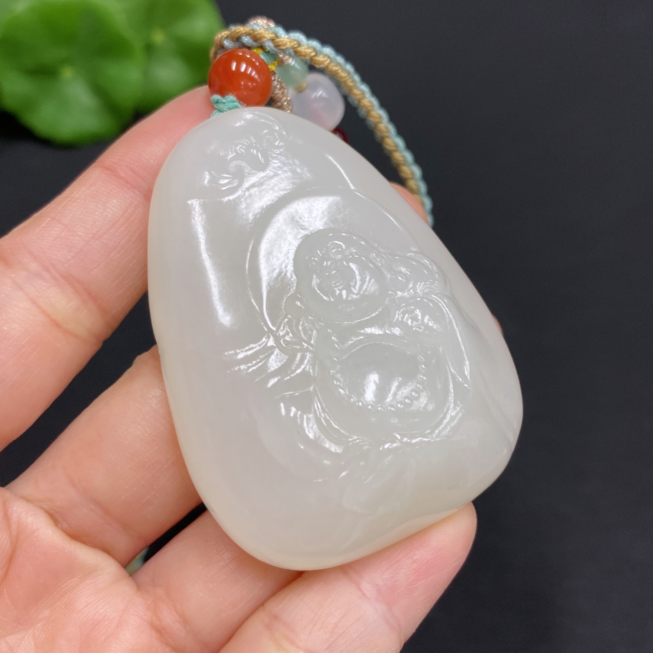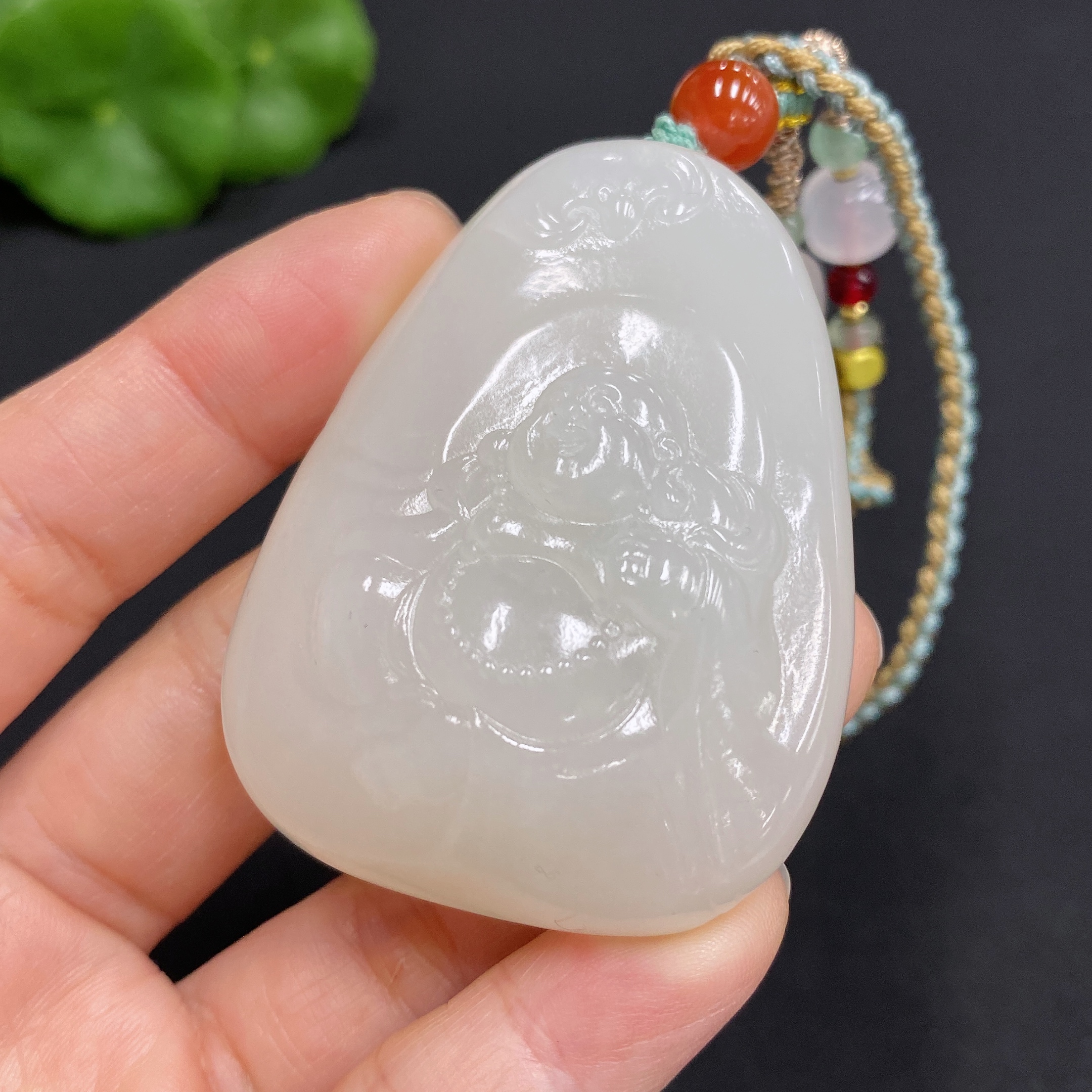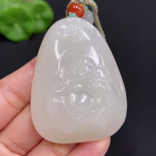 Hetian Jade Pendant Buddha, Total Weight (including rope): 56.8g