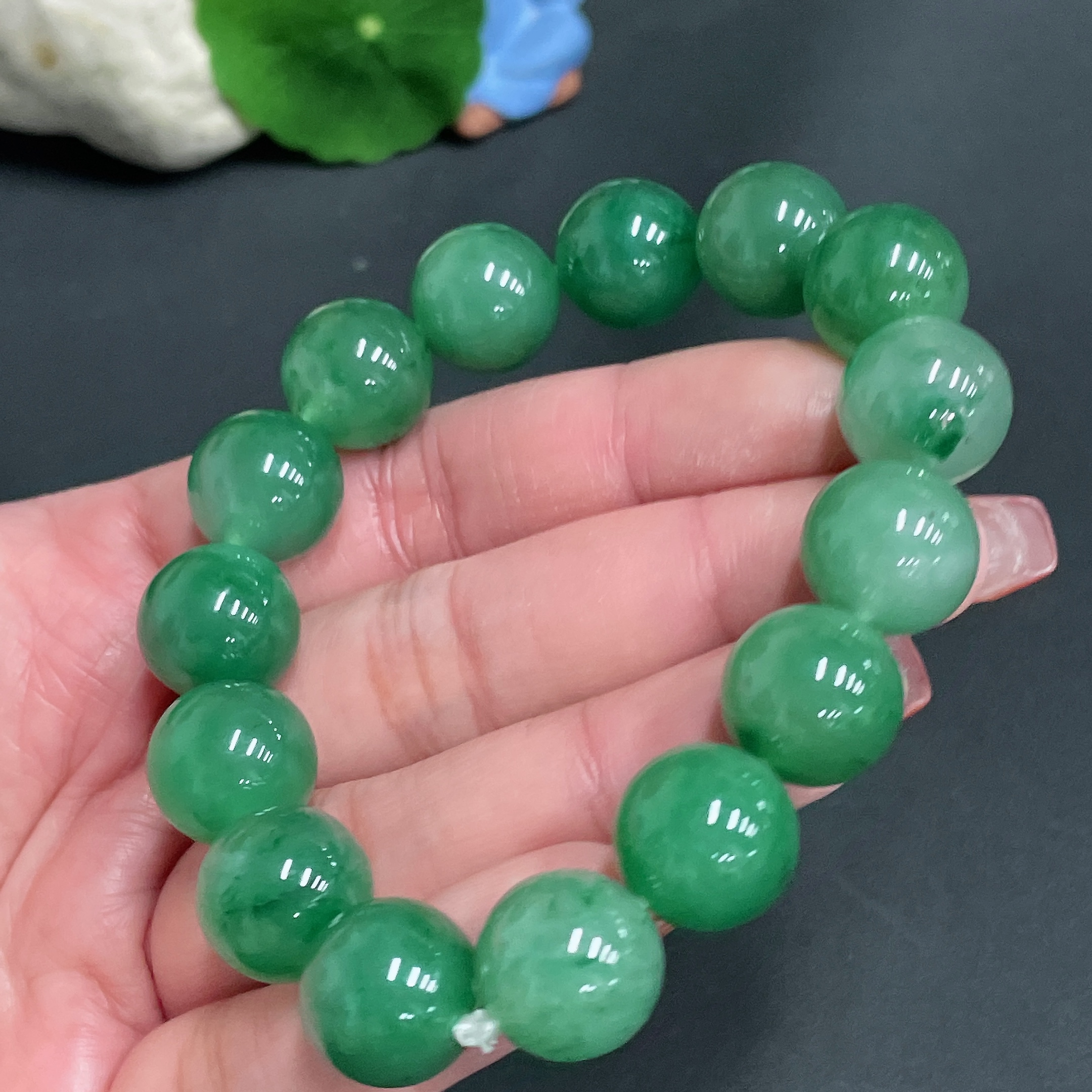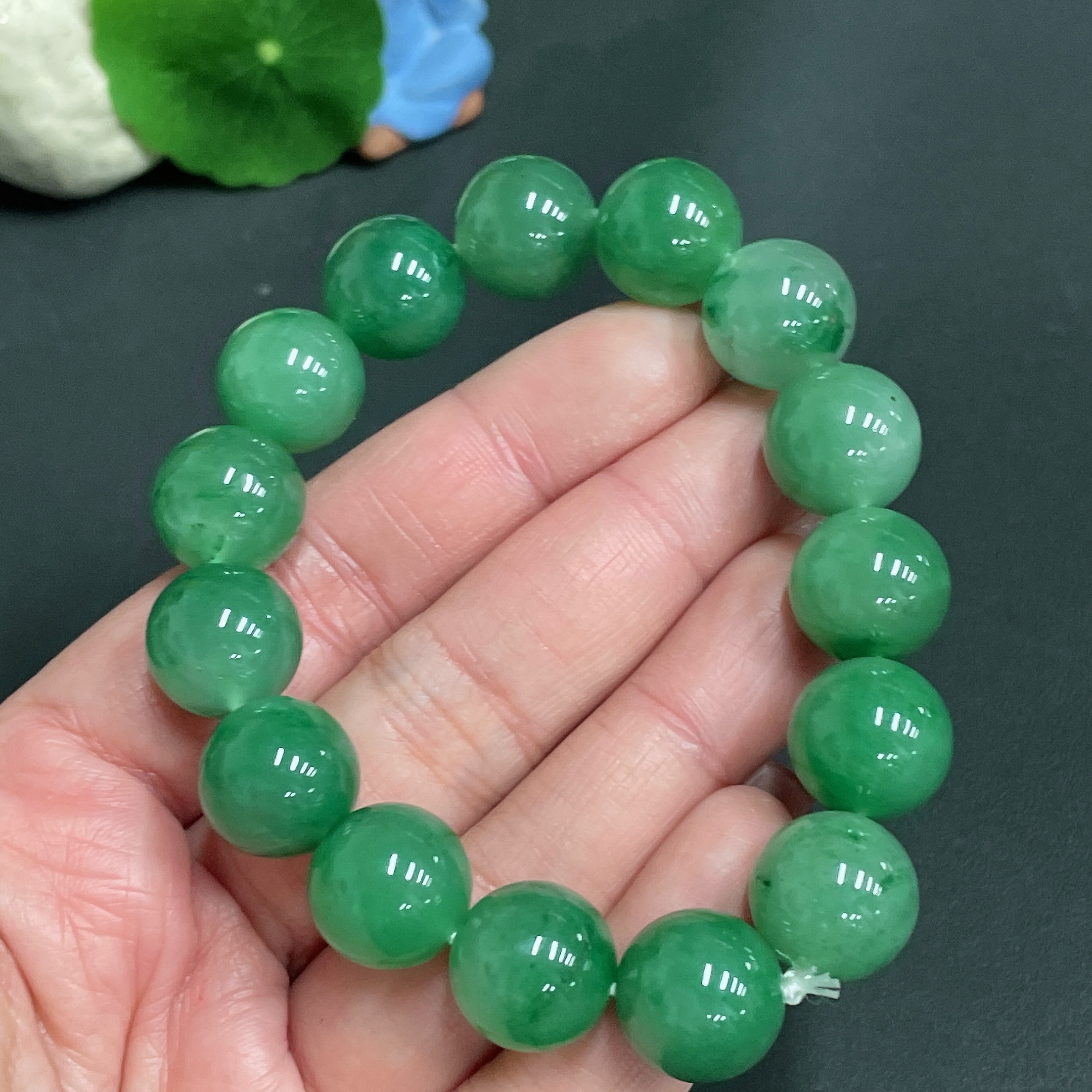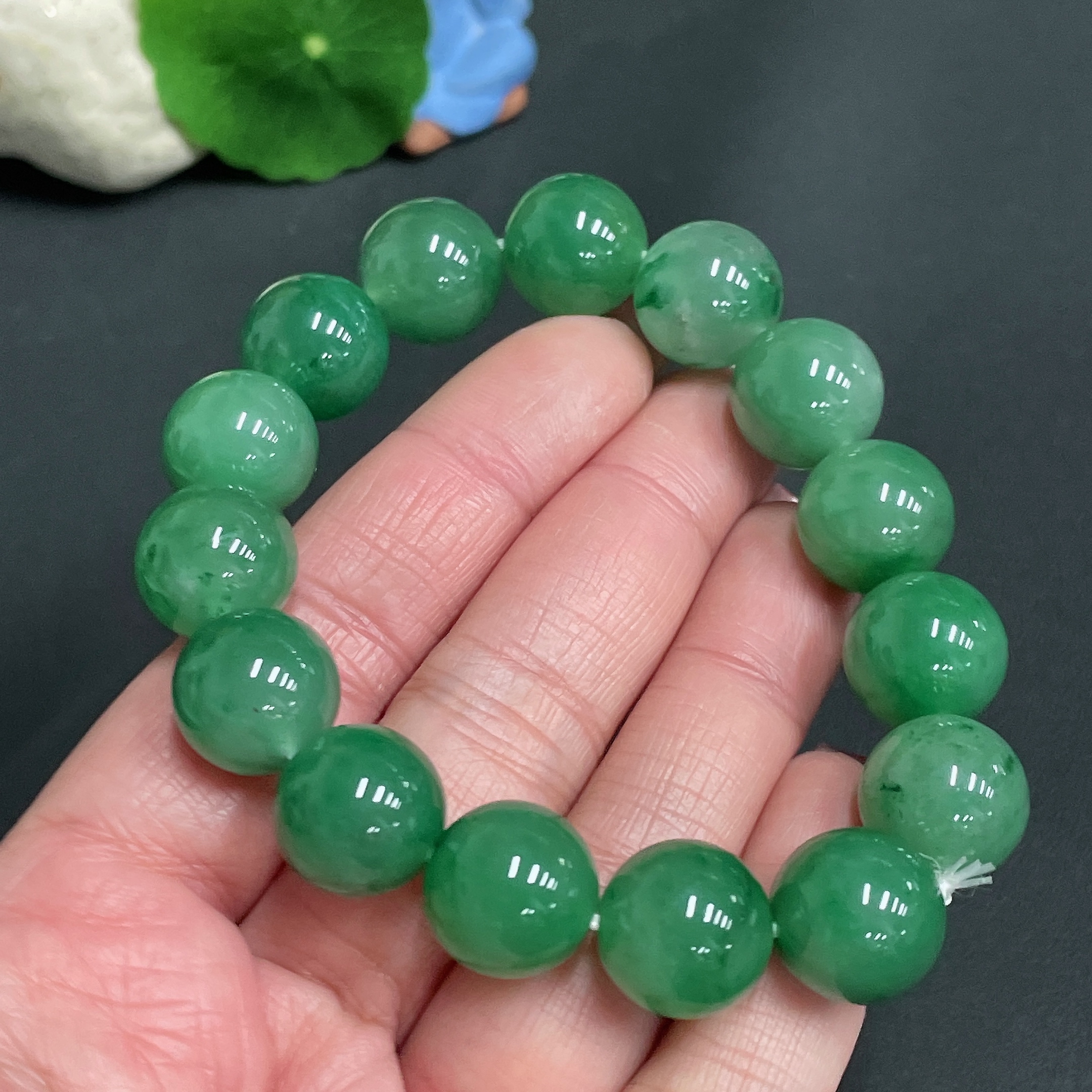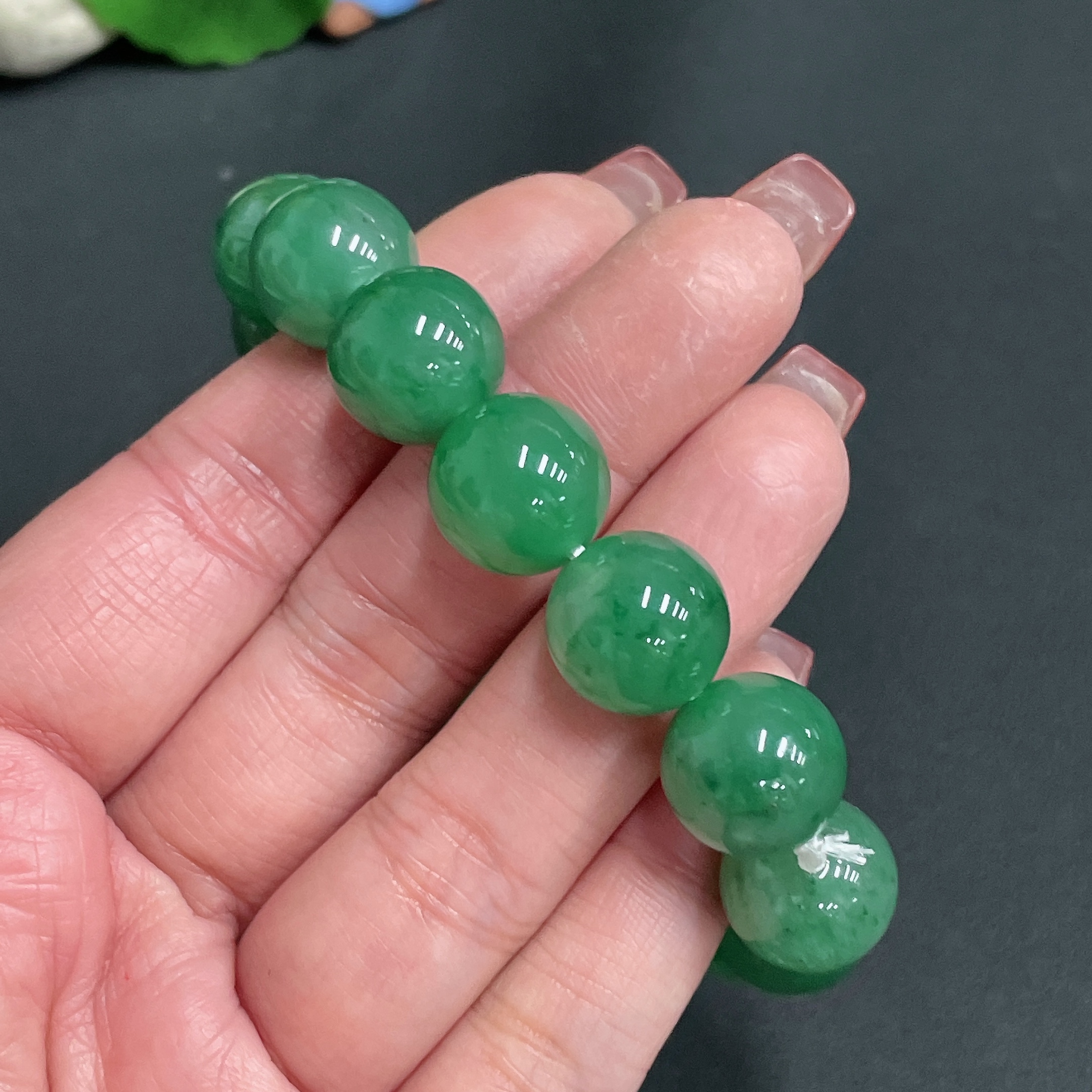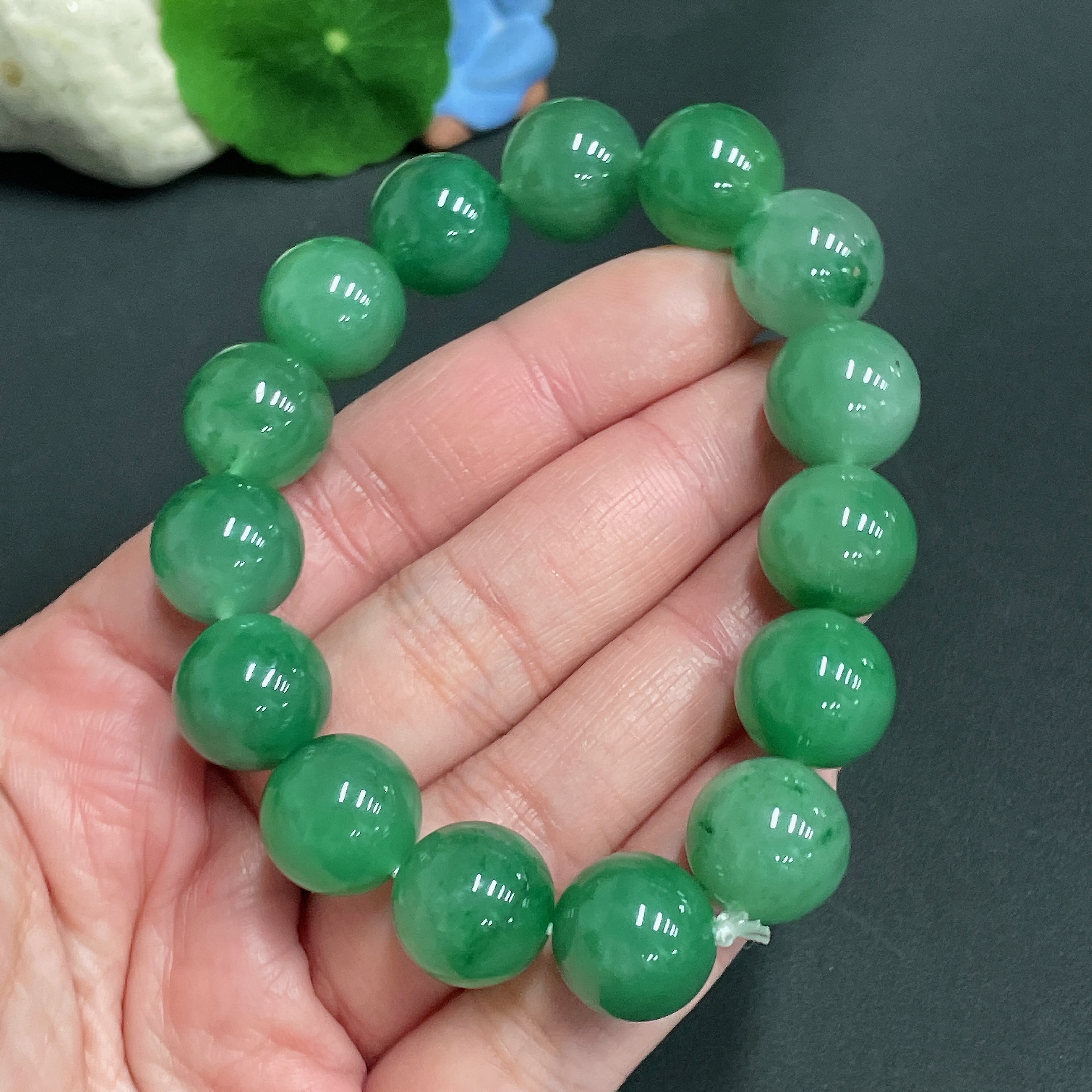 Dulong Jade Bracelet, Approx. 13.6 mm Beads, Total Weight Approx. 54.1g