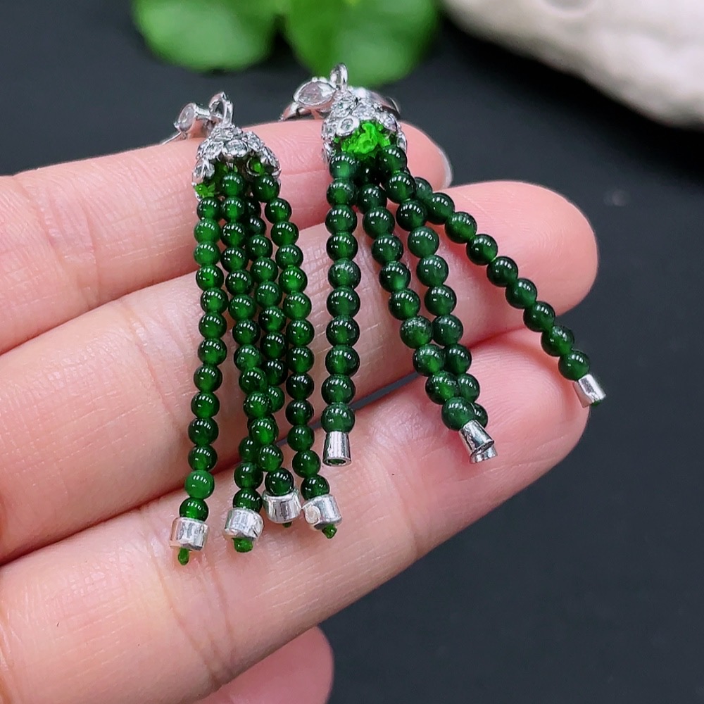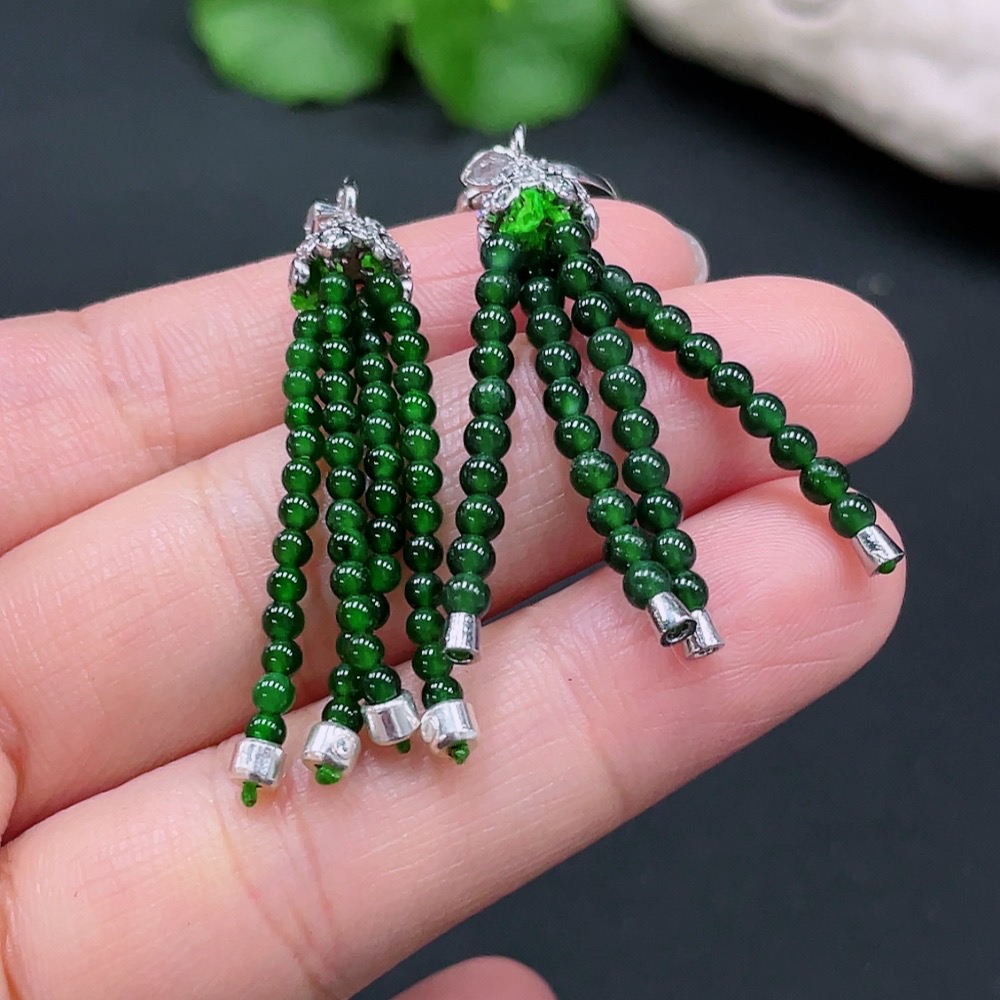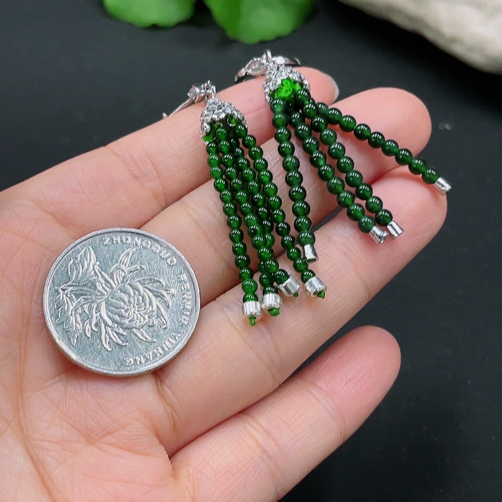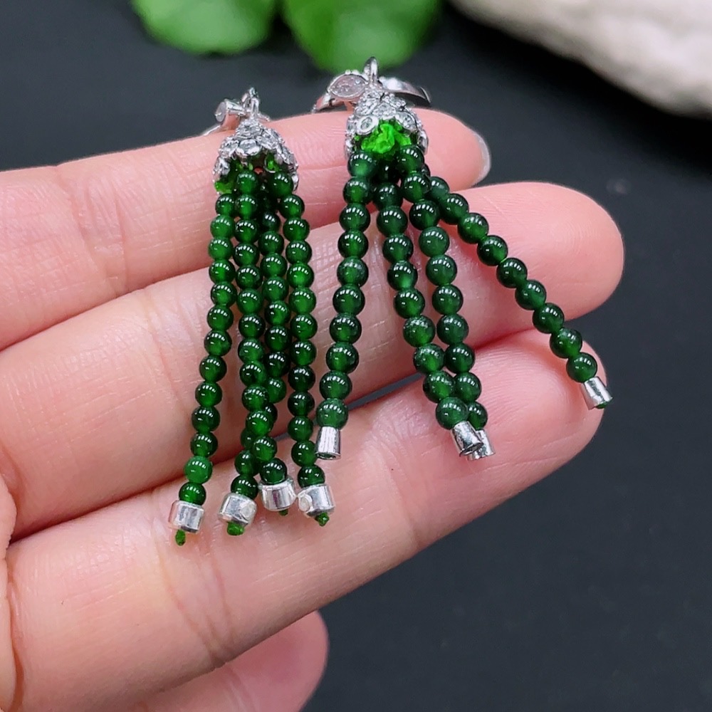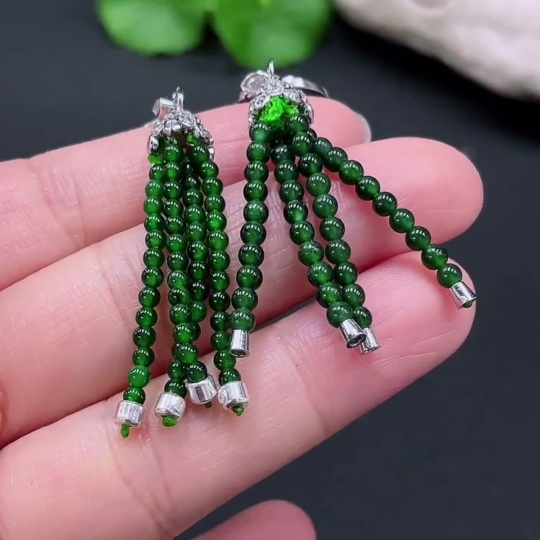 Jadeite Inlaid Earrings Non-Gold Inlaid Total Weight Approx.7.1g
