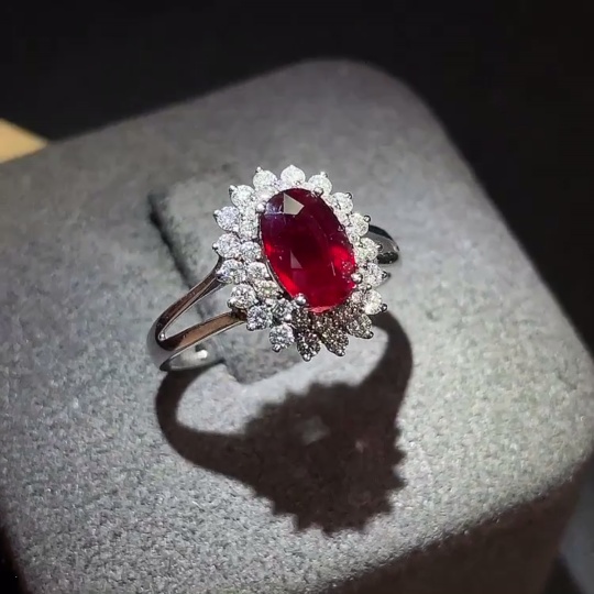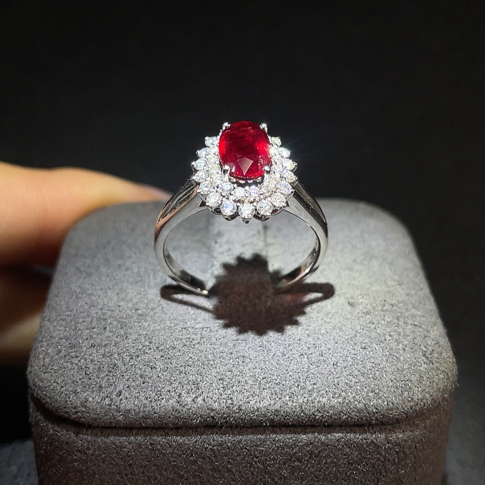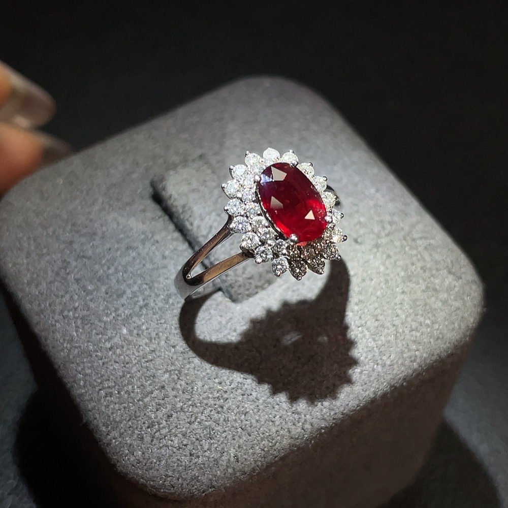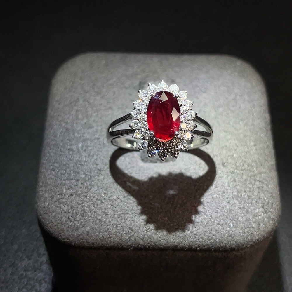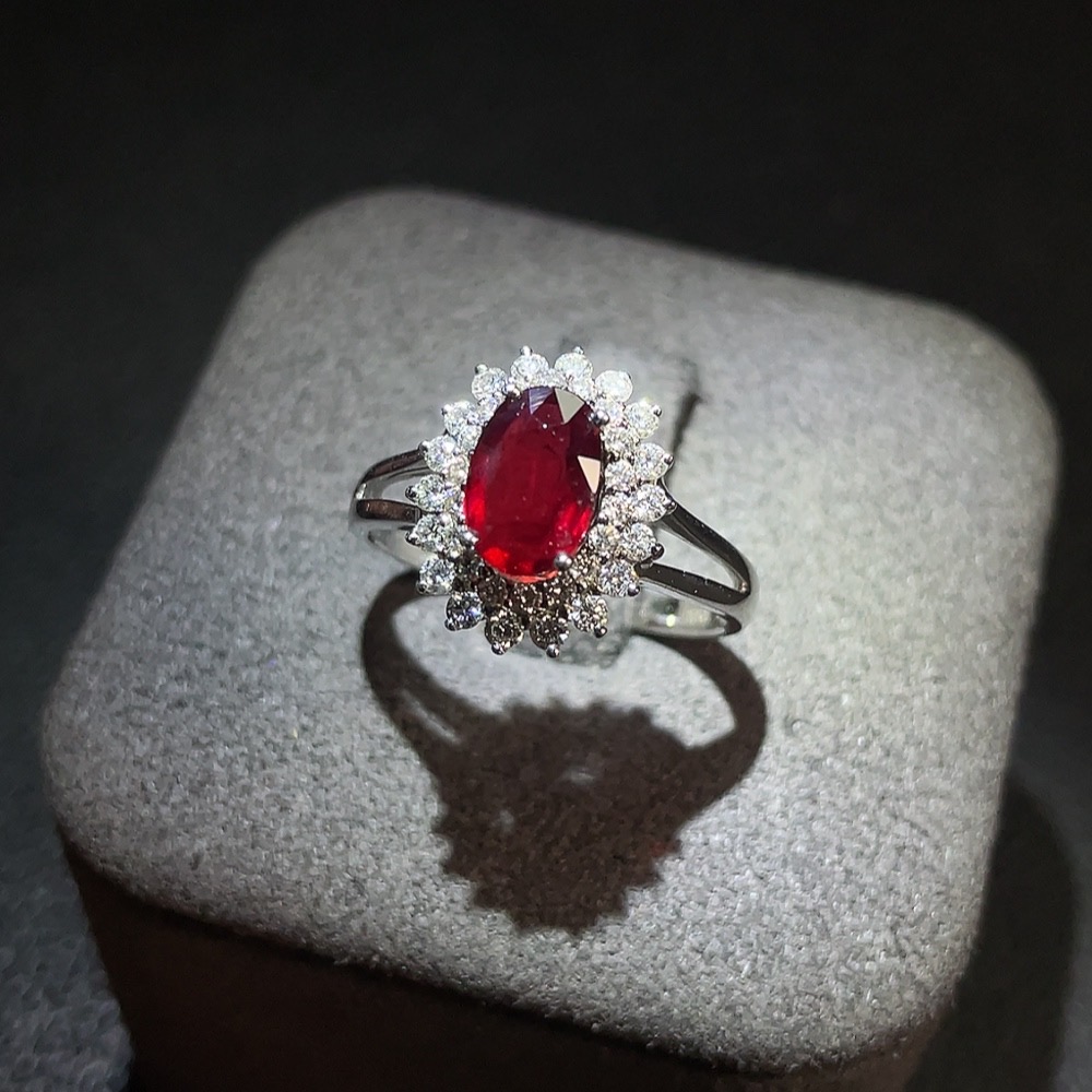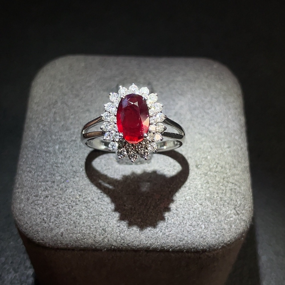Ruby Ring Set in 18K Gold with 58% Red Gold Content, Size 14, Total Weight Approx. 3.64g, GRS: Mozambique, No Heat, Pigeon Blood Red