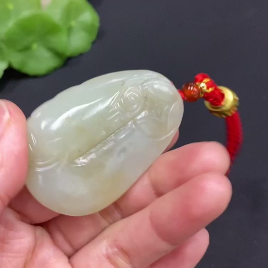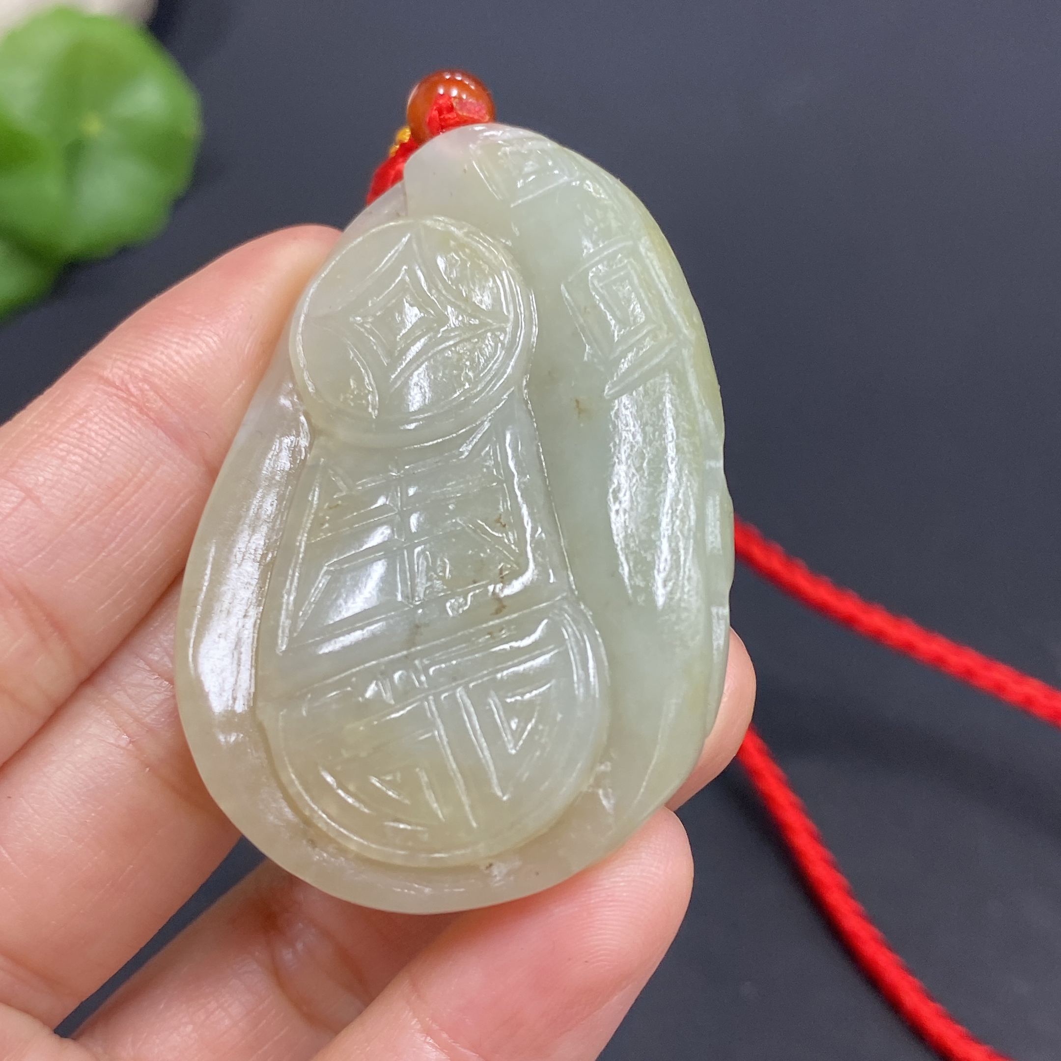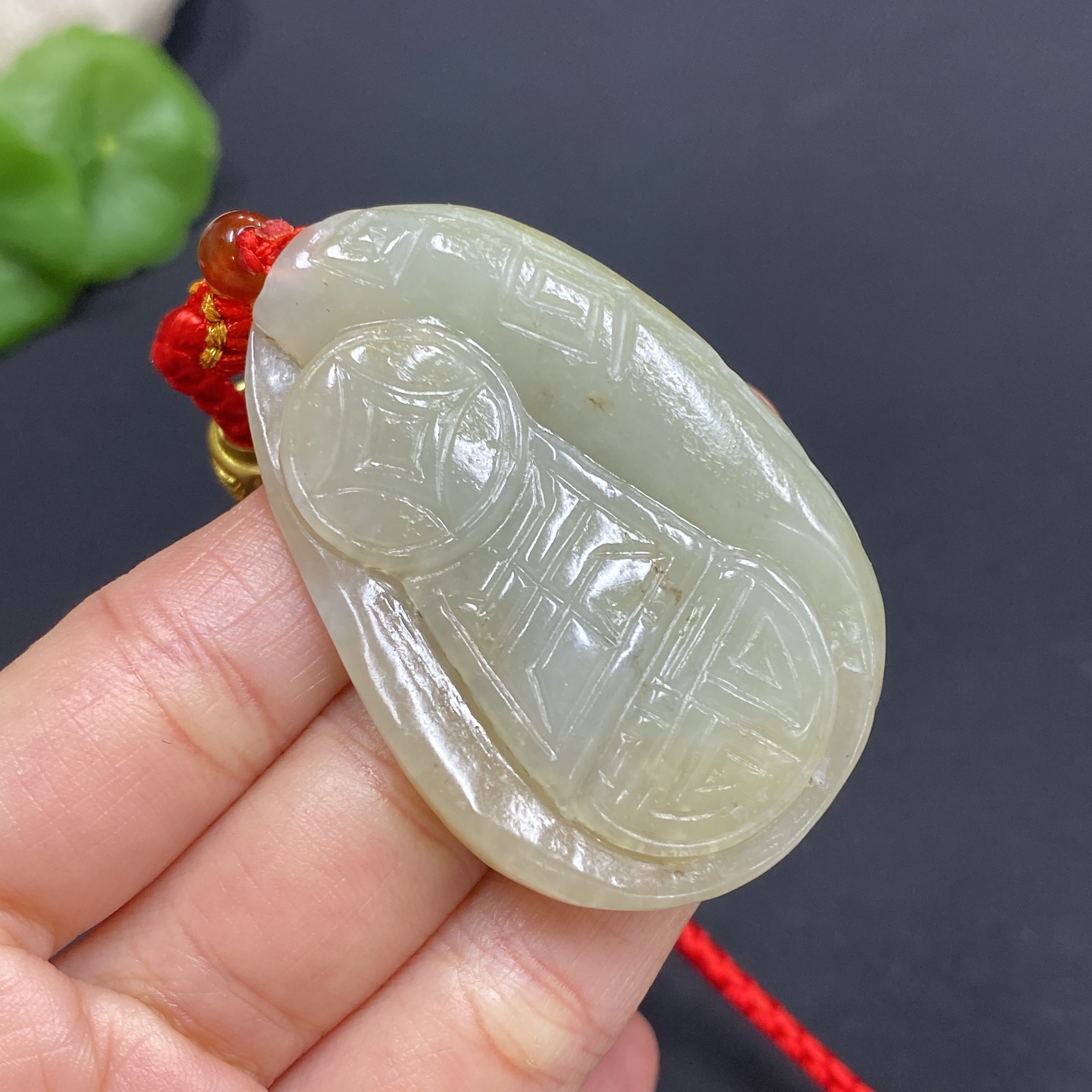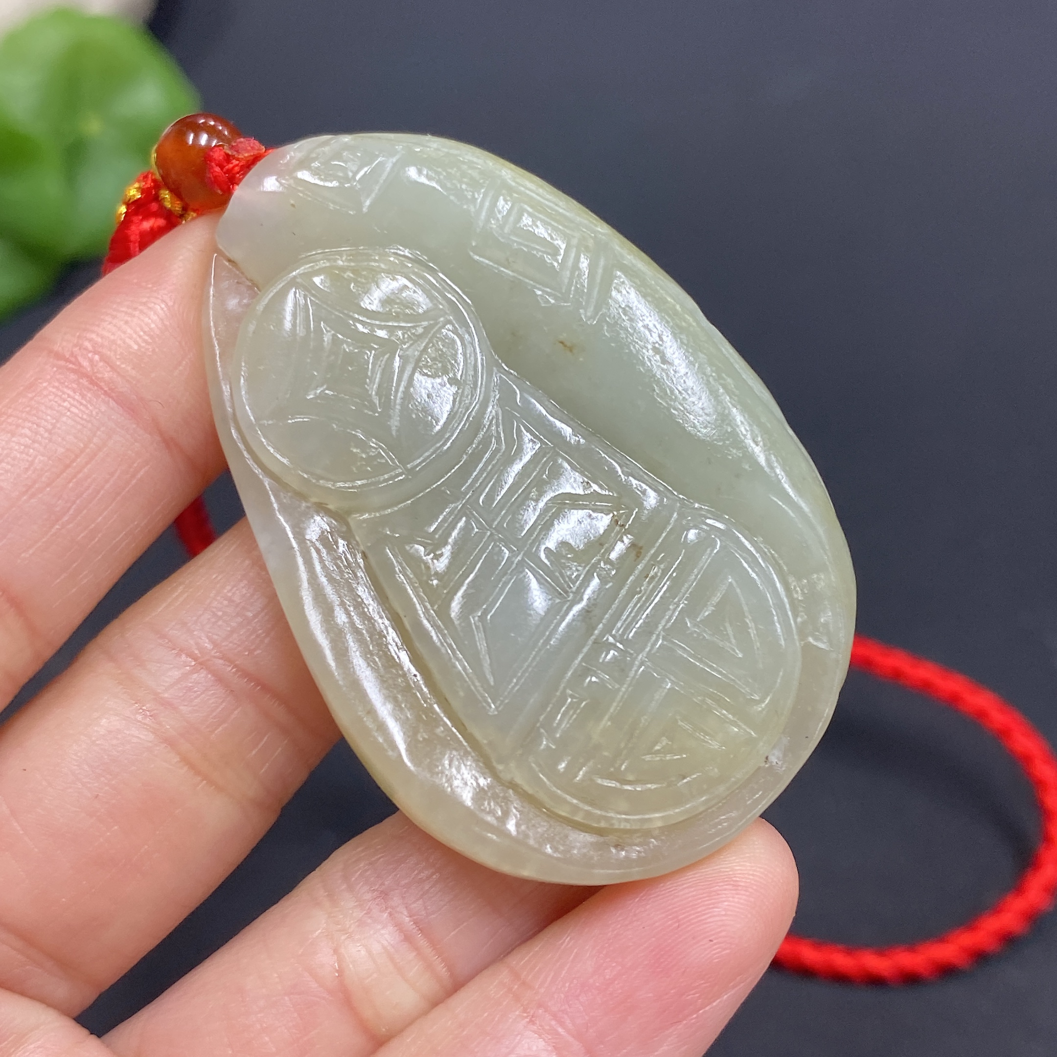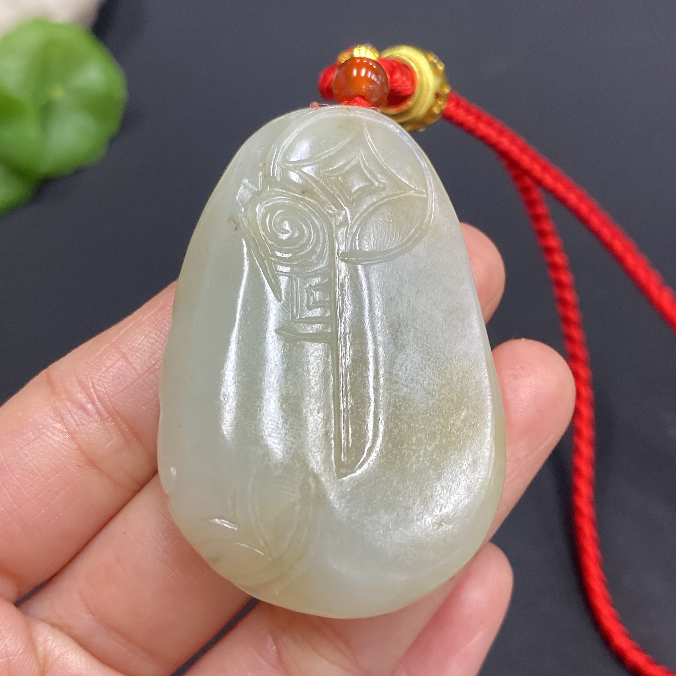 Hetian Jade Handheld Piece Antique-style Piece Total Weight Approx. (with rope) 36.2g Undetermined Skin Color Origin