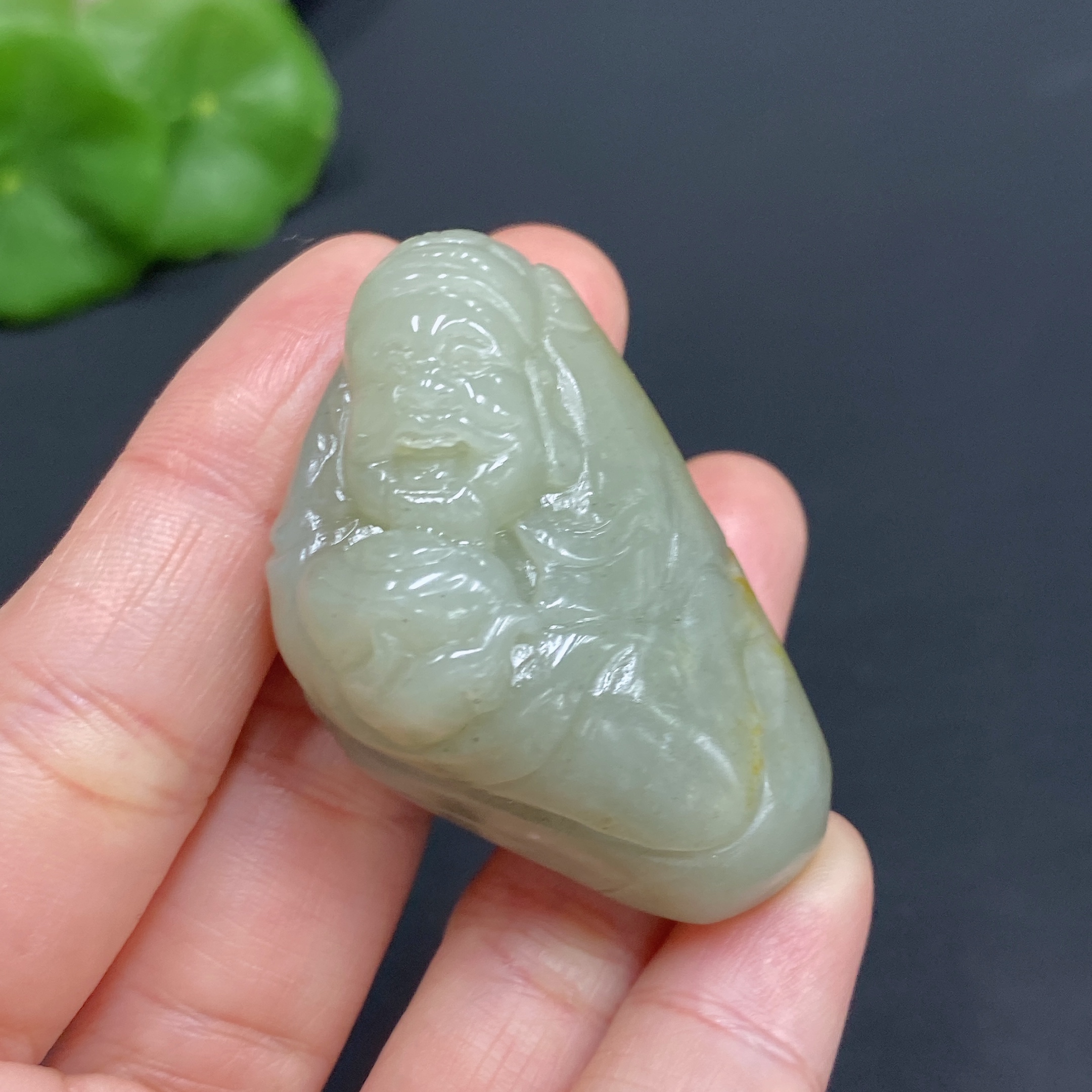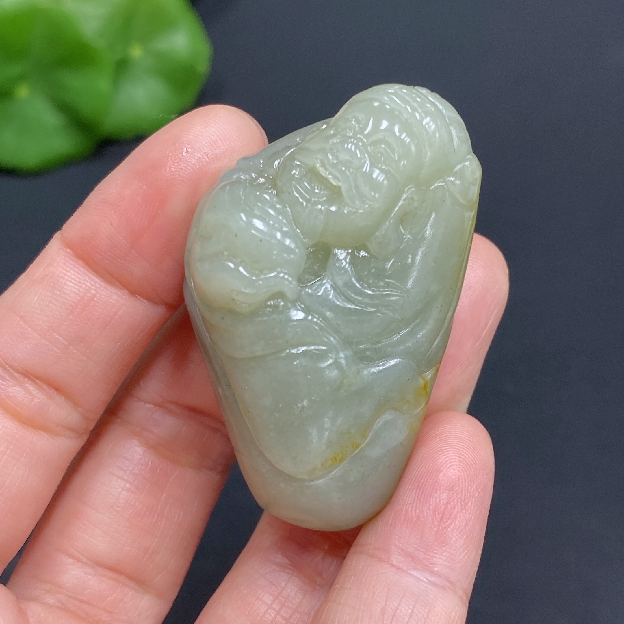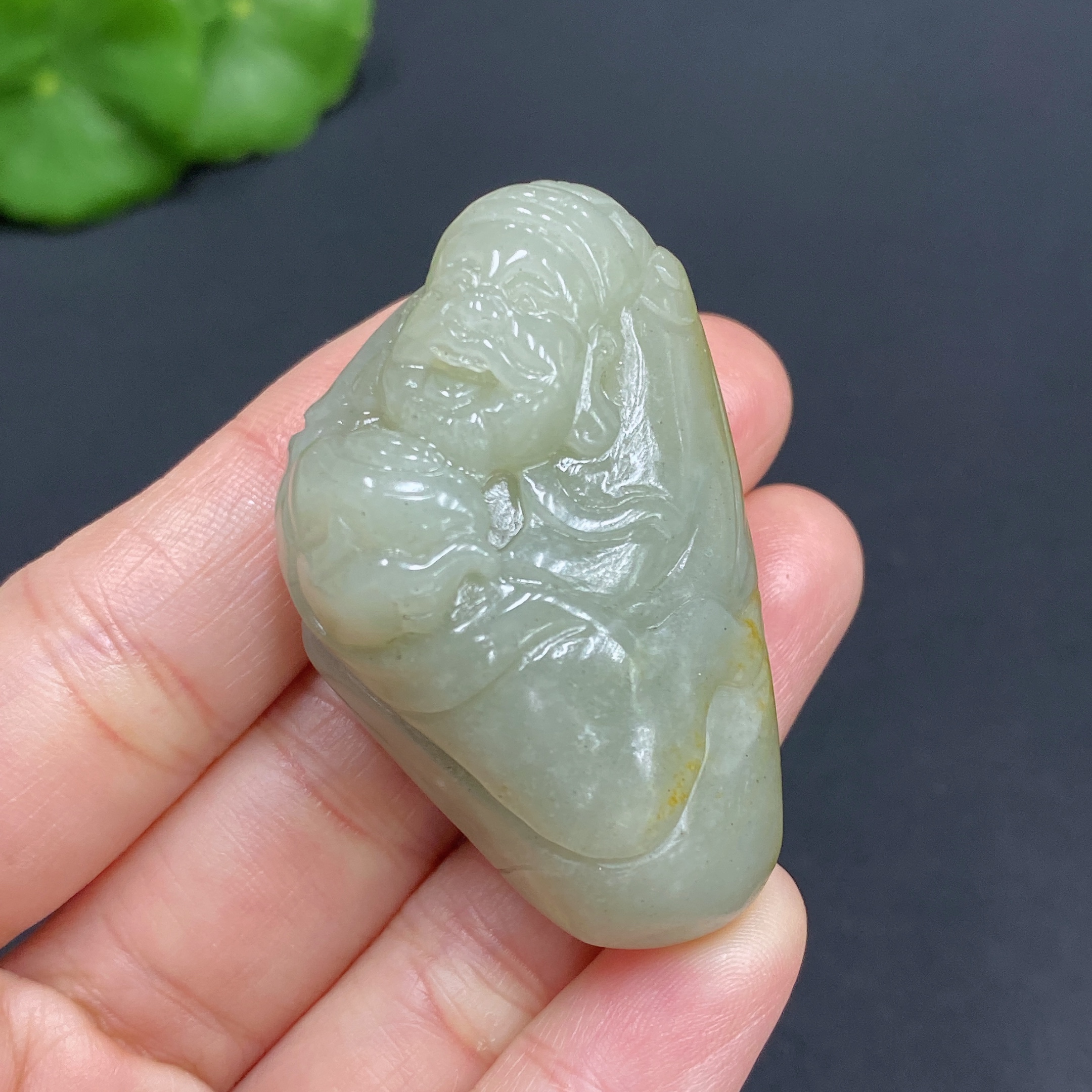 Hetian Jade Pendant, God of Wealth, Total Weight Approx. 36.4g, Undetermined Skin Color Origin