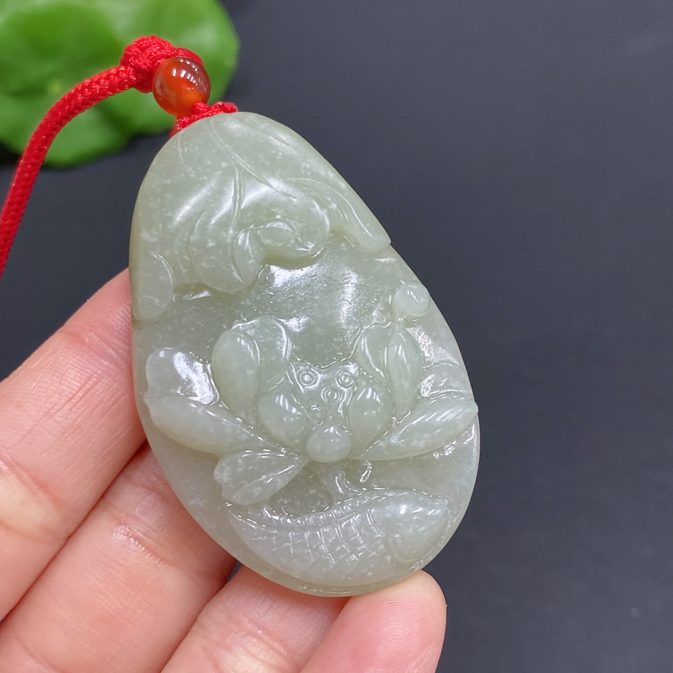 Hetian Jade Pendant Lotus Fish
