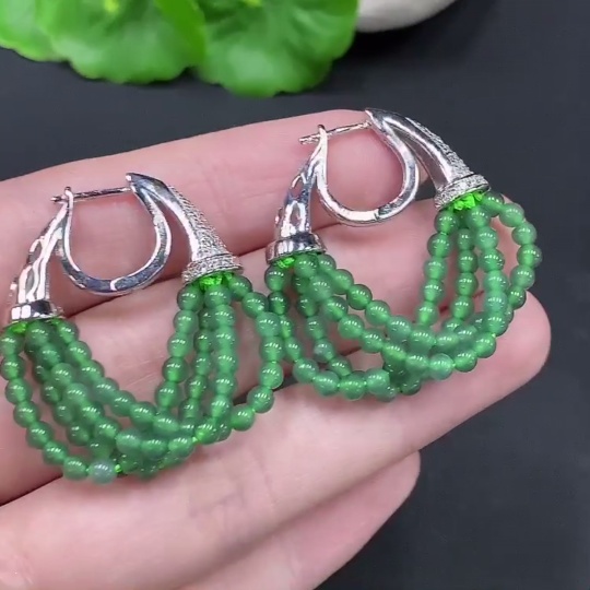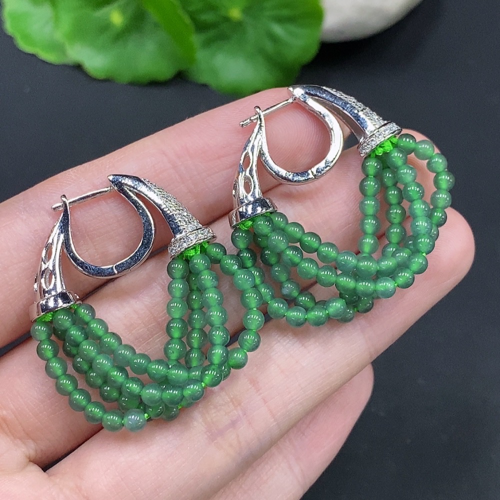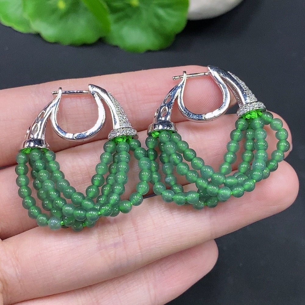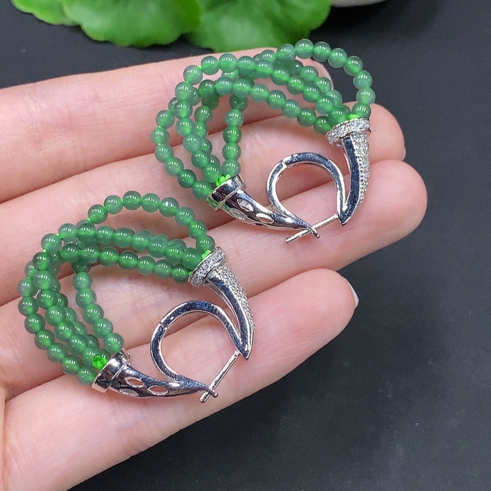 Jadeite Single Bead Inlaid Earrings Non-Gold Inlaid Total Weight Approx. 10.3g