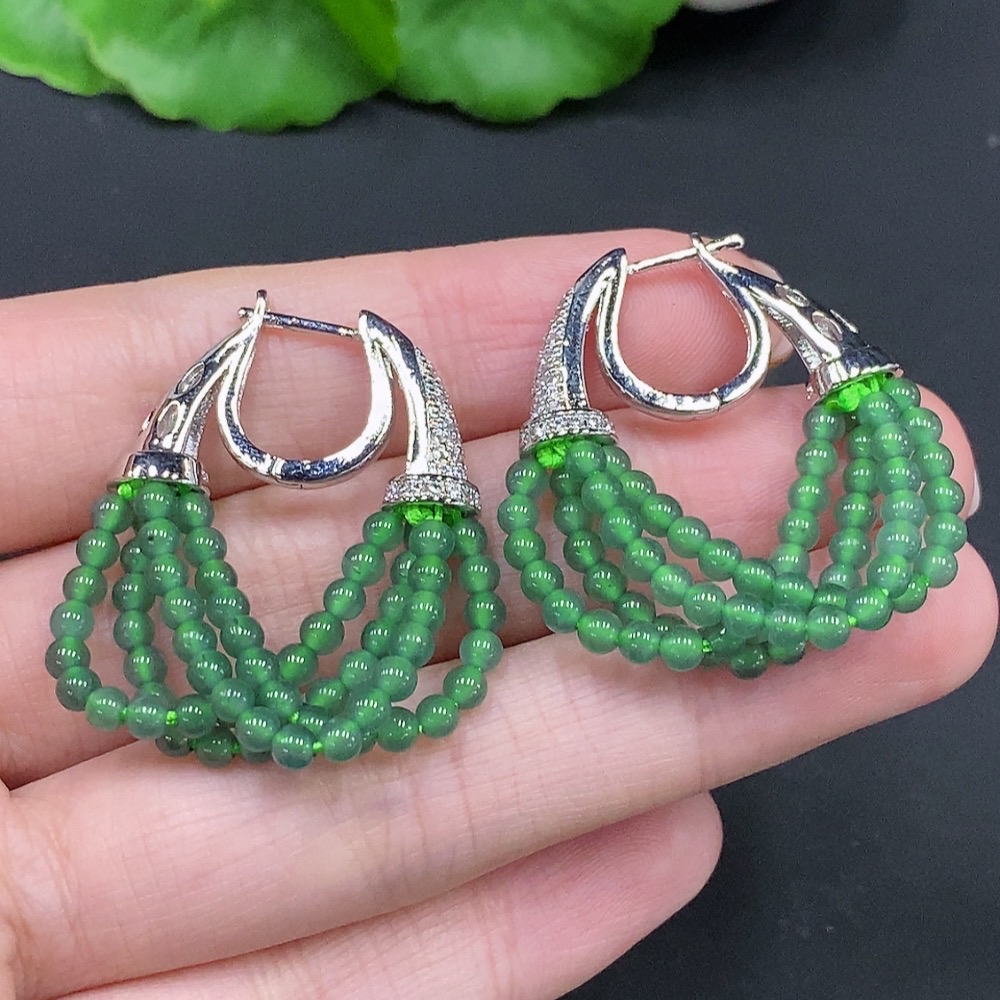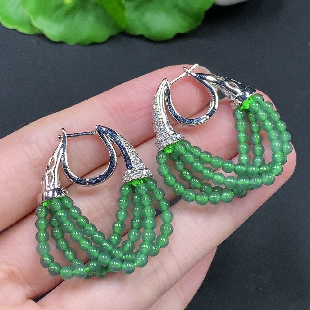 Jadeite Single Bead Inlaid Earrings Non-Gold Inlaid Total Product Weight Approximately 10.3 Grams