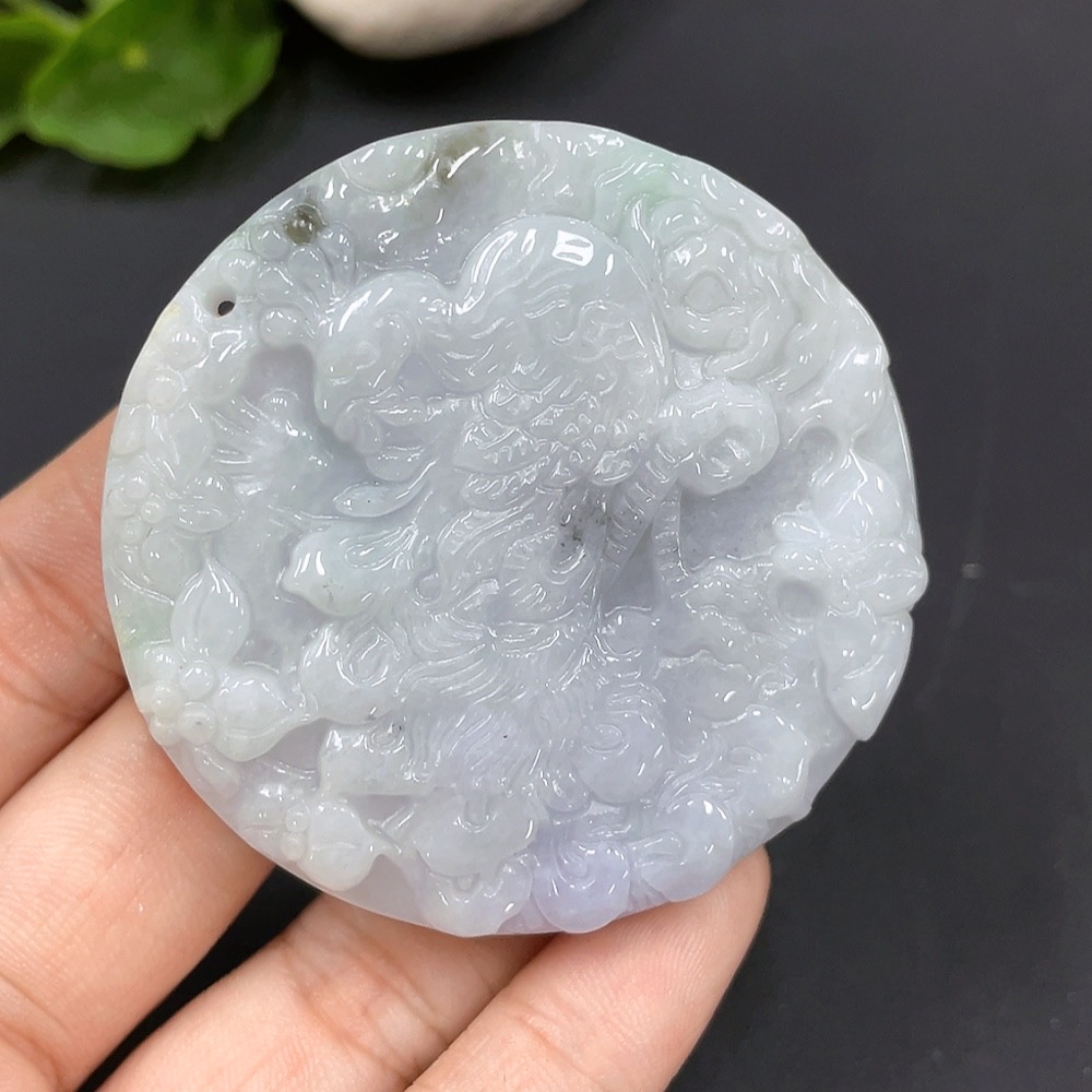 Trezaar - Jadeite Peacock Pendant Total Weight 58.622g
