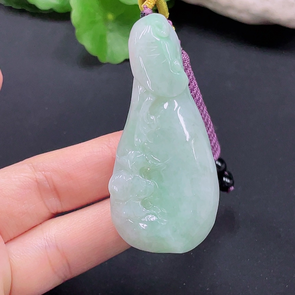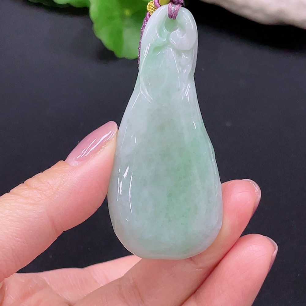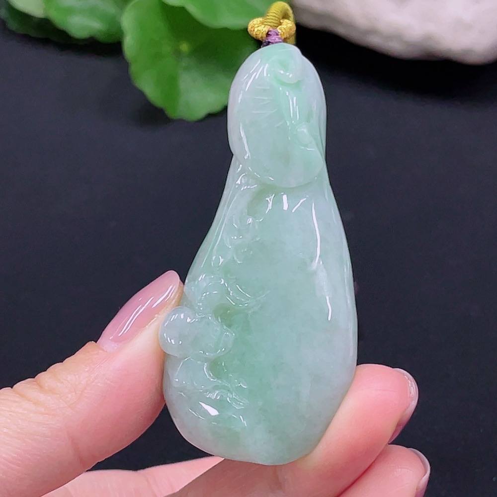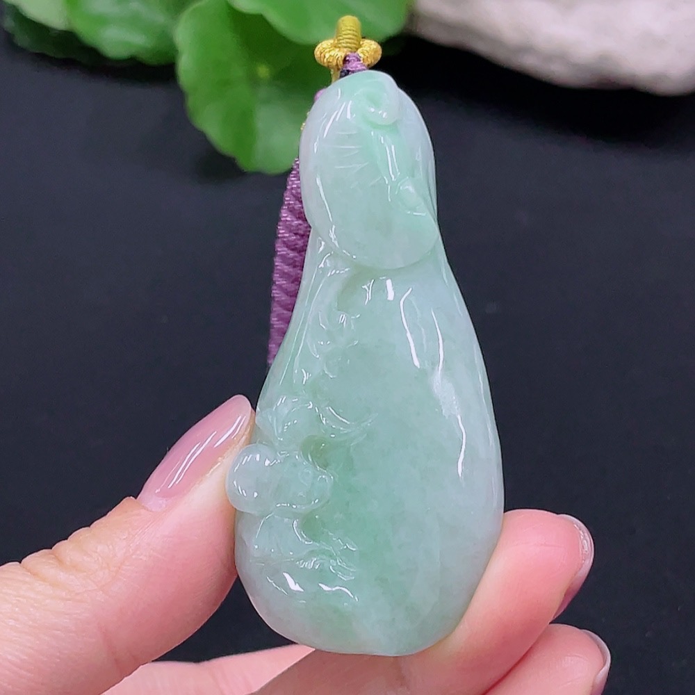 Jadeite Auspicious Gourd Pendant, Total Weight 45.962g