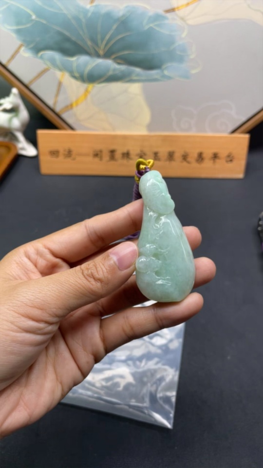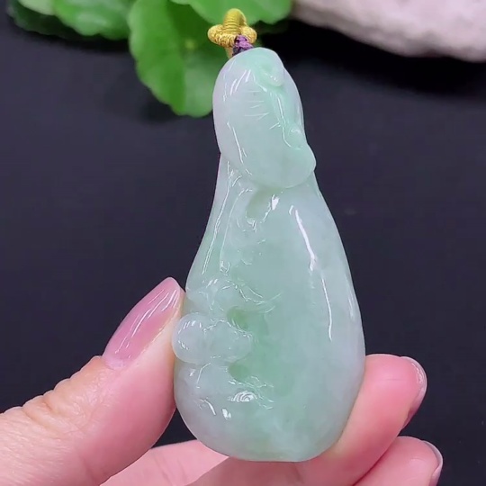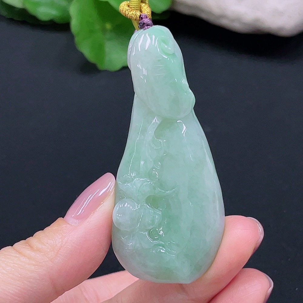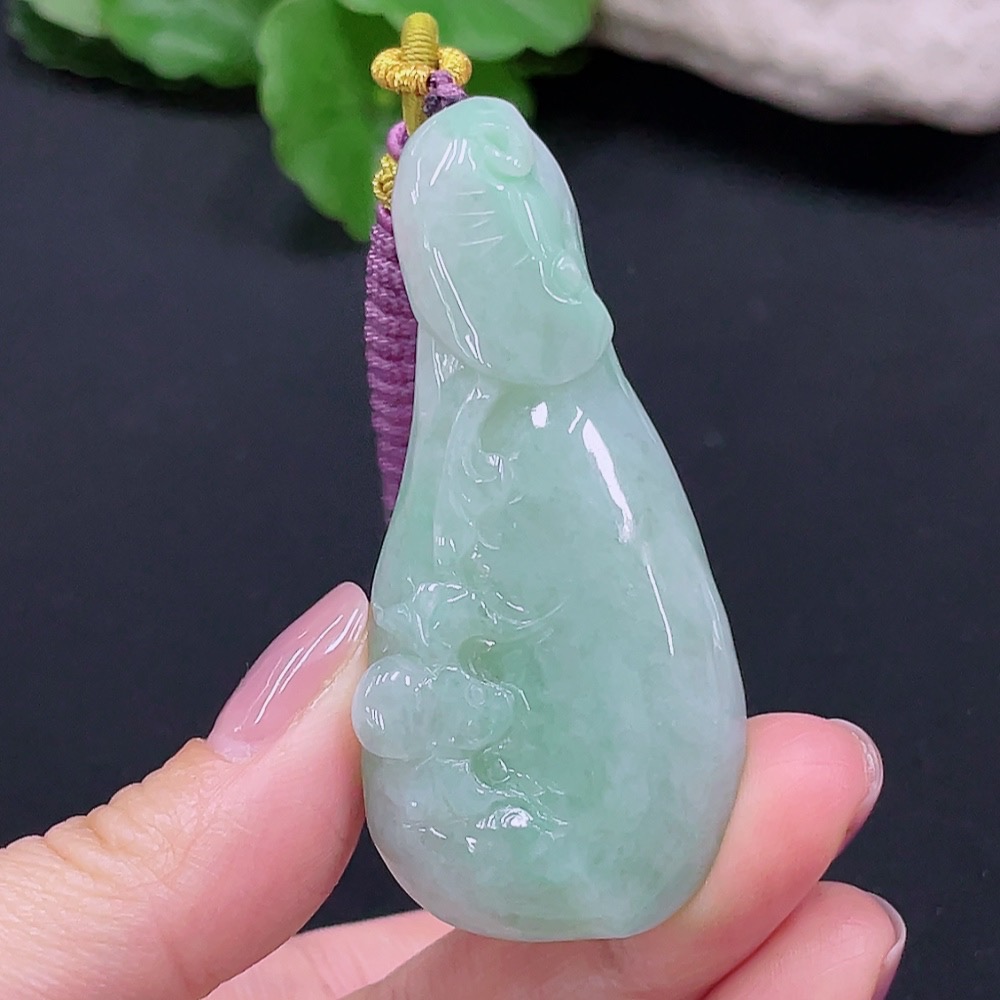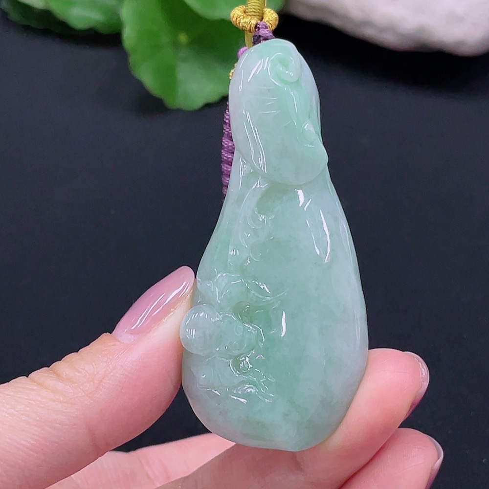 Jadeite Auspicious Gourd Pendant, Total Weight 45.962g