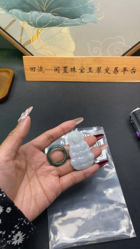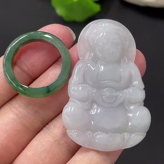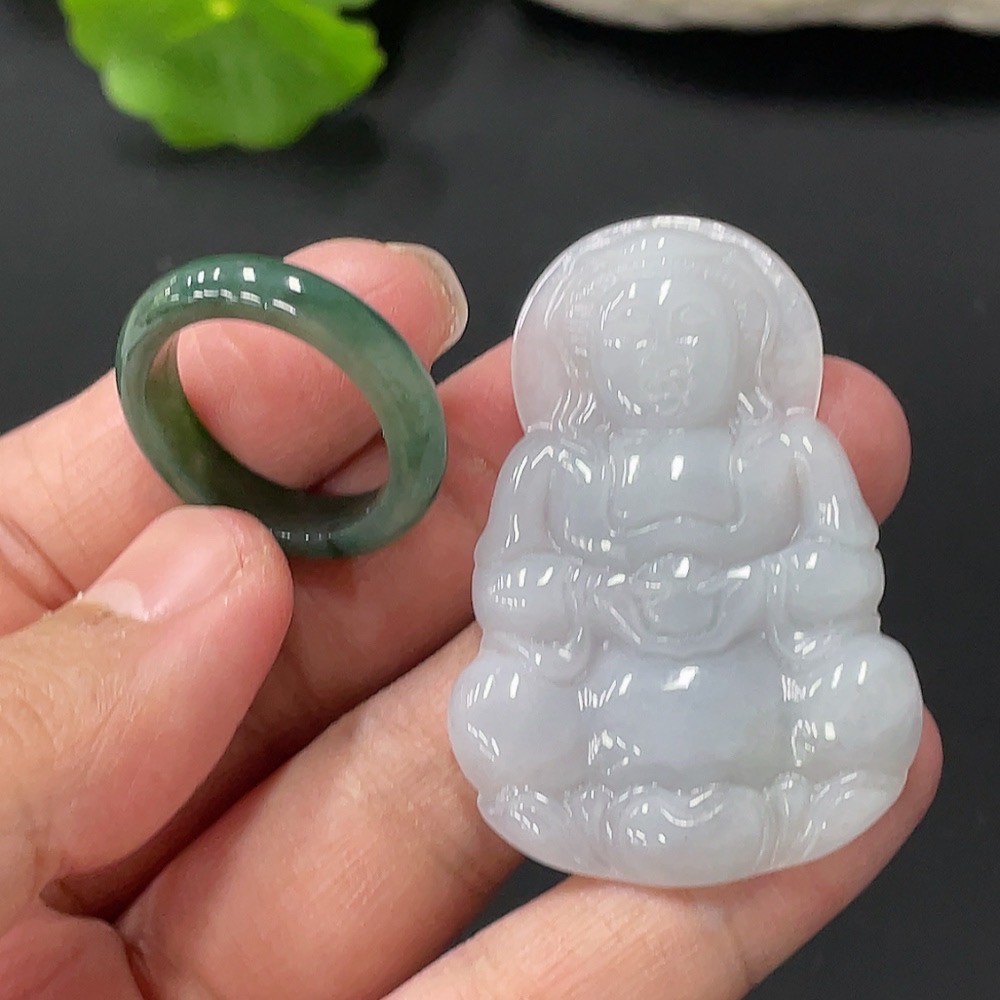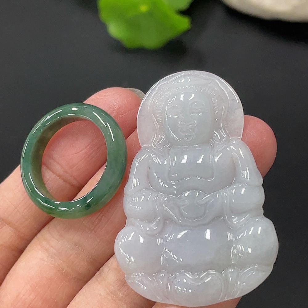 Jadeite Guanyin Pendant + Ring Size 17.5