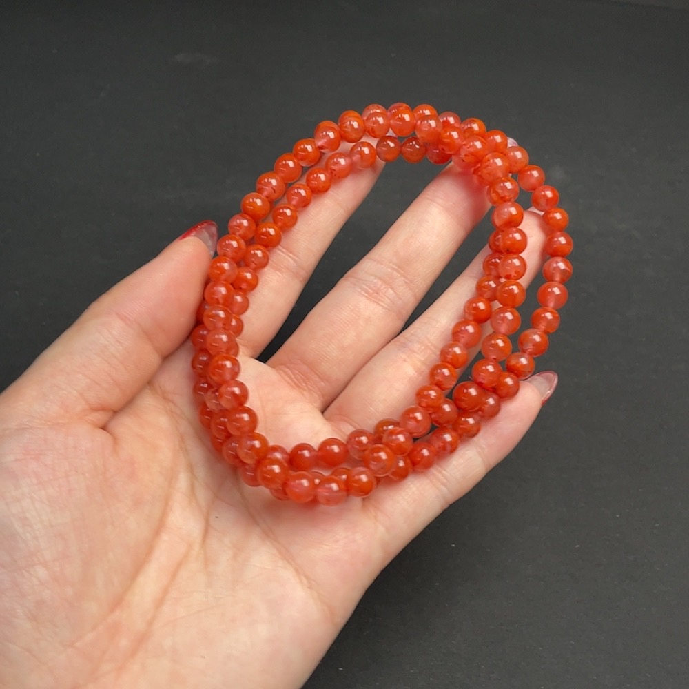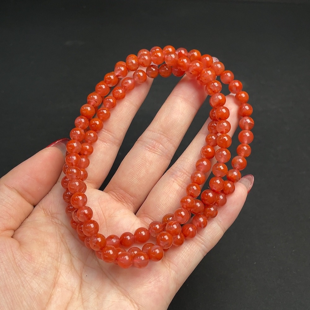 South Red Agate Bead Necklace Total Weight Approx.38g Size About 6.3mm