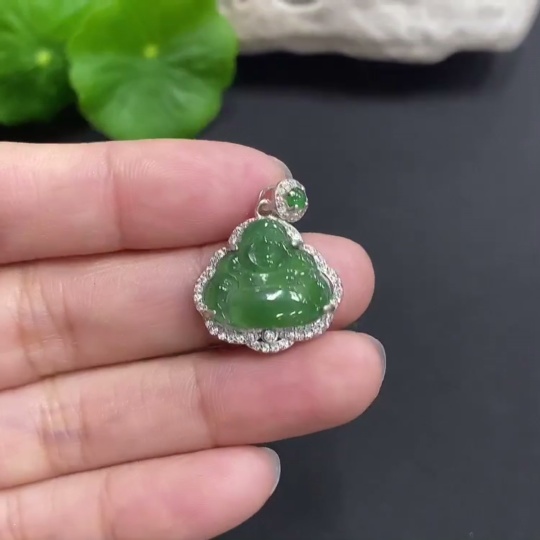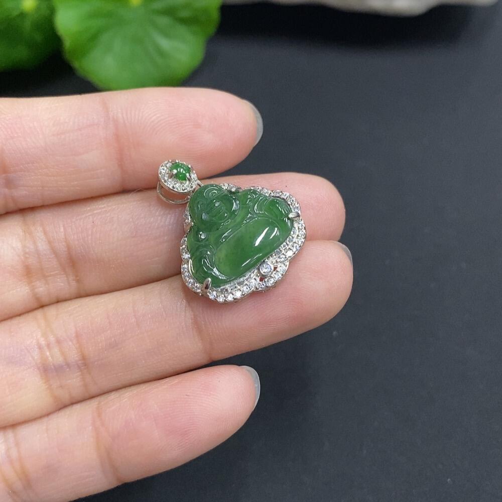 Jadeite Buddha Pendant with Inlay, Cracks Present, Non-Gold Inlay