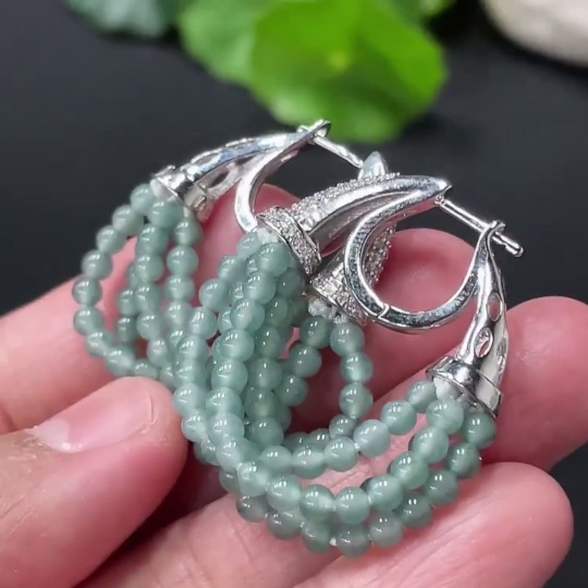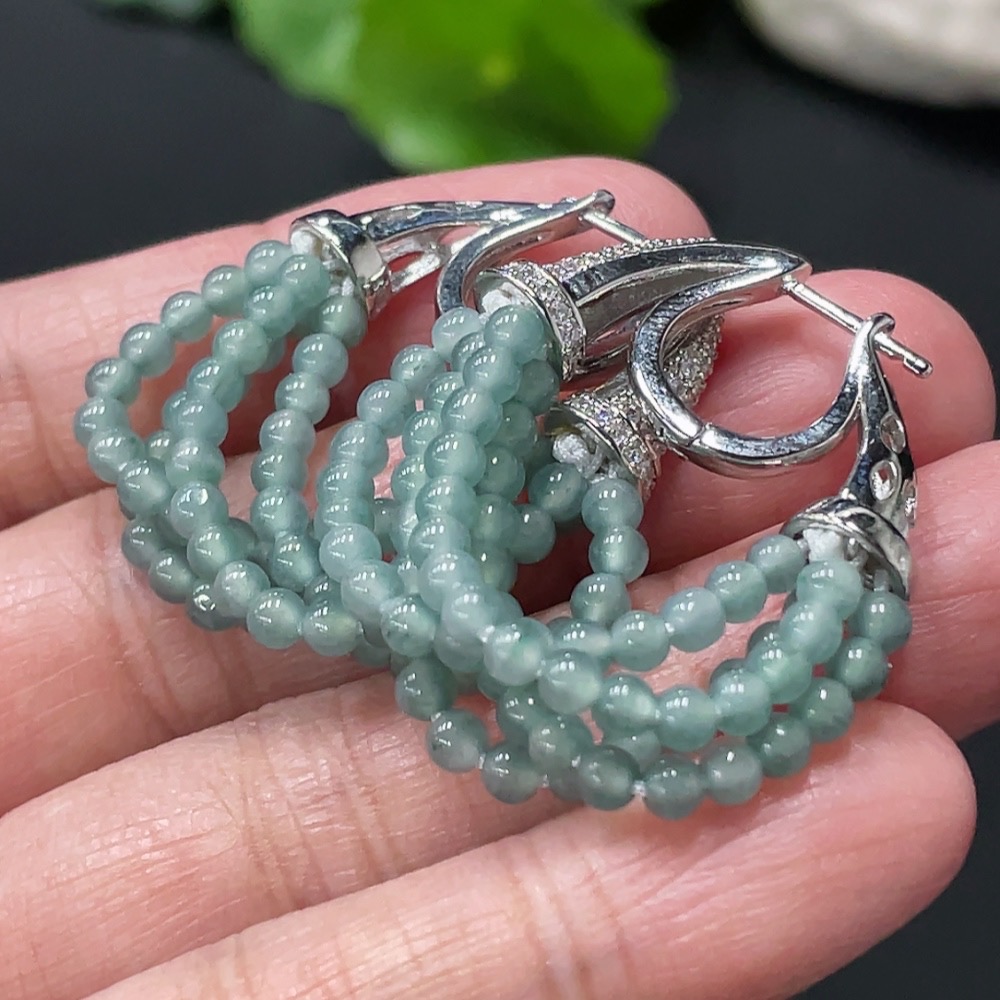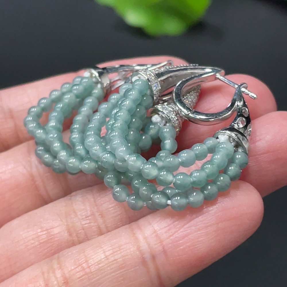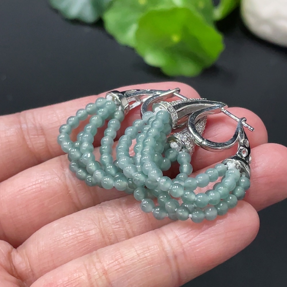 Jadeite Bead Inlaid Ear Studs Pair, Non-Gold Setting, Approx. 3mm, Total Weight Approx. 10.31g