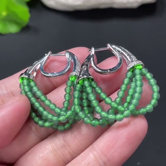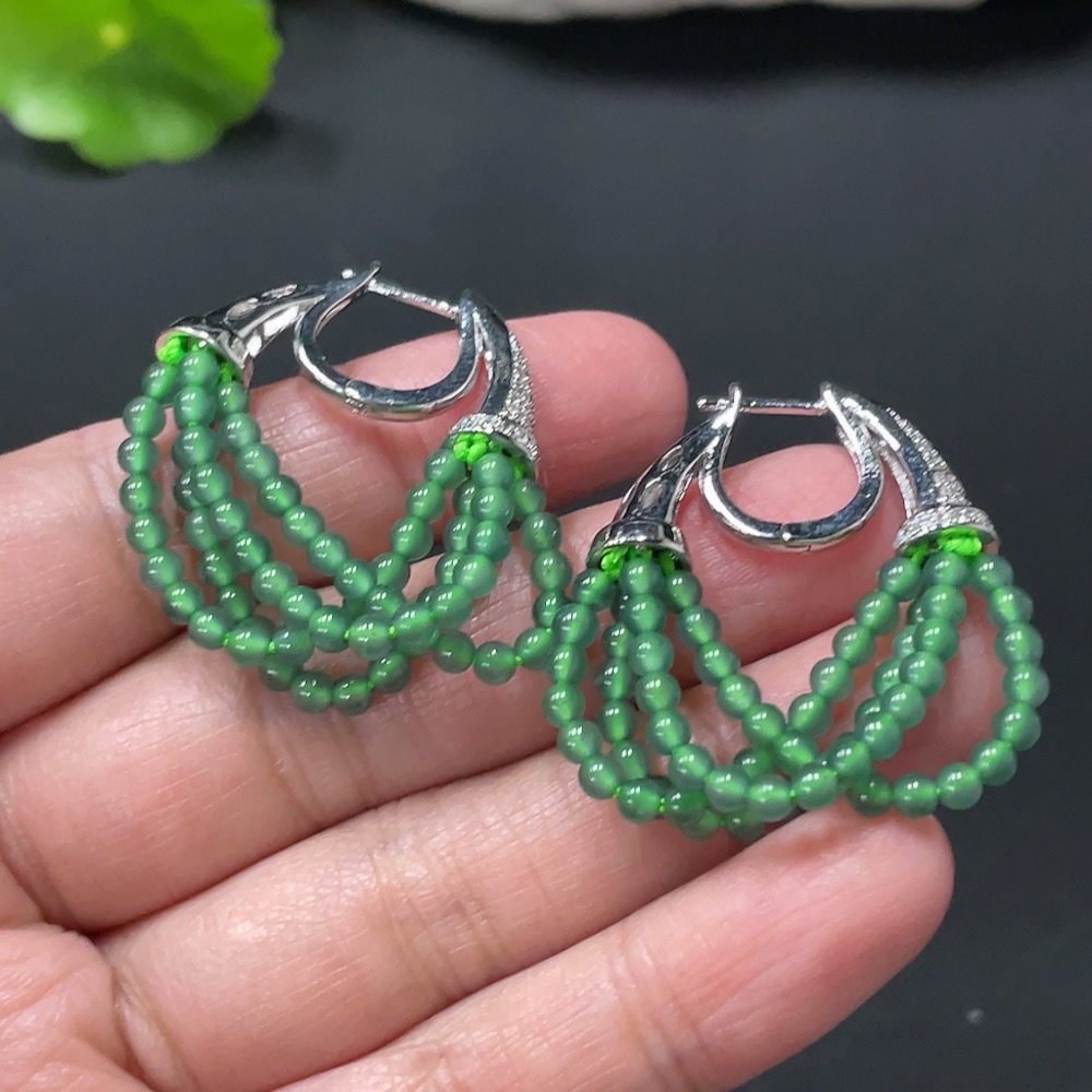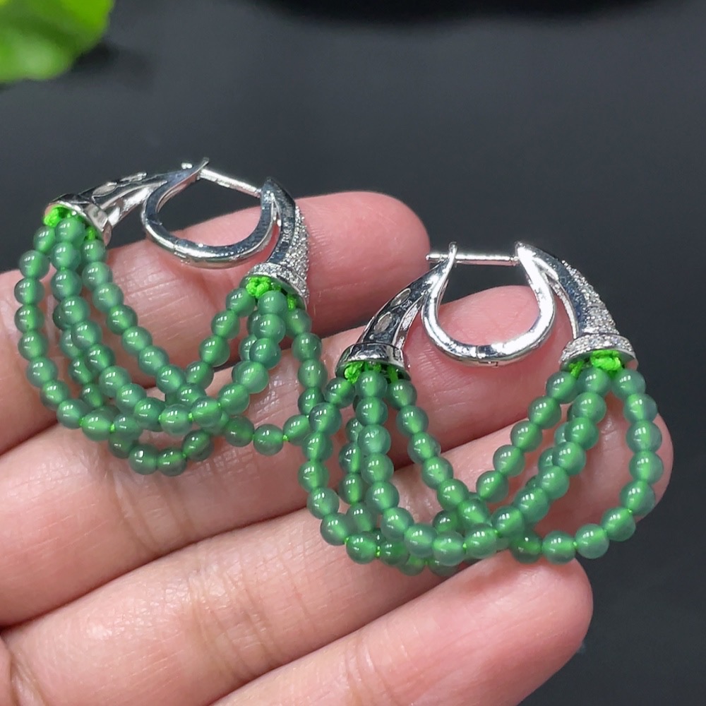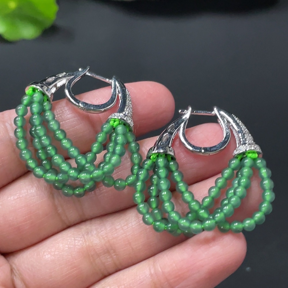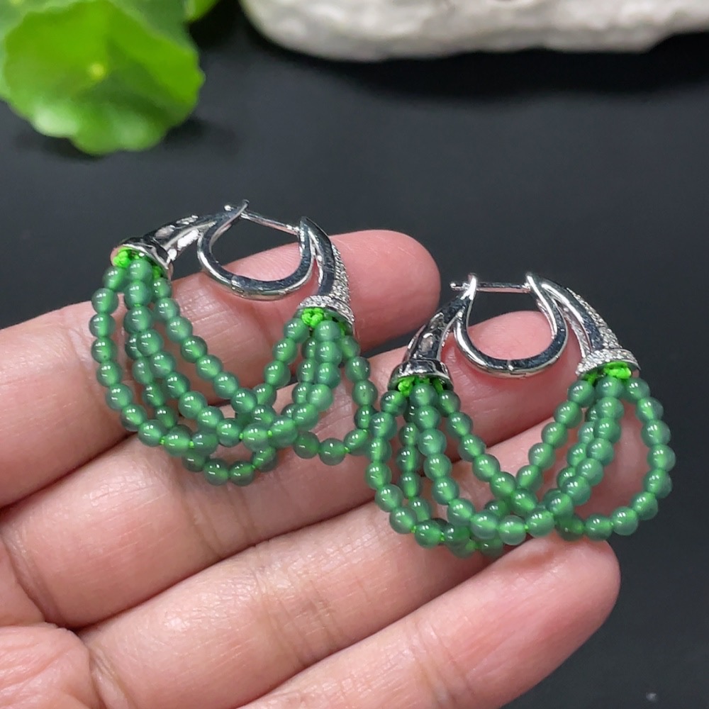 Jadeite Bead Inlaid Ear Studs Pair, Non-Gold Setting, Size Approx. 2.9mm, Total Weight Approx. 10.44g
