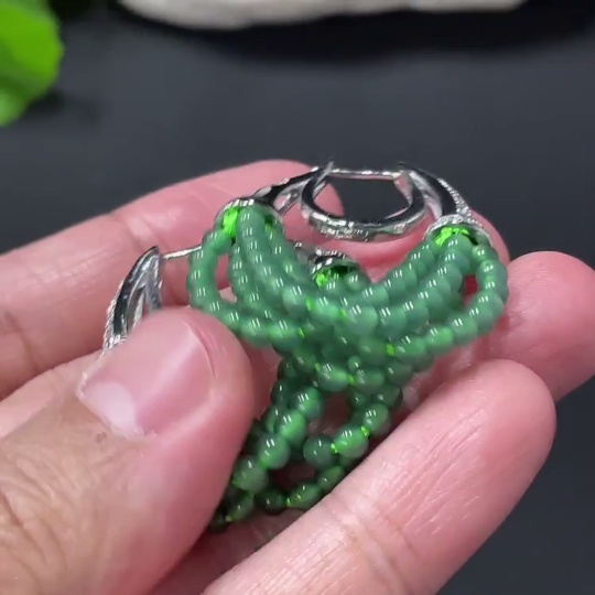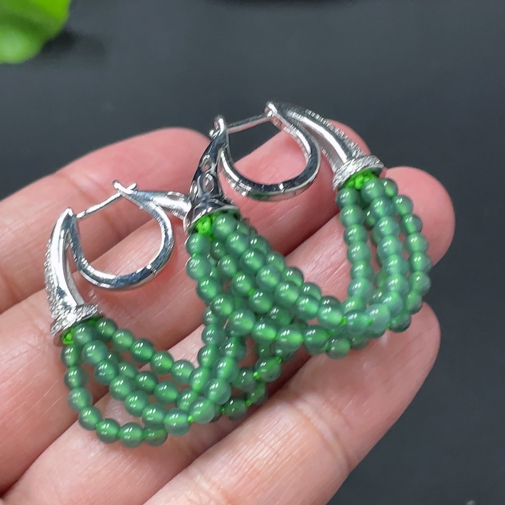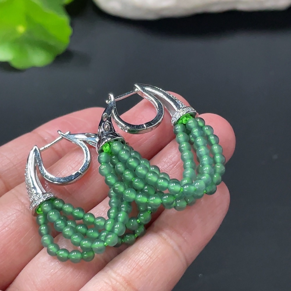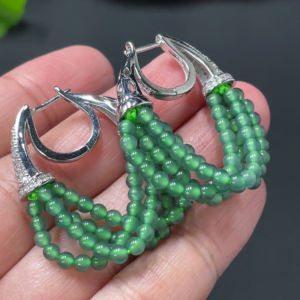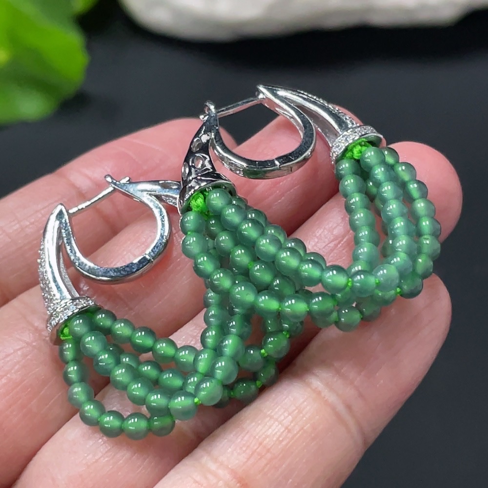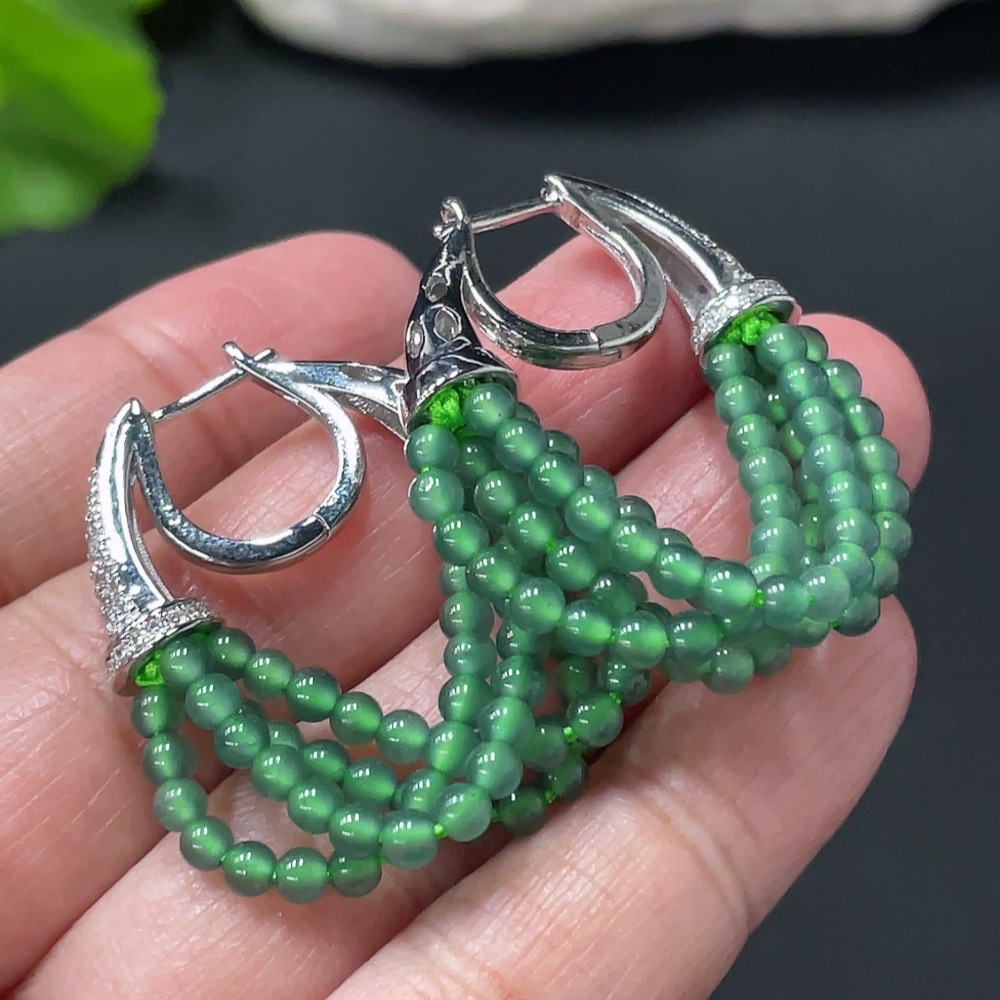 Jadeite Bead Inlaid Ear Studs, Non-Gold Setting, Approx. 3mm, Total Weight About 10.4g