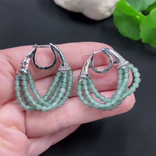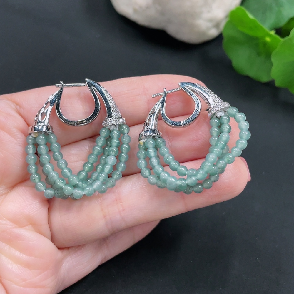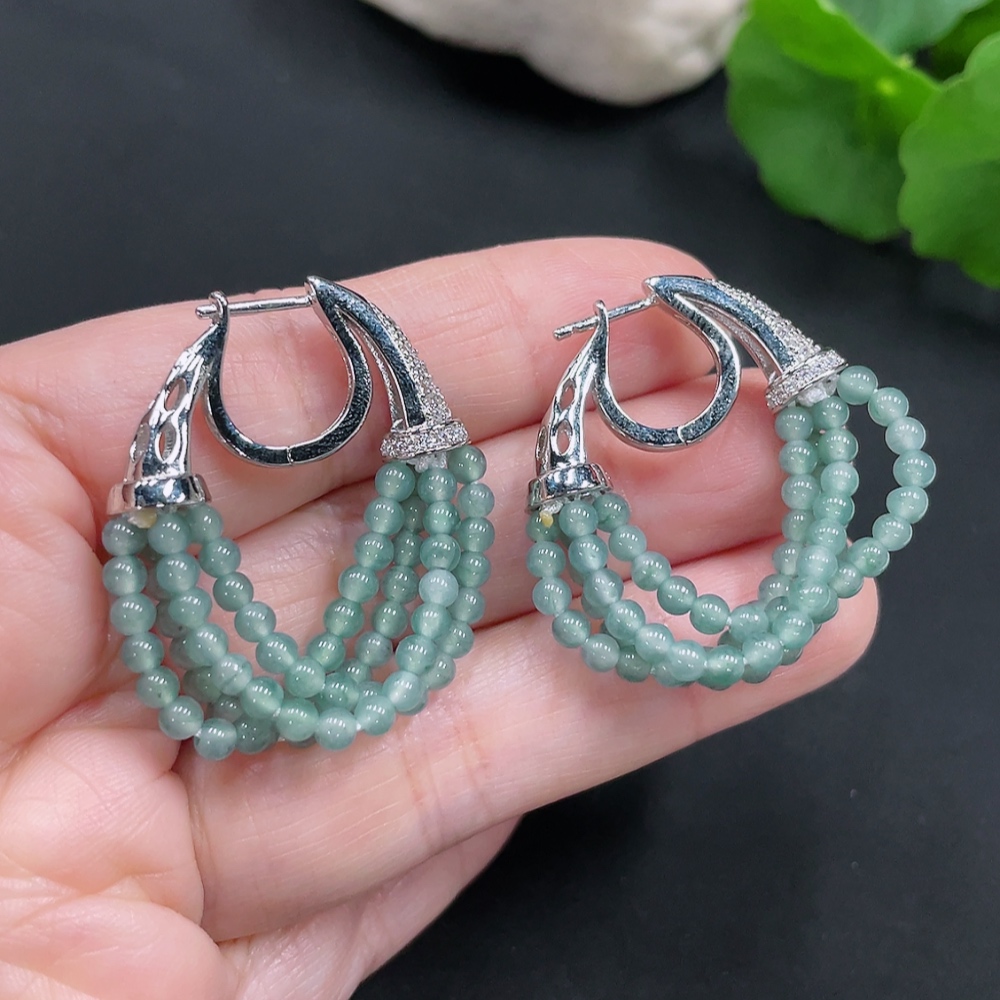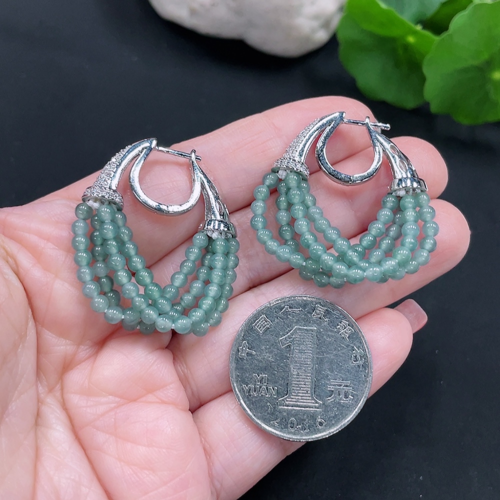 Jadeite Inlaid Earrings Card 2.8mm Non-Gold Total Weight Approx. 10.4g