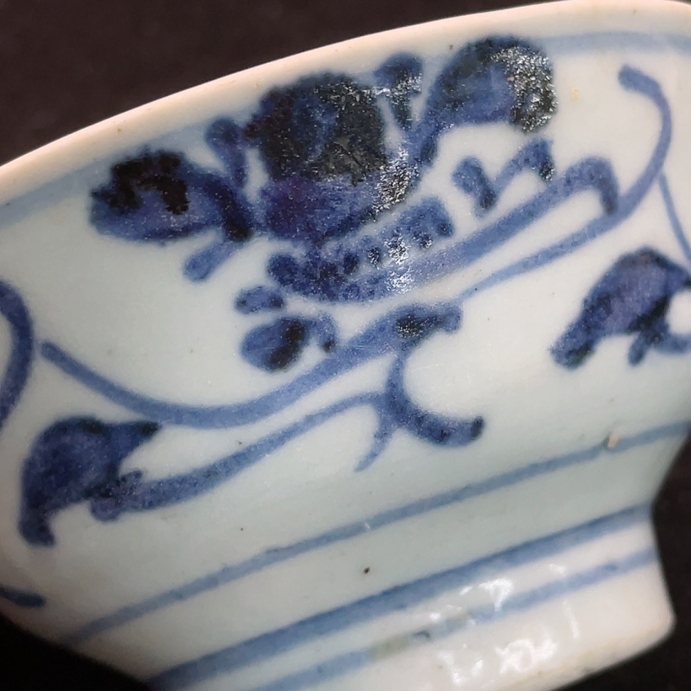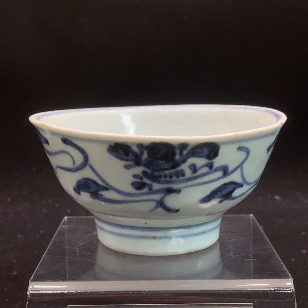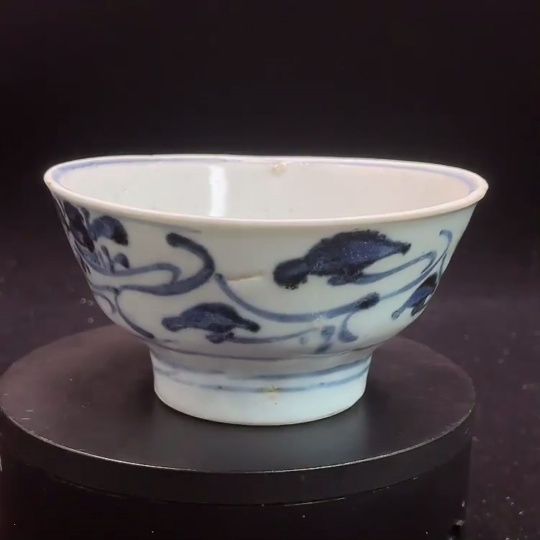 Ming Dynasty Blue and White Floral Bowl with Ceramic Chip