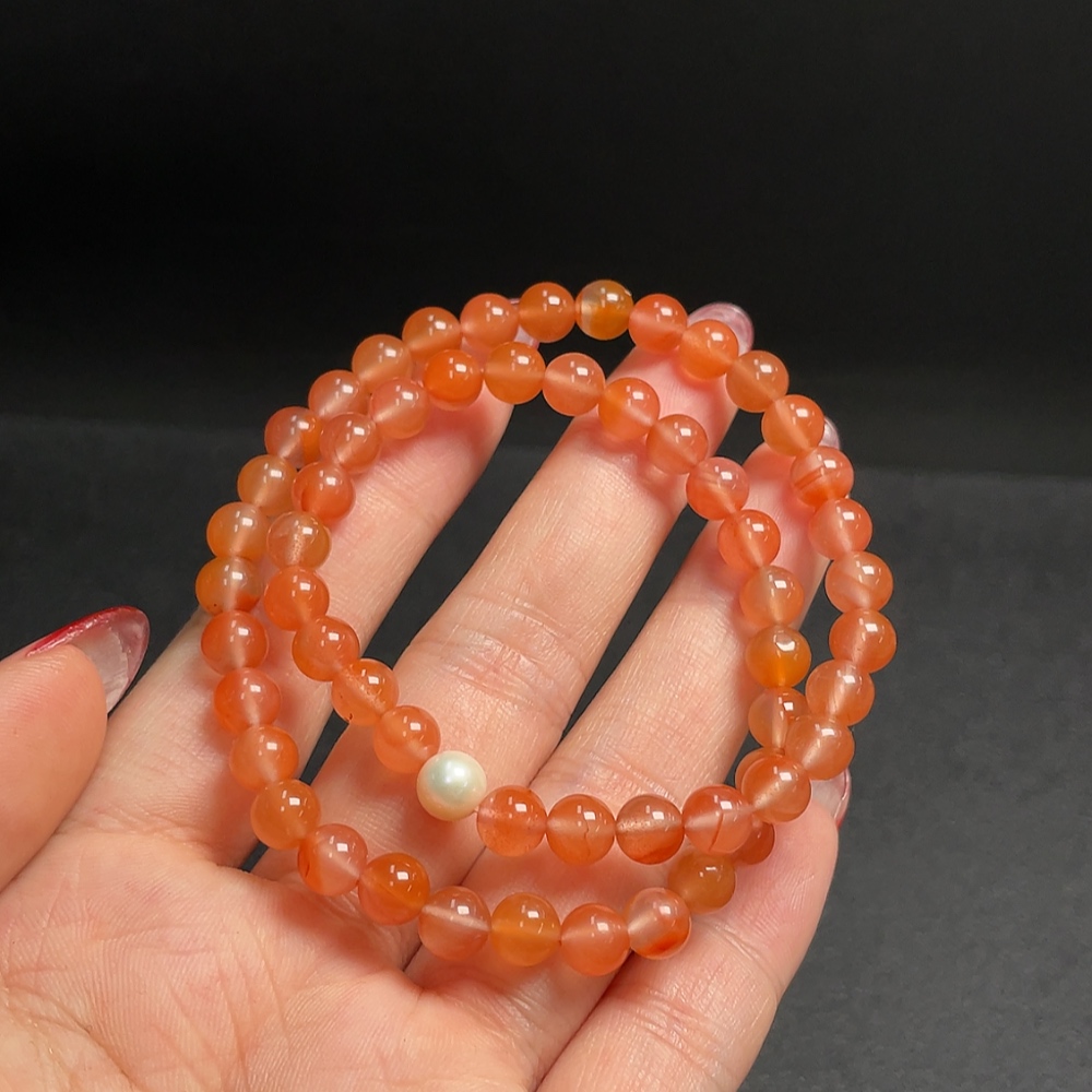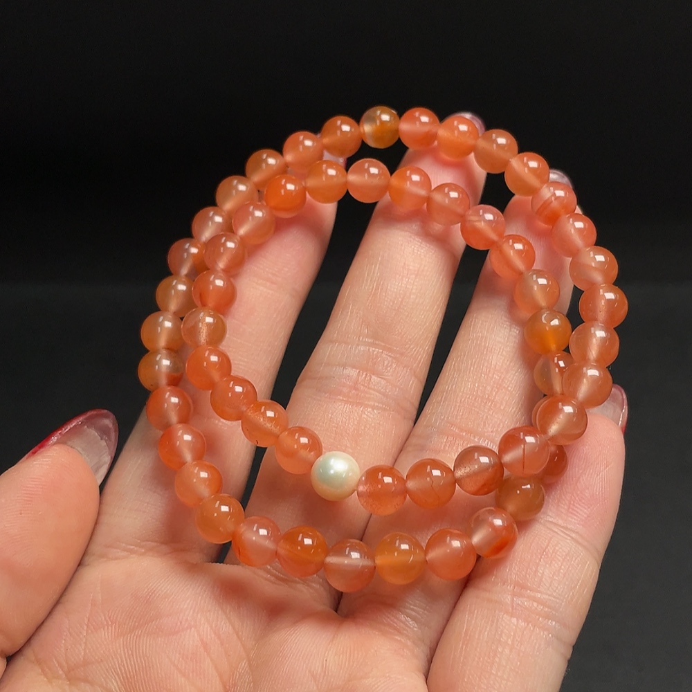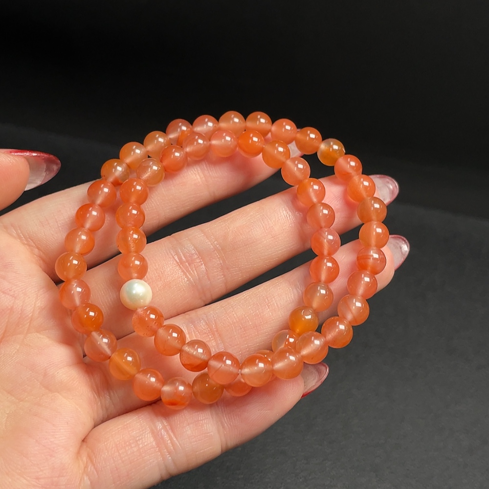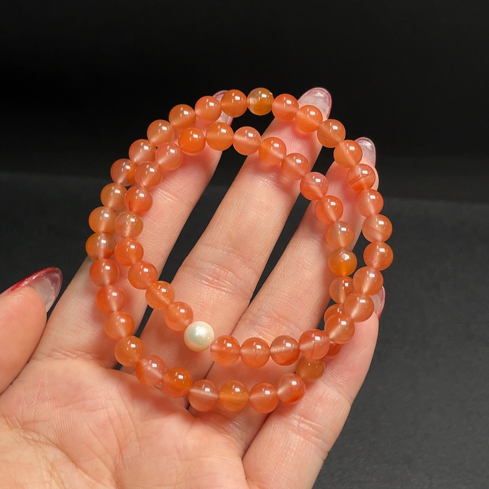 Red Agate Bead Necklace with Visible Organic Inclusions and Pearls, Total Weight Approx. 19.66g, Bead Size 6.2mm