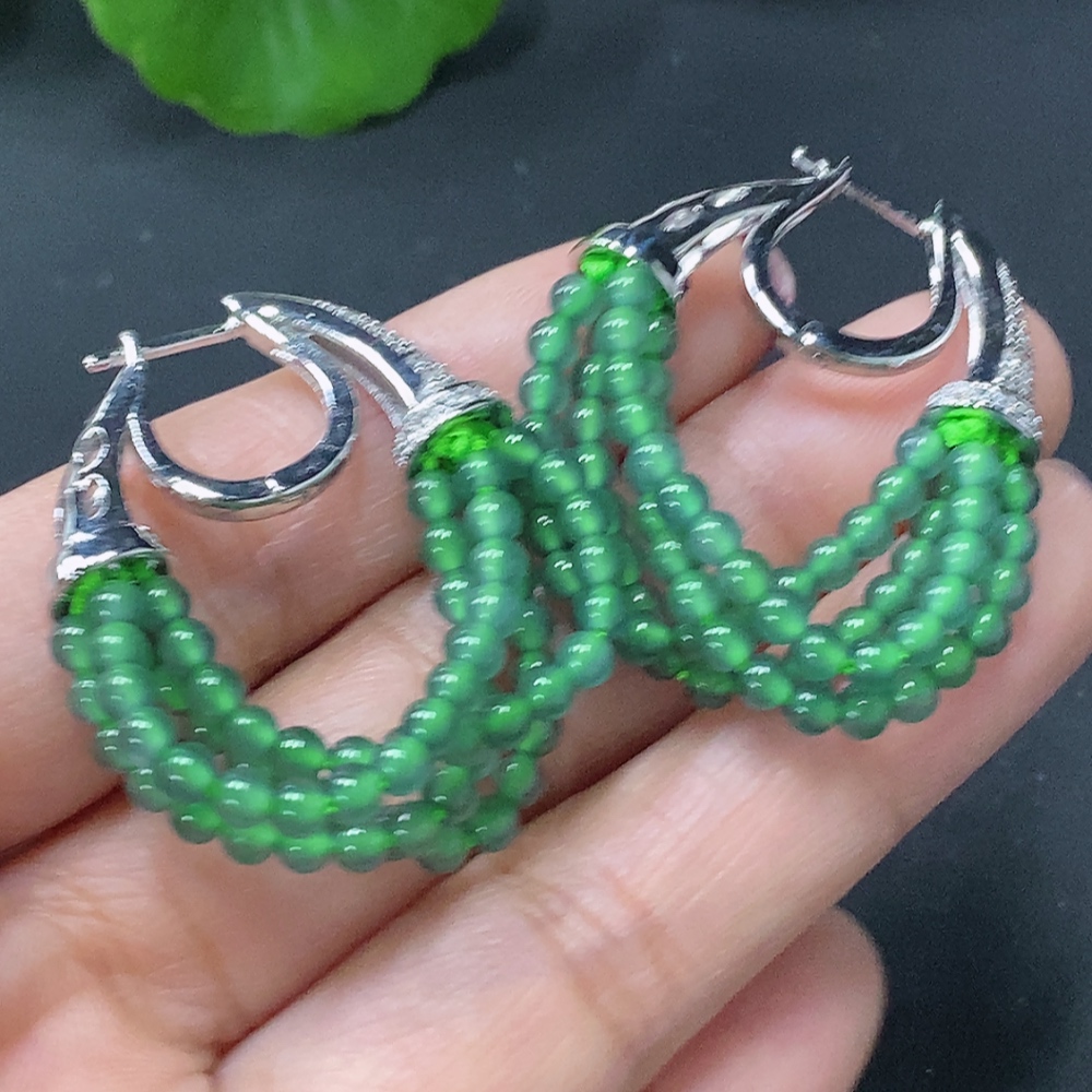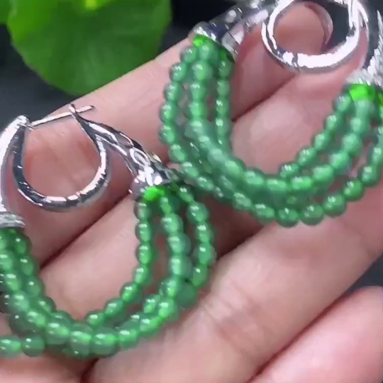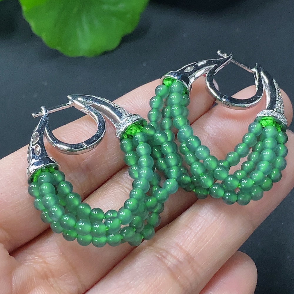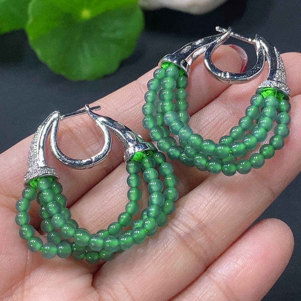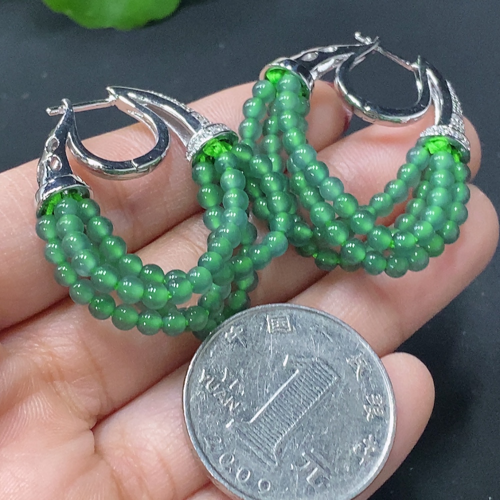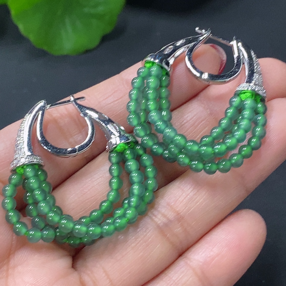 Jadeite Inlaid Earrings Non-Gold Total Weight Approx. 10.44g