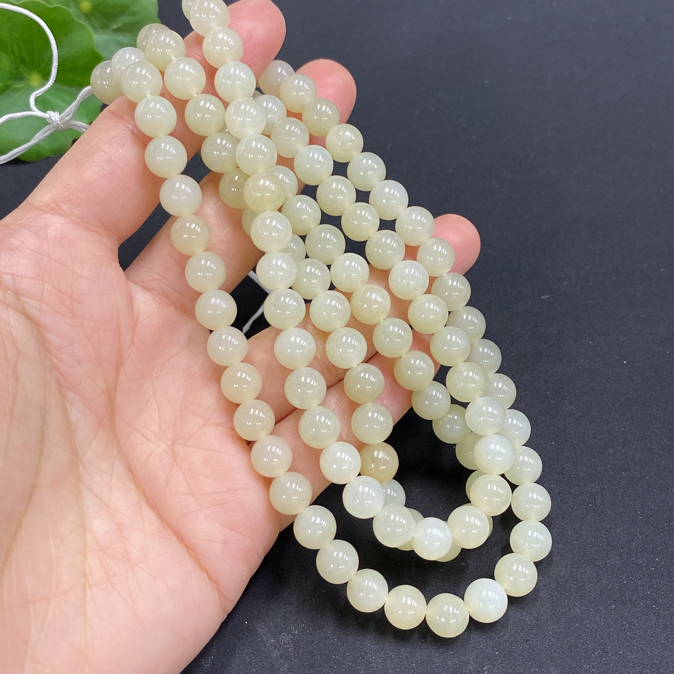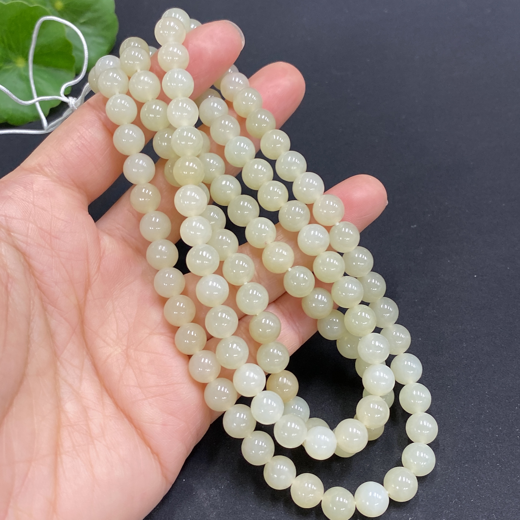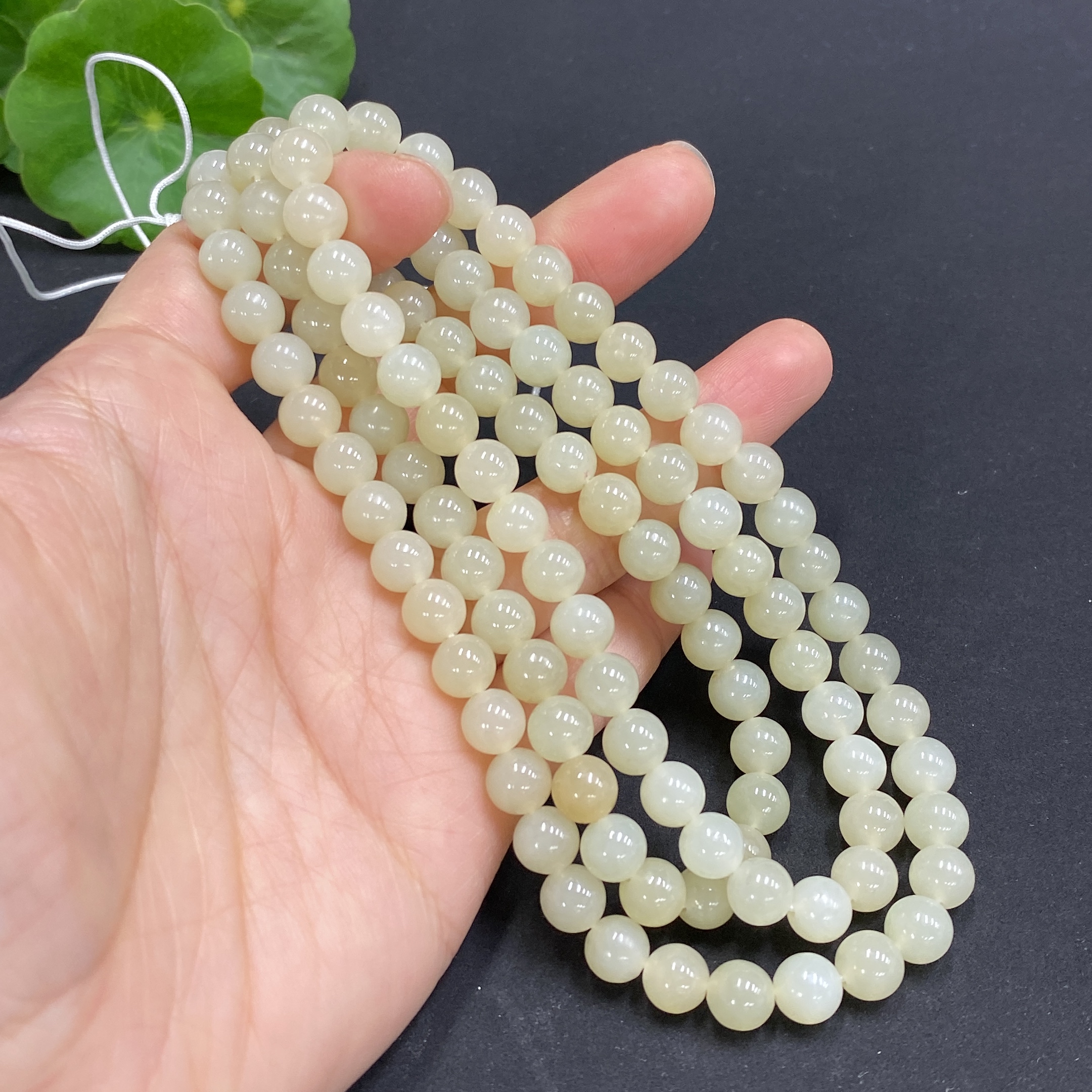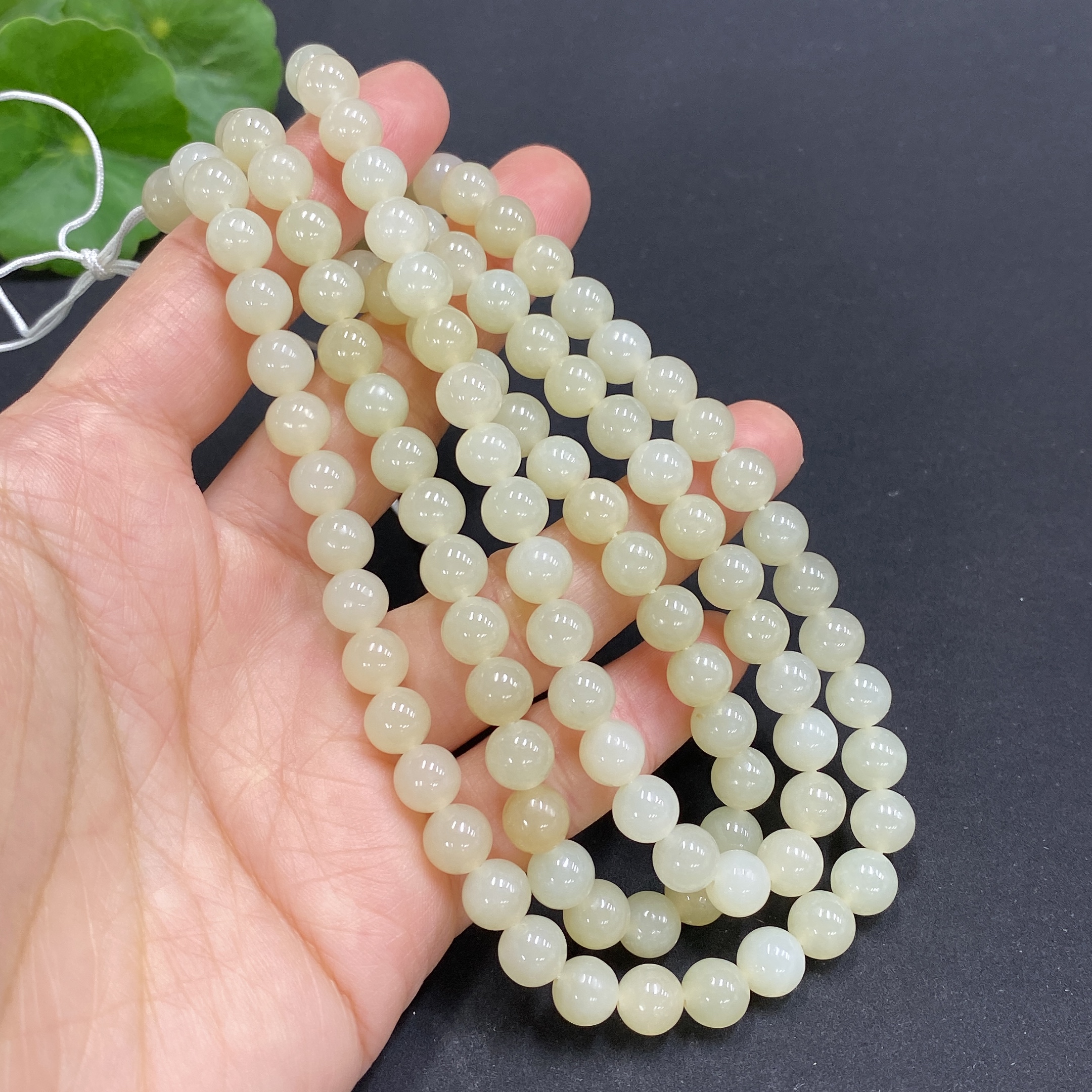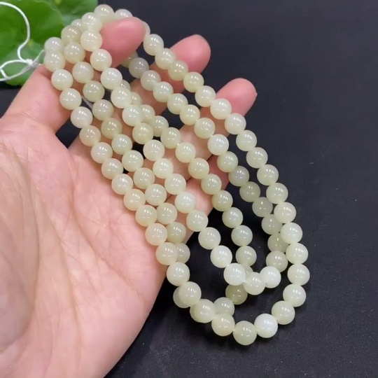 Hetian Jade Bead Necklace, Approx. 6.8mm, Total Weight Approx. 56.5g