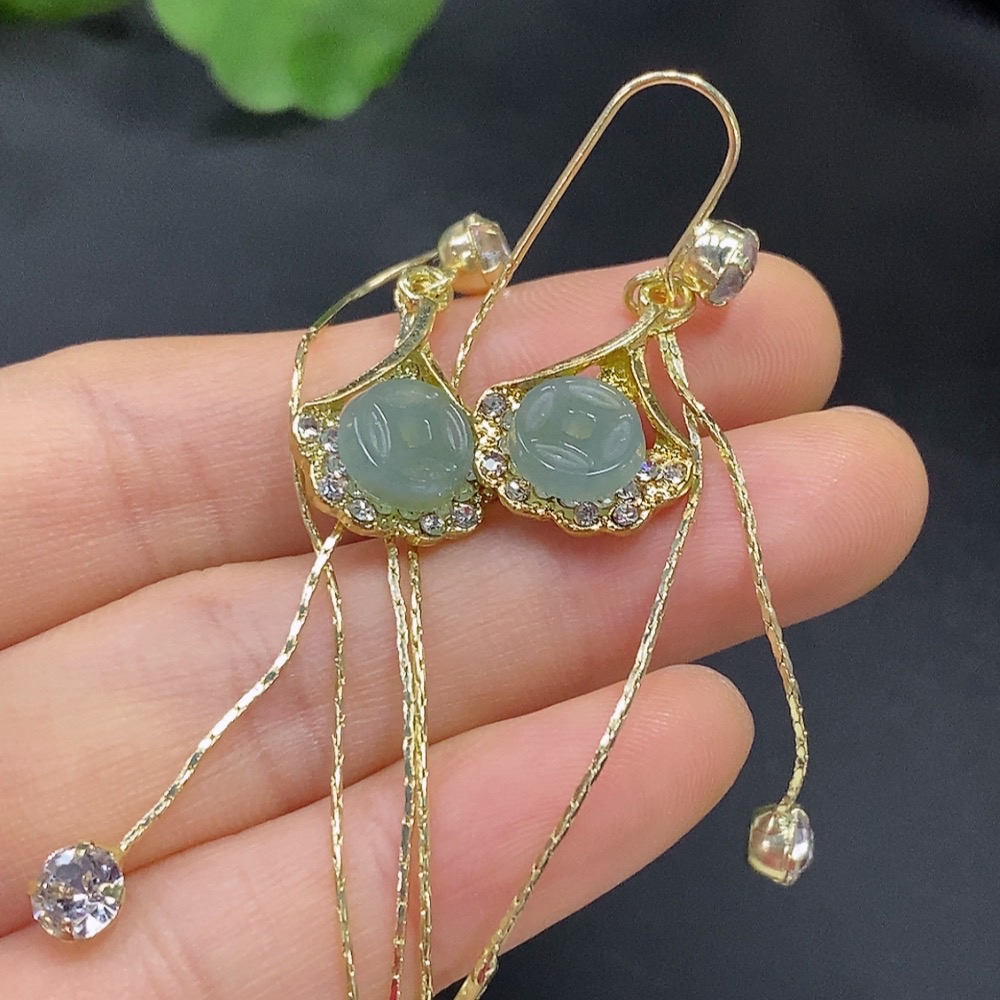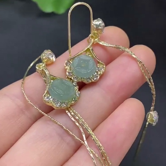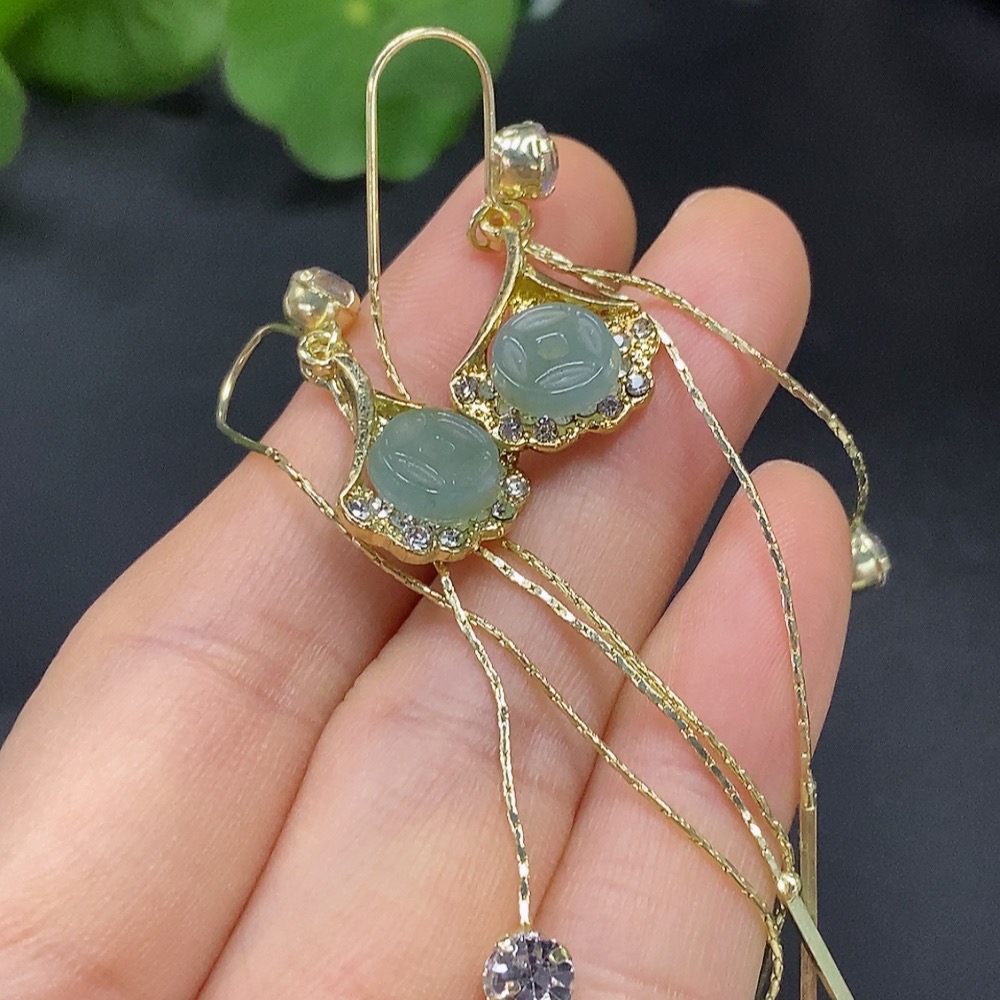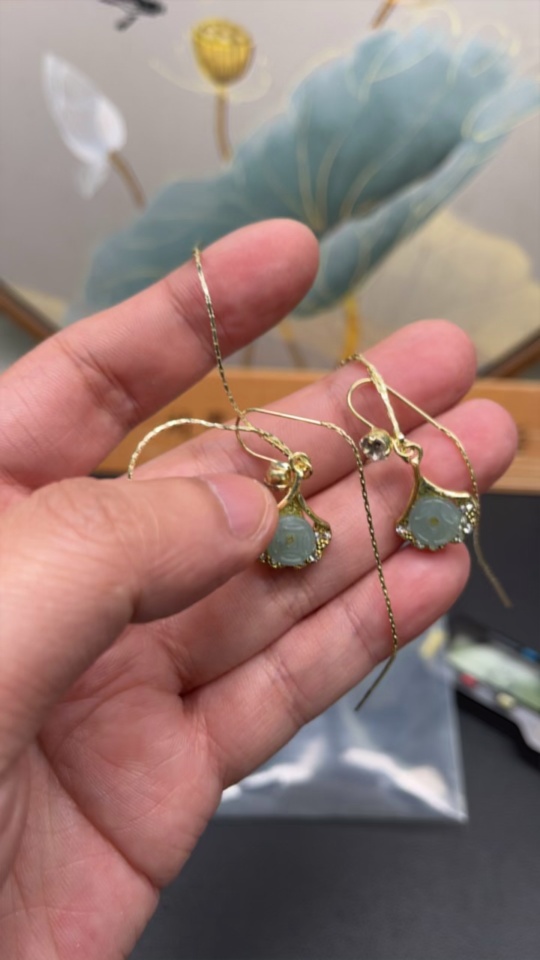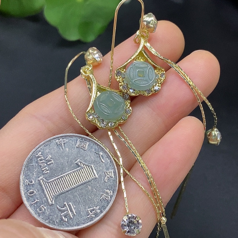 Jadeite Earrings Non-Gold Inlaid Total Weight Approx. 5.23g