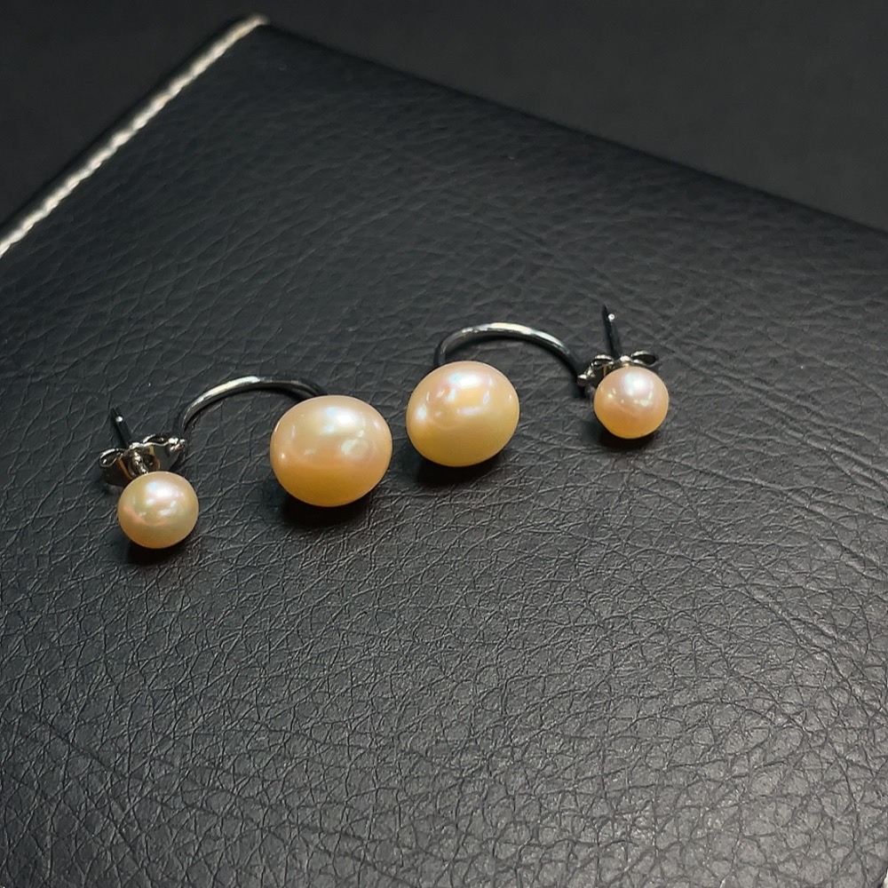 Pearl Inlaid Earrings Non-Gold Setting Total Weight Approx. 3.32g