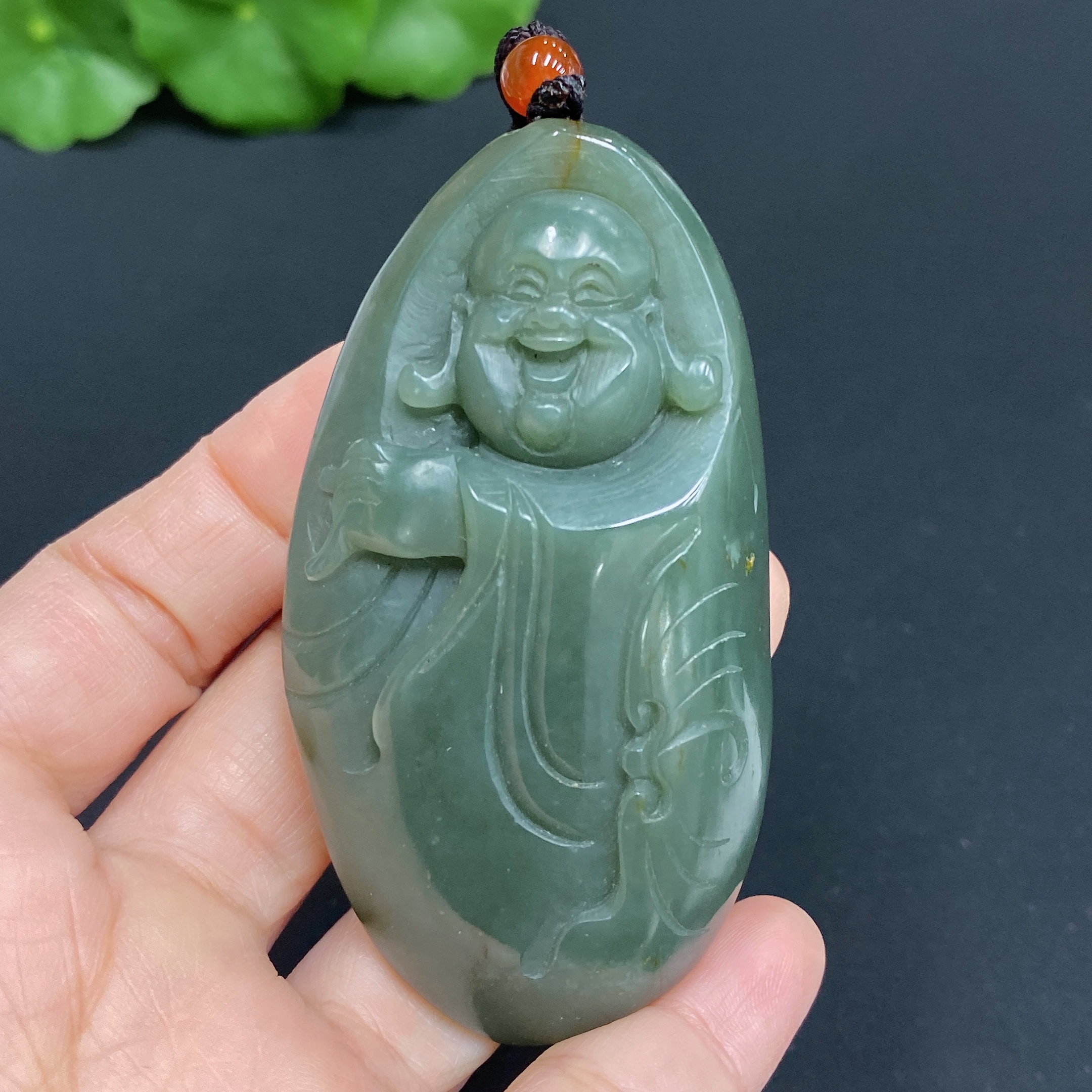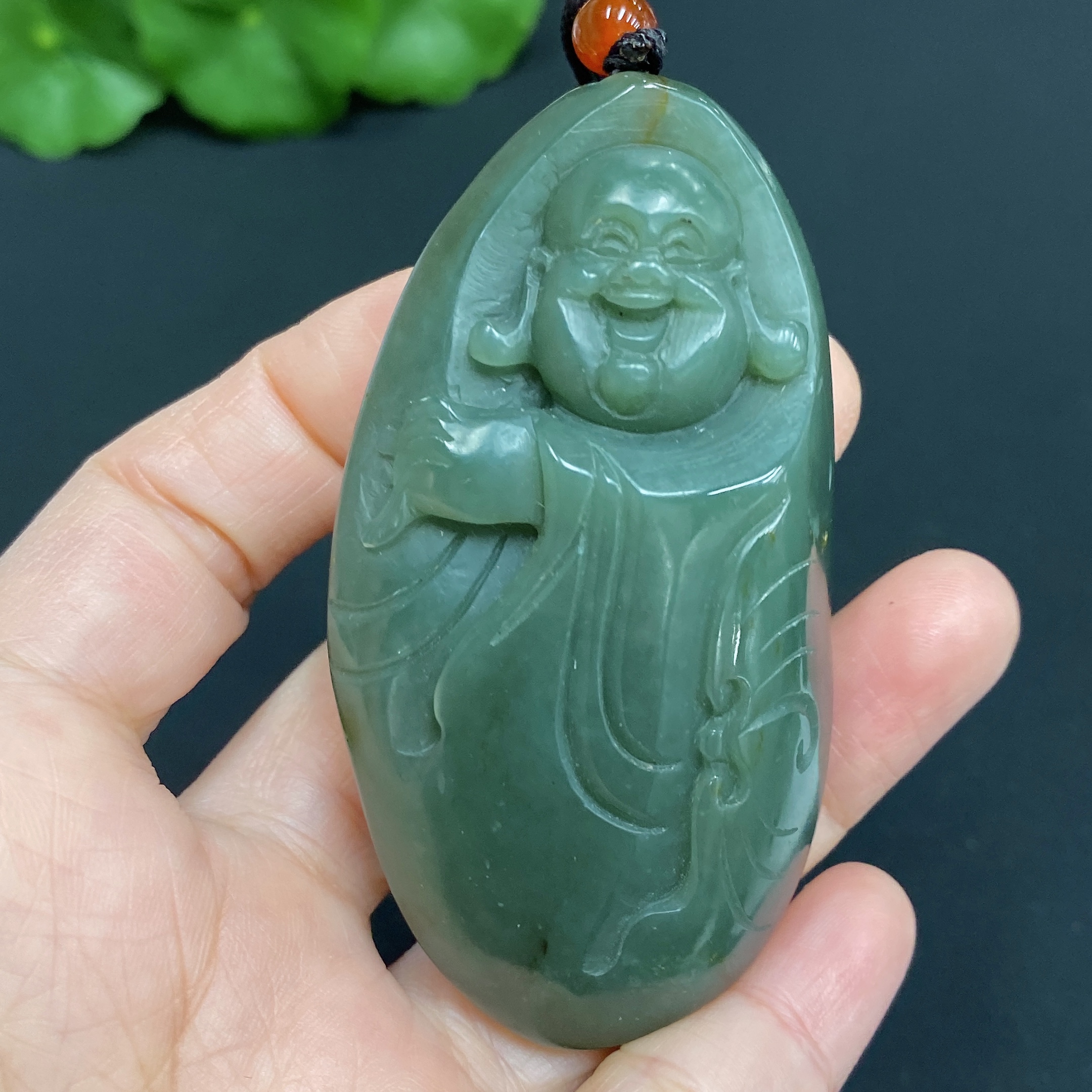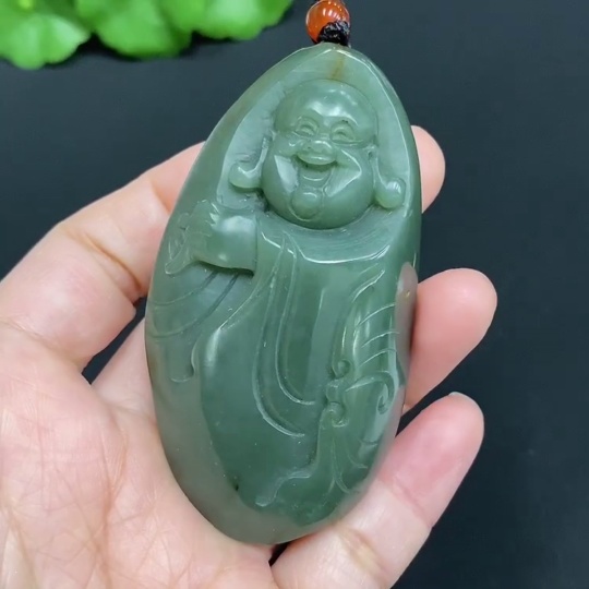 Hetian Jade Pendant, Buddha, Total Weight (including rope): 70.8g
